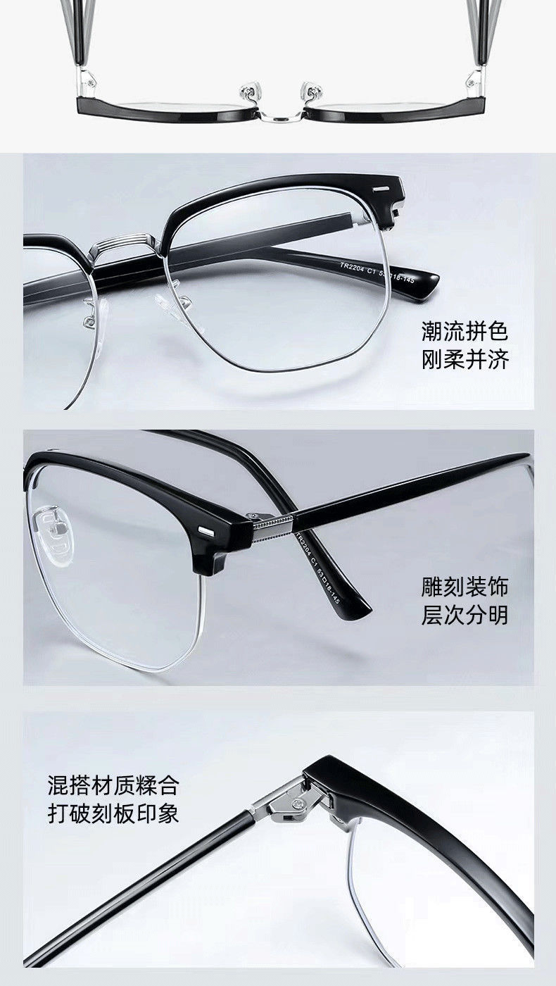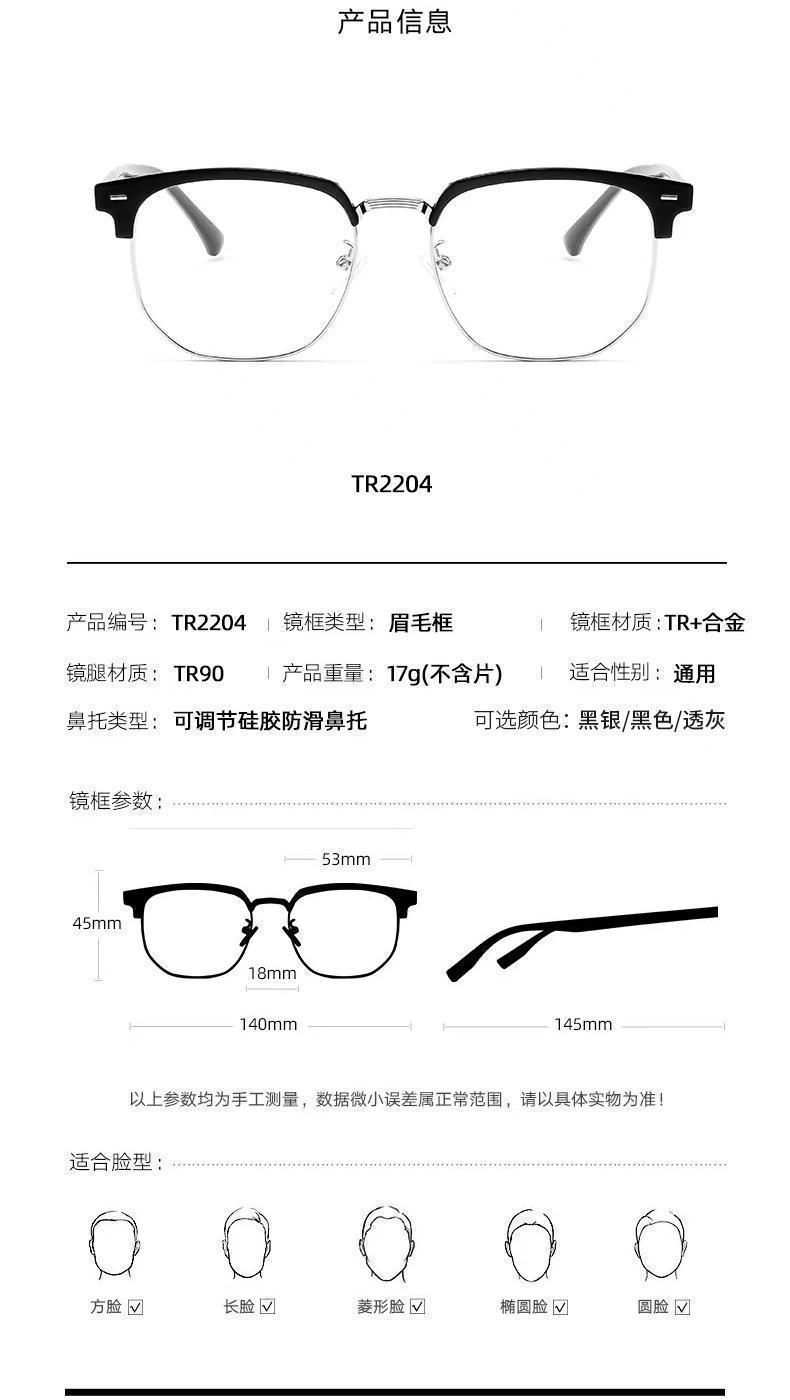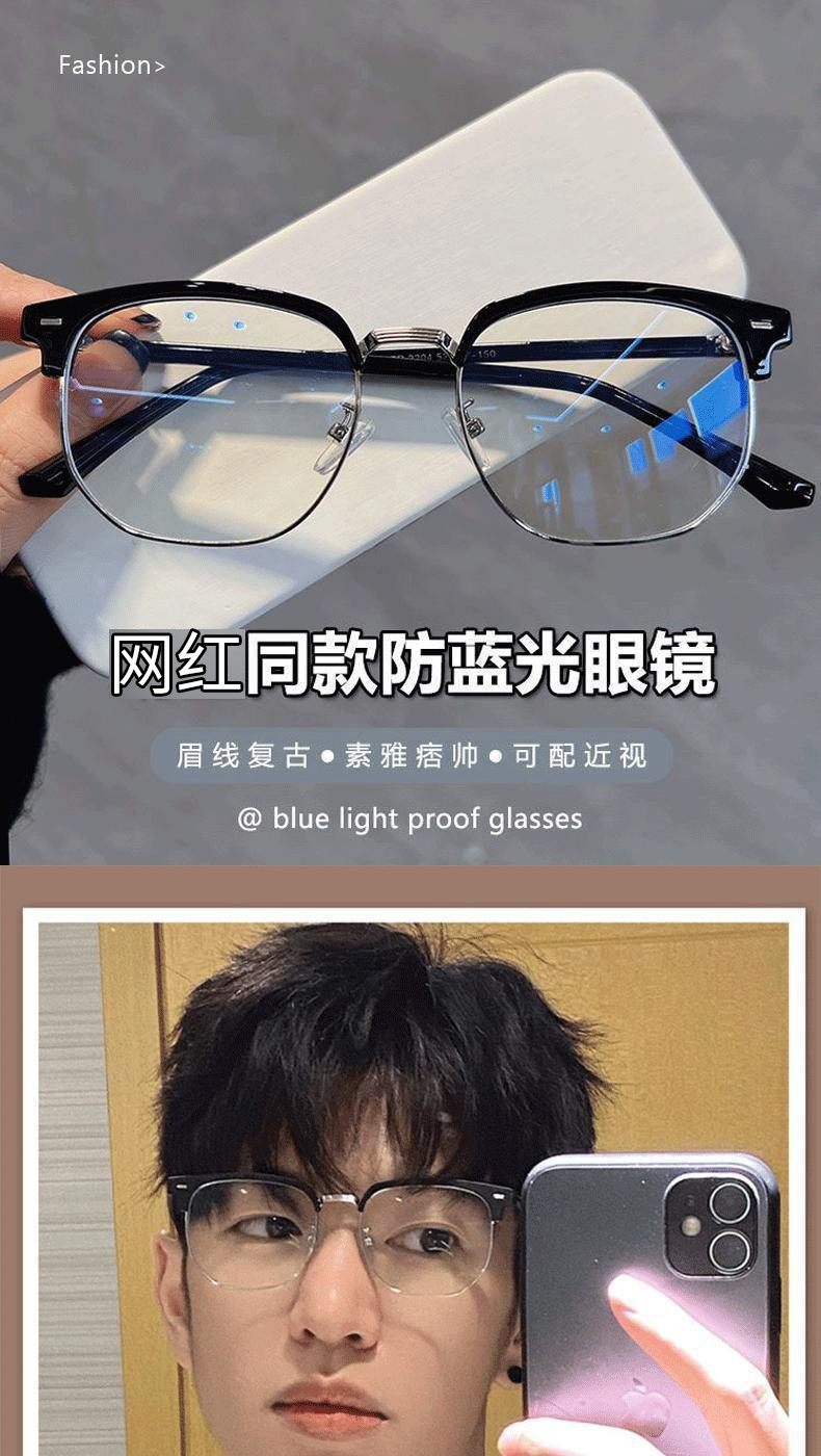2024 новые черные очки близорукости мужской повседневный бизнес полурамный анти-Blu-ray очки HD рамка женская модель