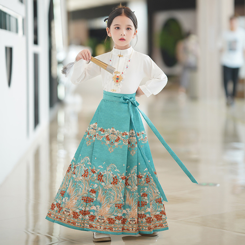 2024 Новый стиль жилет юбка для девочек весенне-осенний древний костюм в китайском стиле Улучшенный костюм Тан детский Весенний костюм для девочек ханьфу