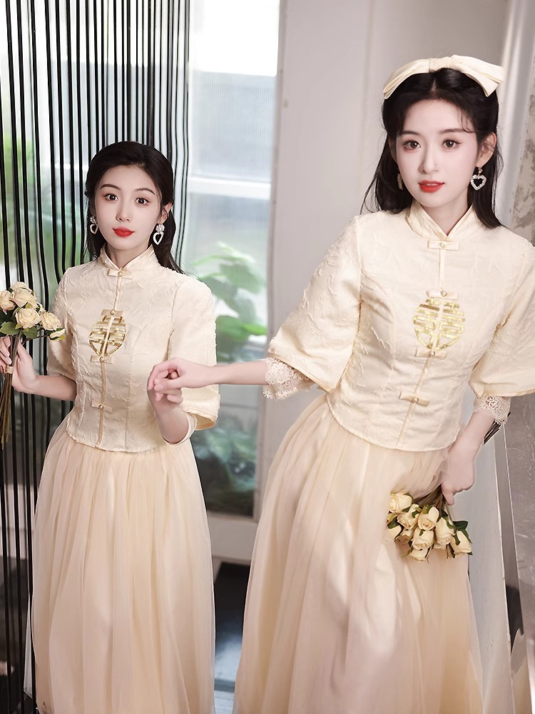 Новый китайский невесты платье Весна ежедневно носимых 2024 Новый китайский стиль группы сестры ниша платье ретро
