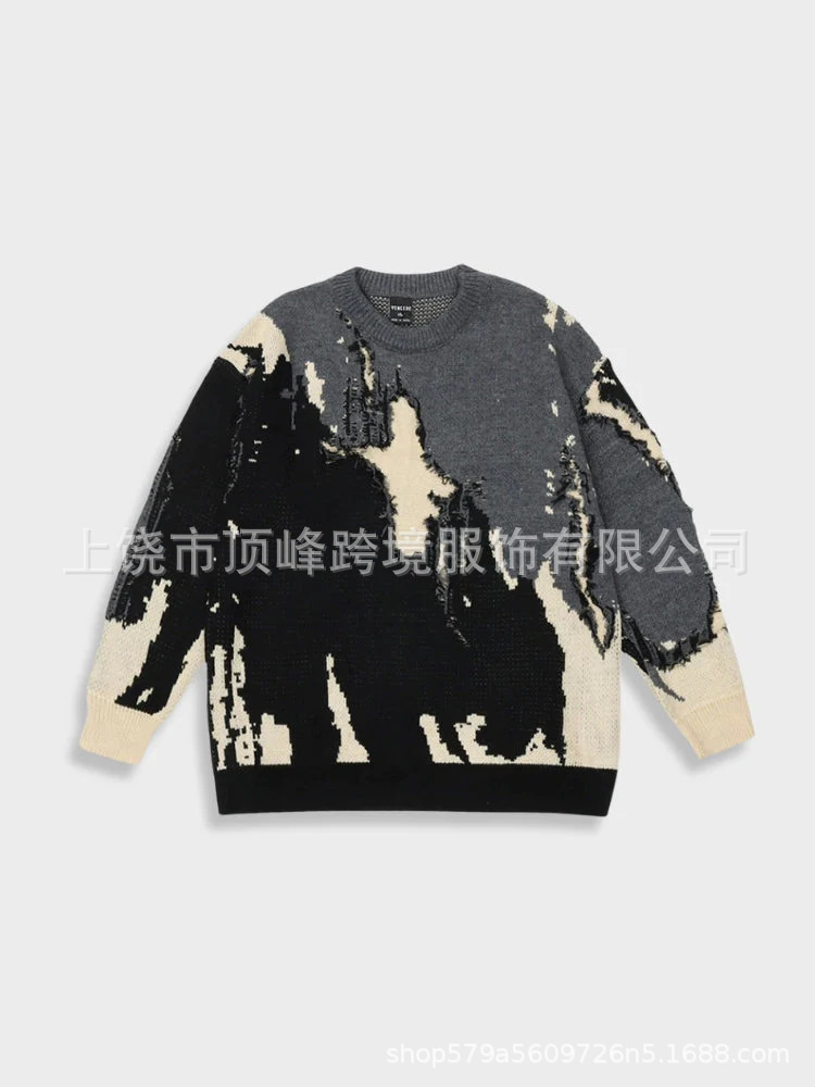 Европейская и американская внешняя торговля трансграничная 2023 осень и зима Новый европейский и американский трансграничный пейзаж с животными с принтом реглан с длинным рукавом