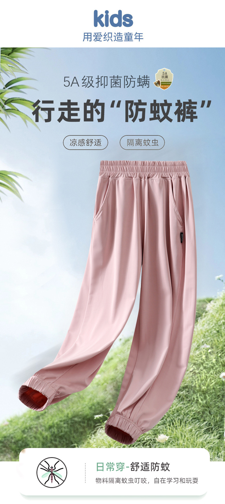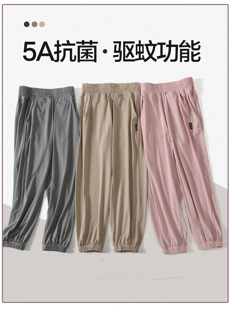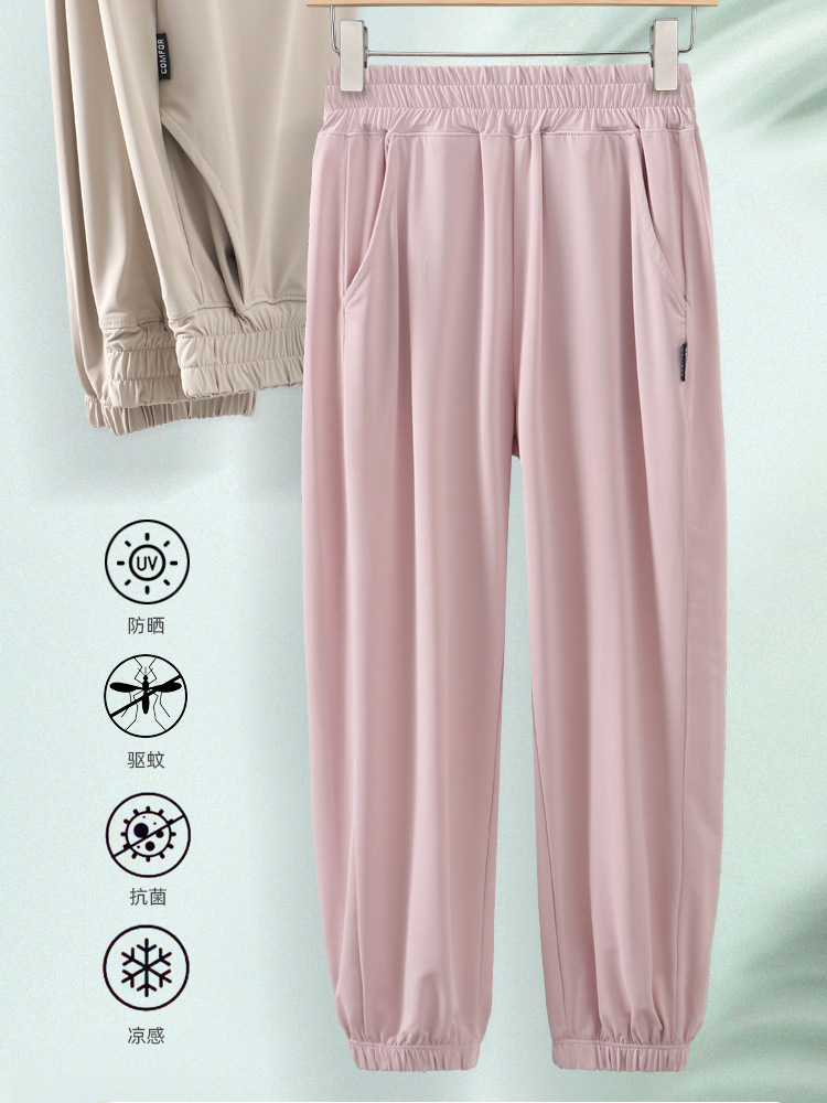 Детские штаны от комаров Летние тонкие дышащие ледяные штаны фонарь для мальчиков и девочек