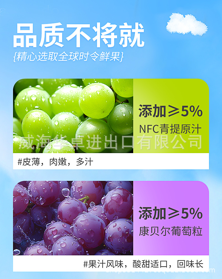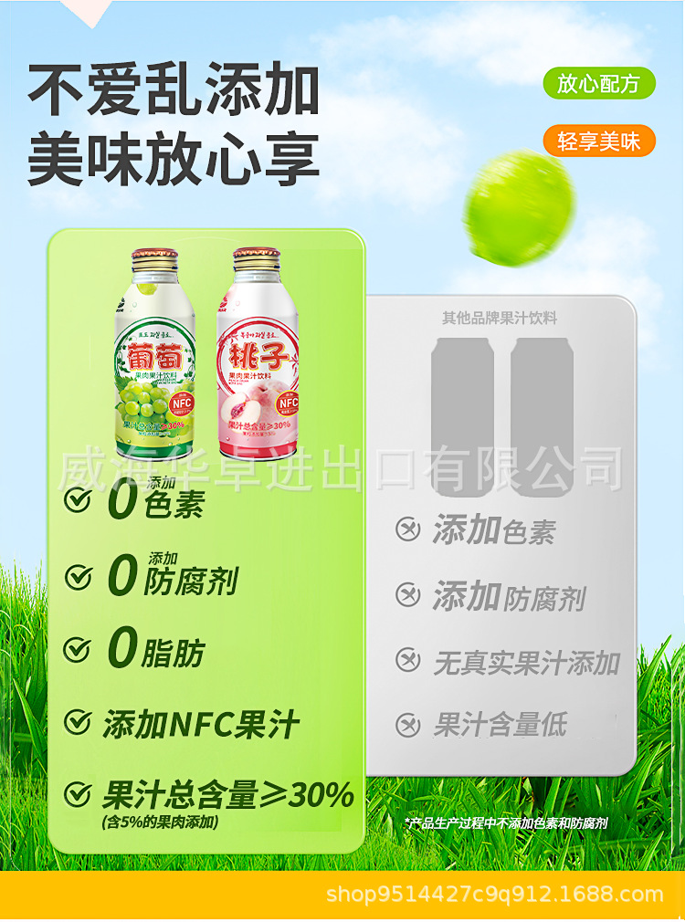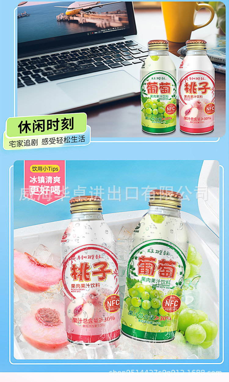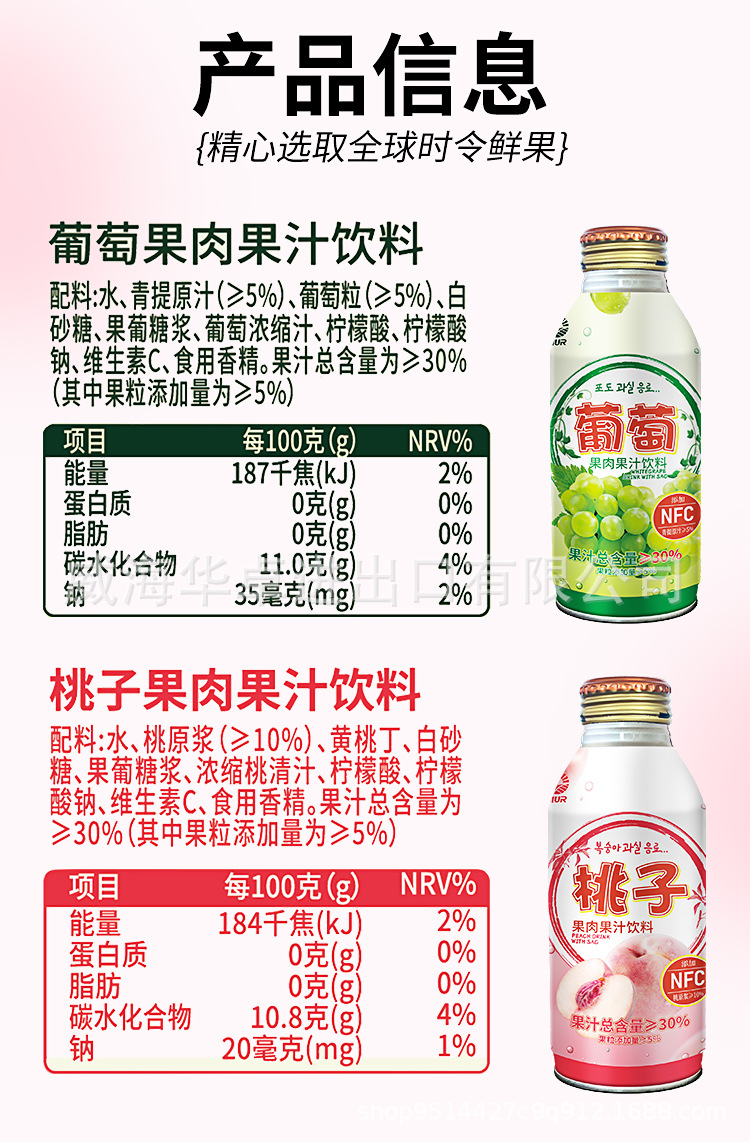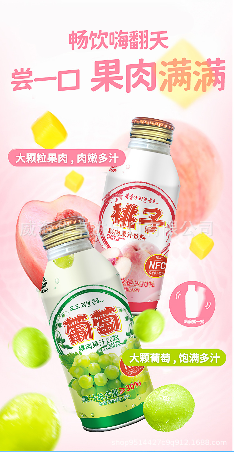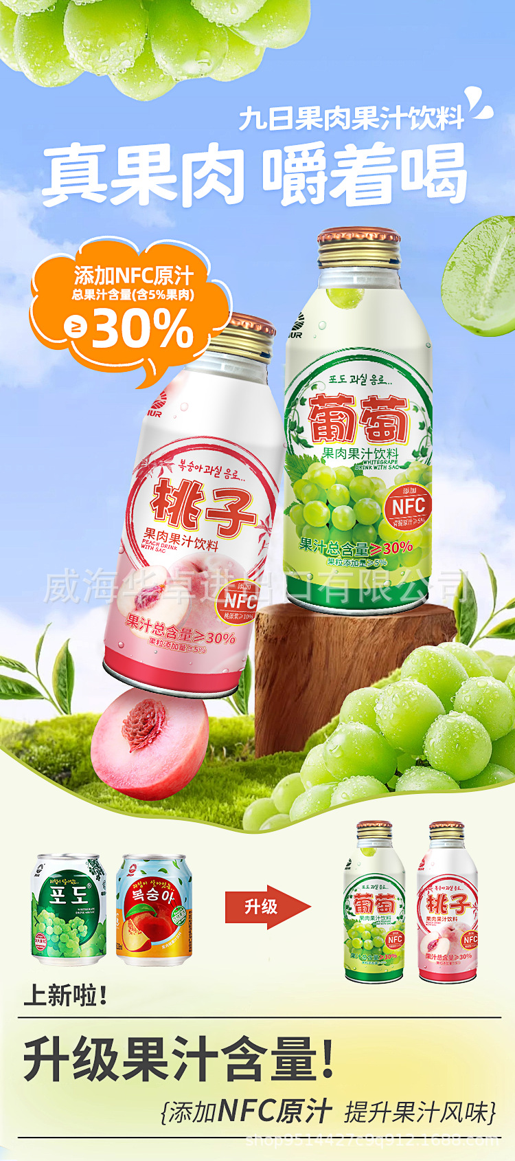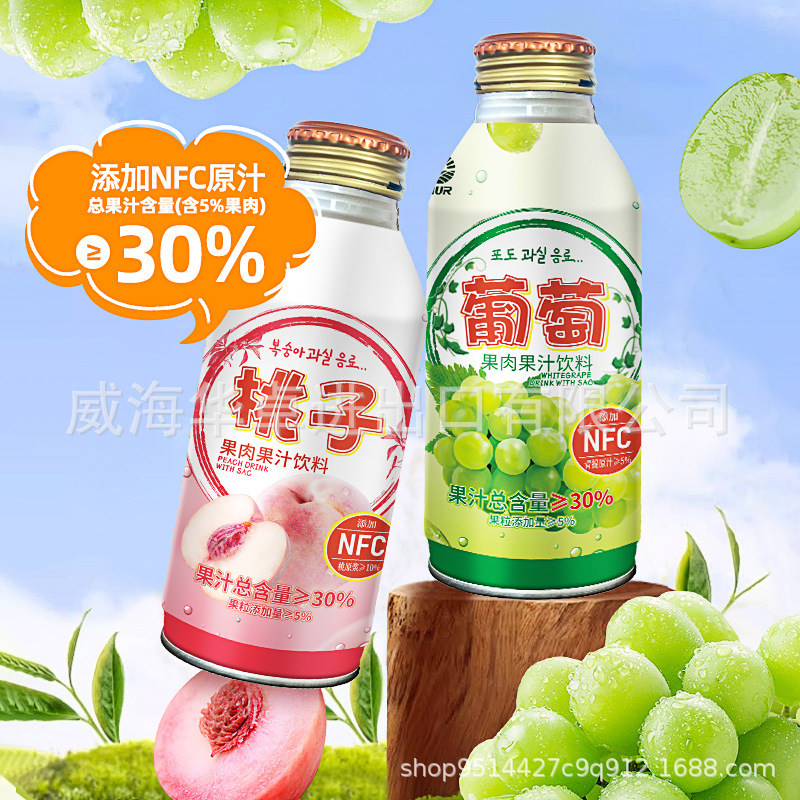 Напиток из фруктовых соков Nine Days, 375 г/бутылка, со вкусом винограда и персика, в бутылках, с насыщенным фруктовым вкусом и экстрактом свежих фруктов