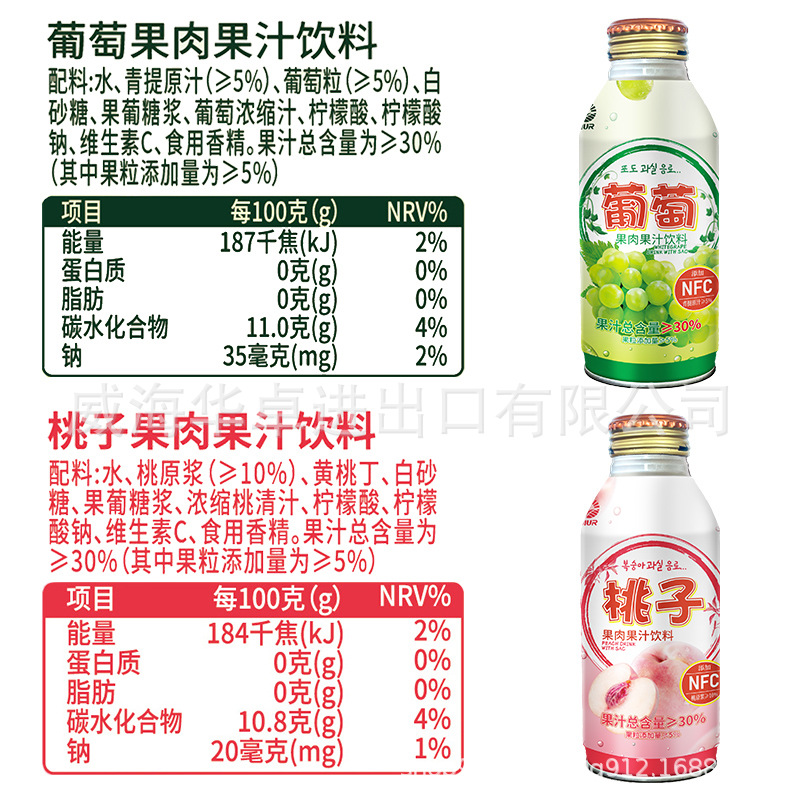 Виноградный вкус 375 г/бутылка; Вкус персика 375 г/бутылка