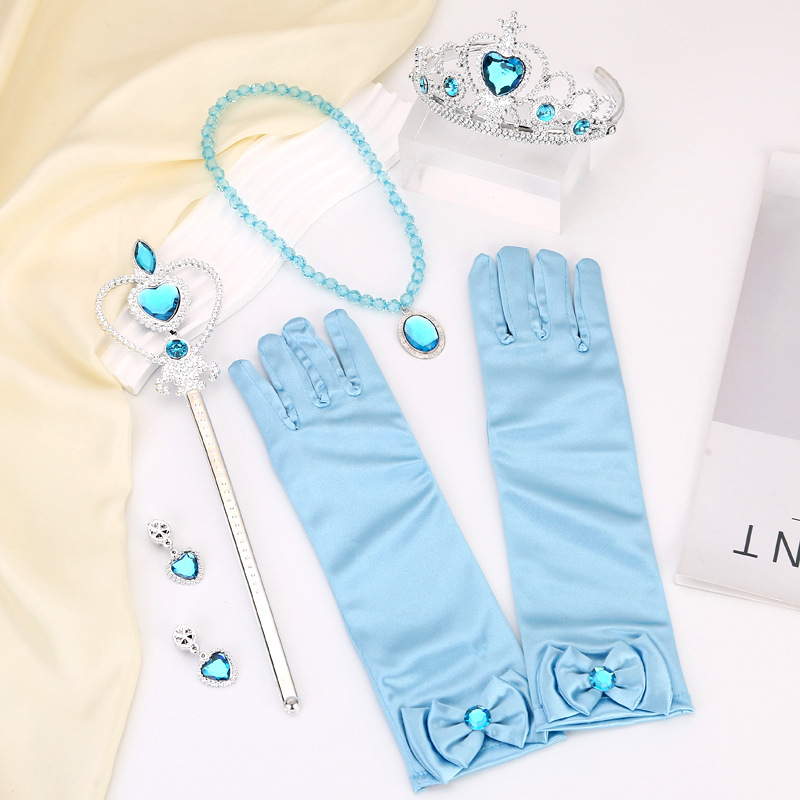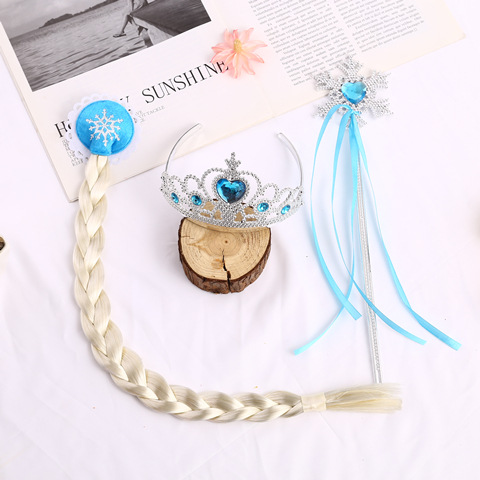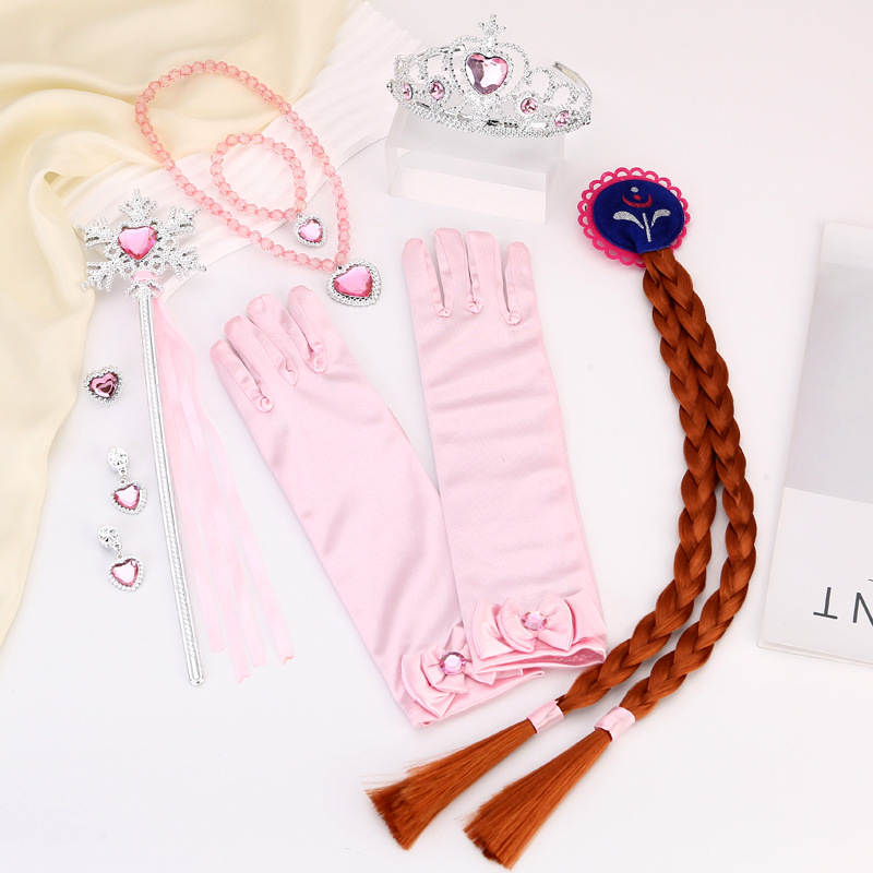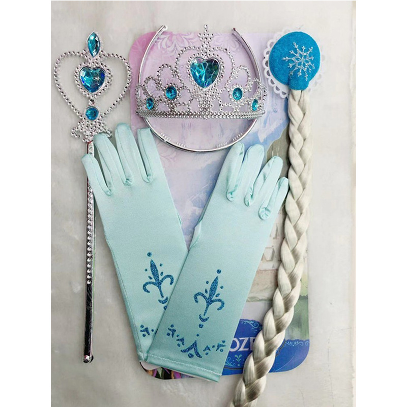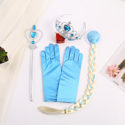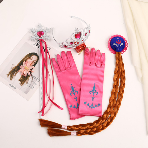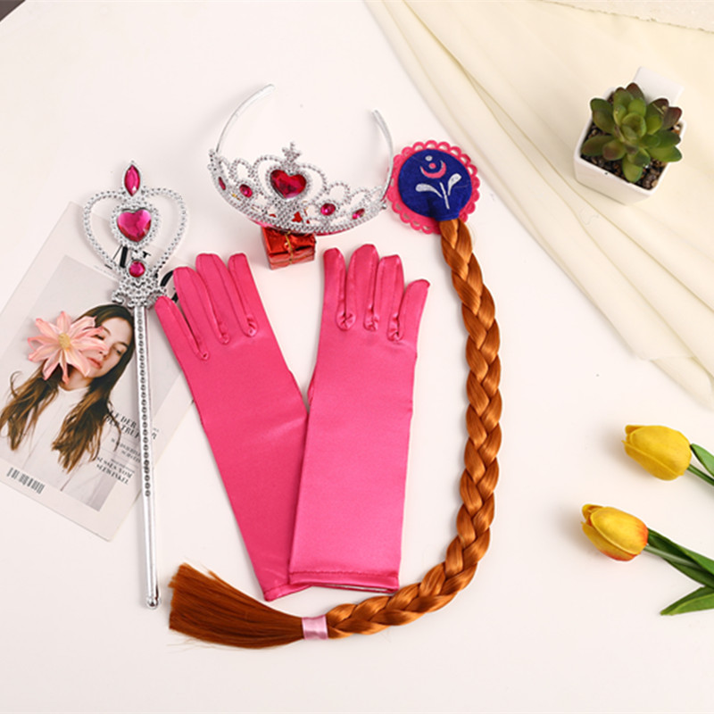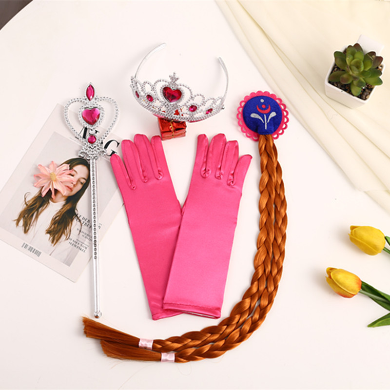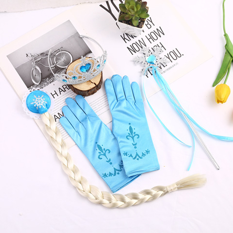 Трансграничный в наличии Детский головной убор-тройка парик принцессы Перчатки с принтом Аиша Корона костюм с плетеной волшебной палочкой