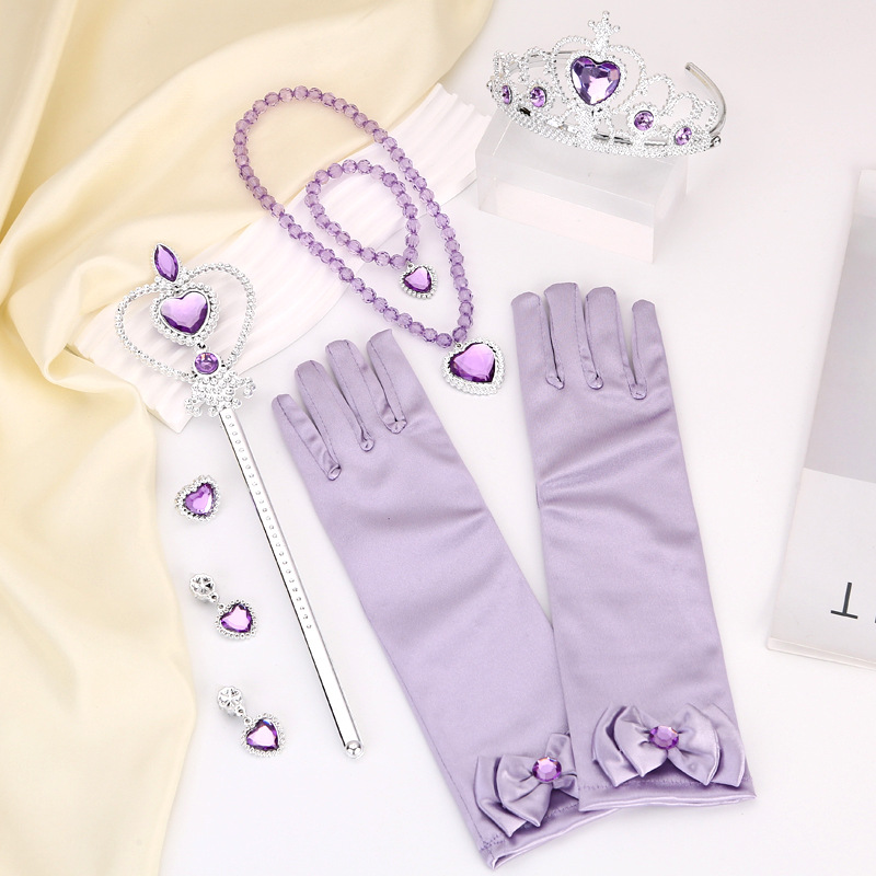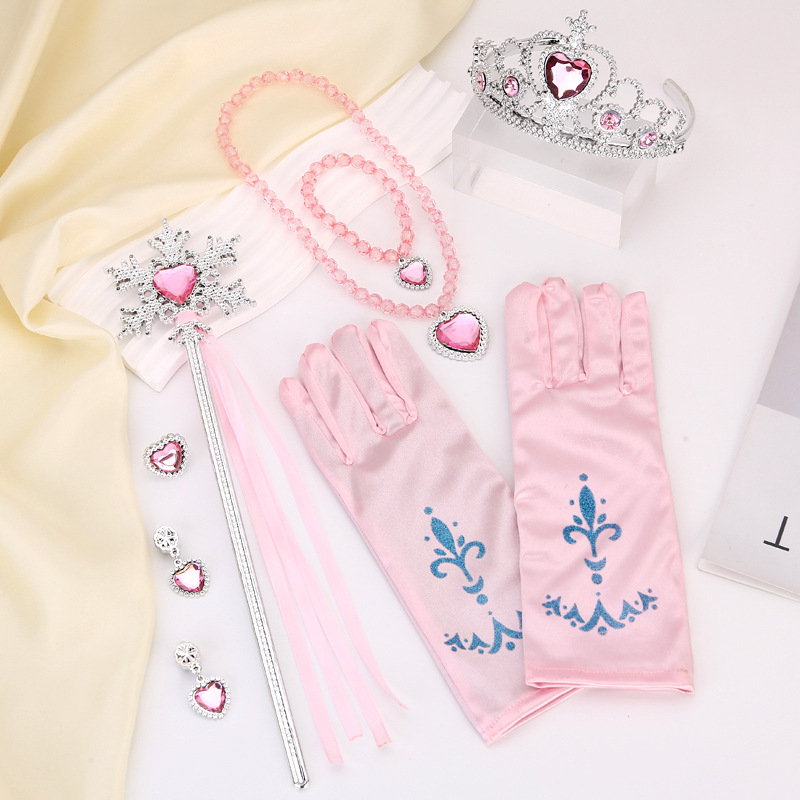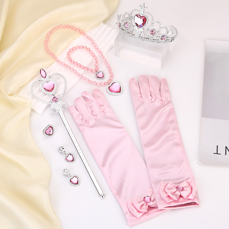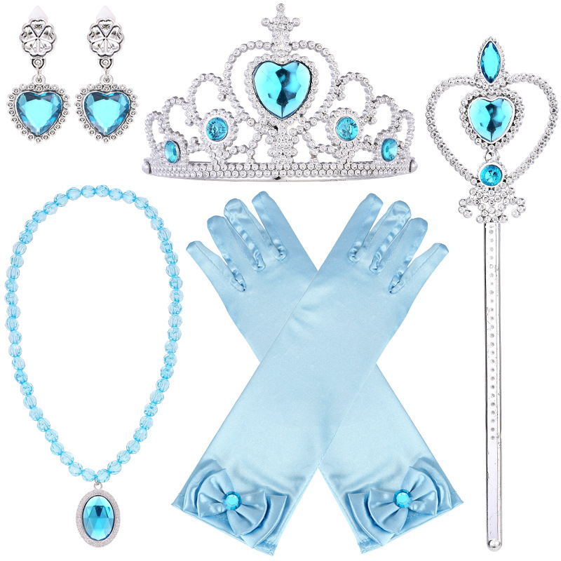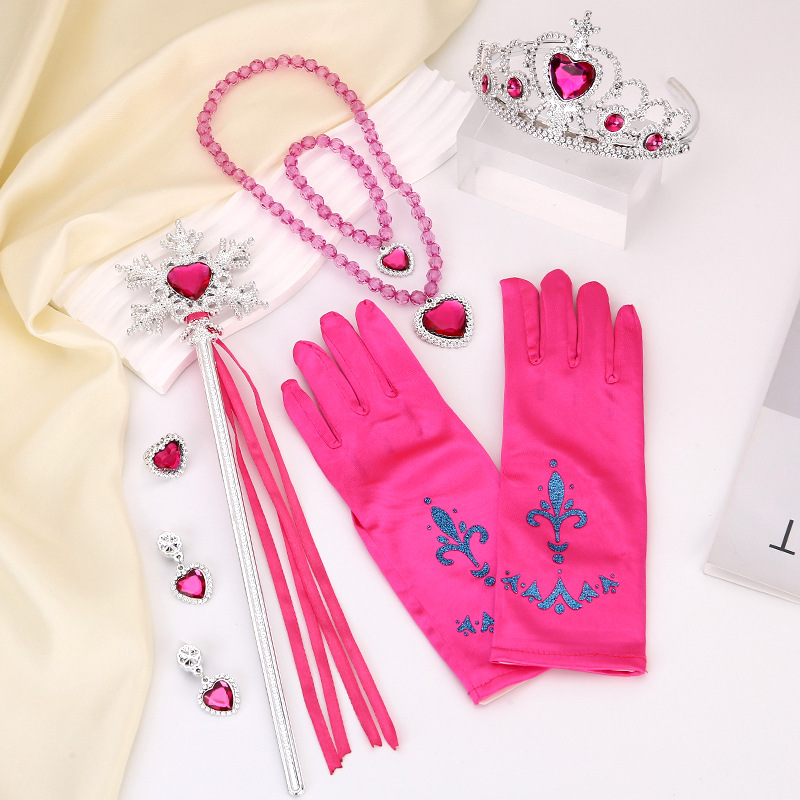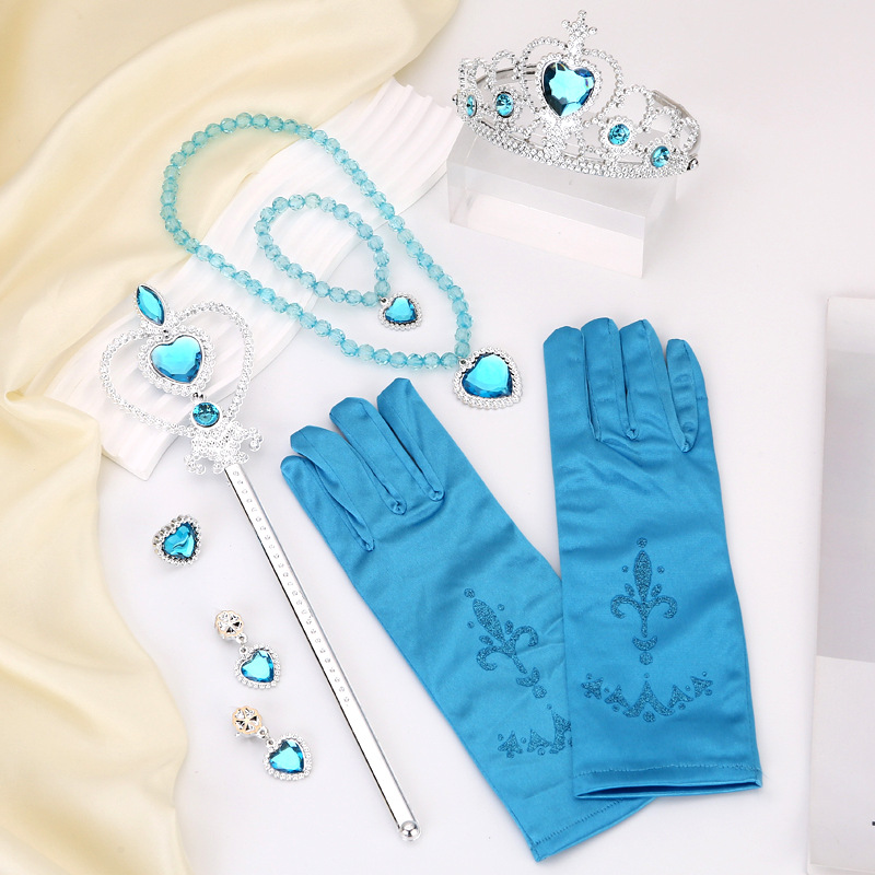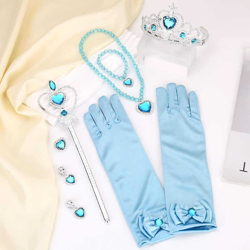 Трансграничный в наличии Детский головной убор-тройка парик принцессы Перчатки с принтом Аиша Корона костюм с плетеной волшебной палочкой