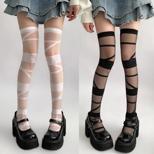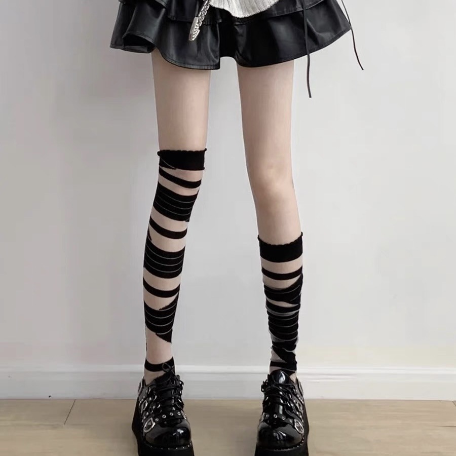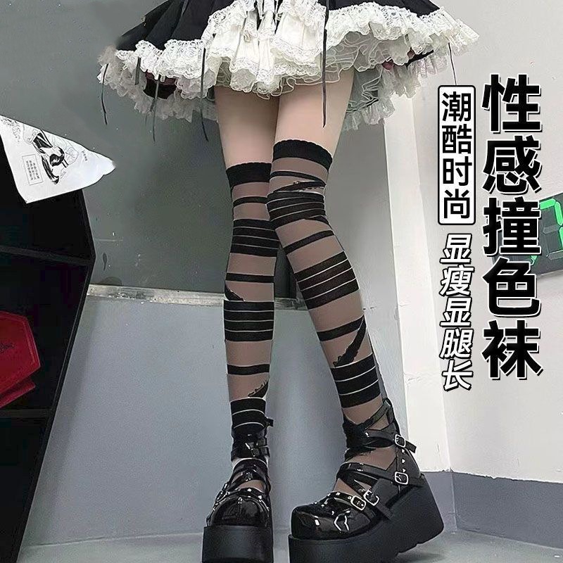 Y2g Полосатые чулки выше колена на шнуровке Азиатская культура горячая девушка черно-белая повязка длинные чулки JK носки Лолита лето