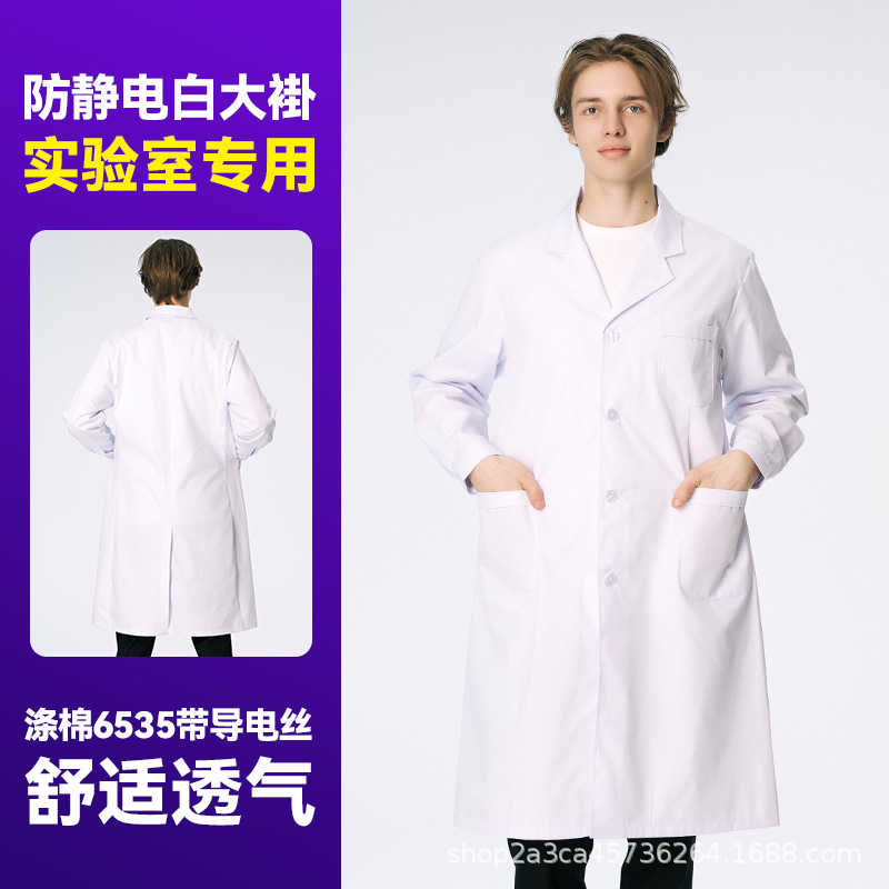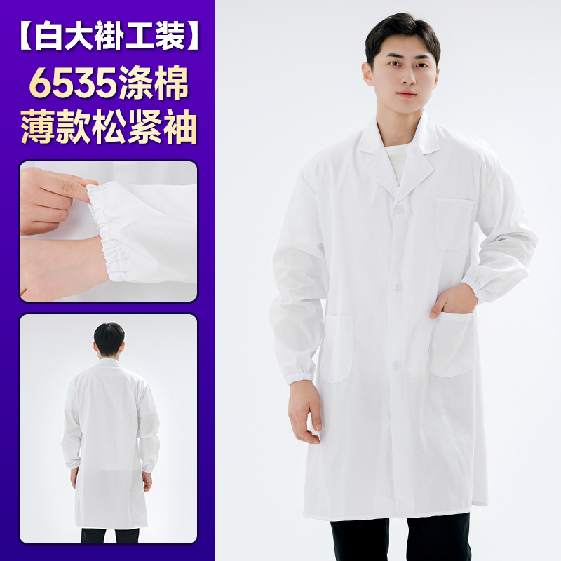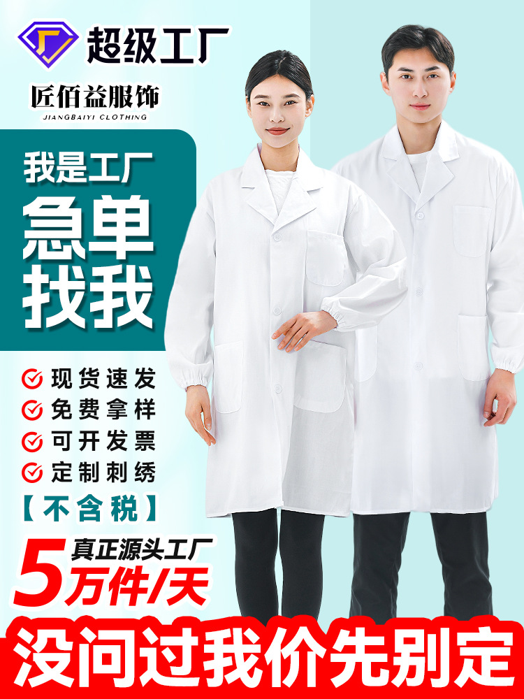 Белое пальто с длинными рукавами Студенческая лабораторная рабочая одежда аптека пищевая фабрика