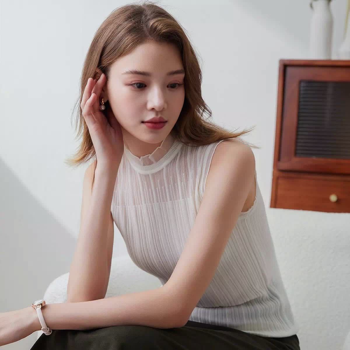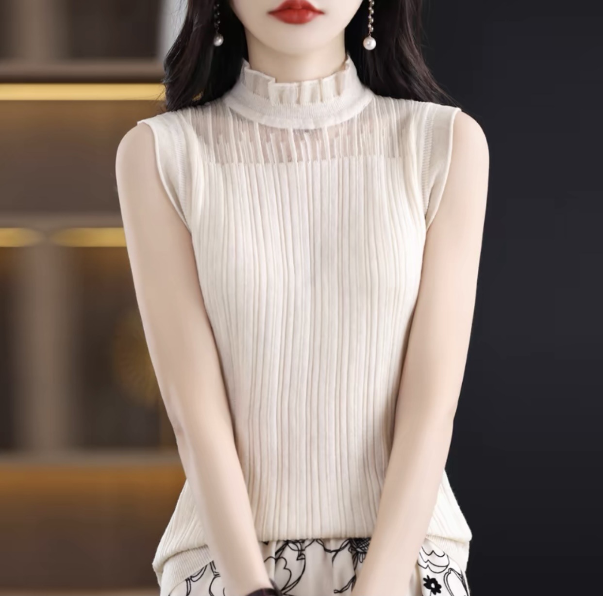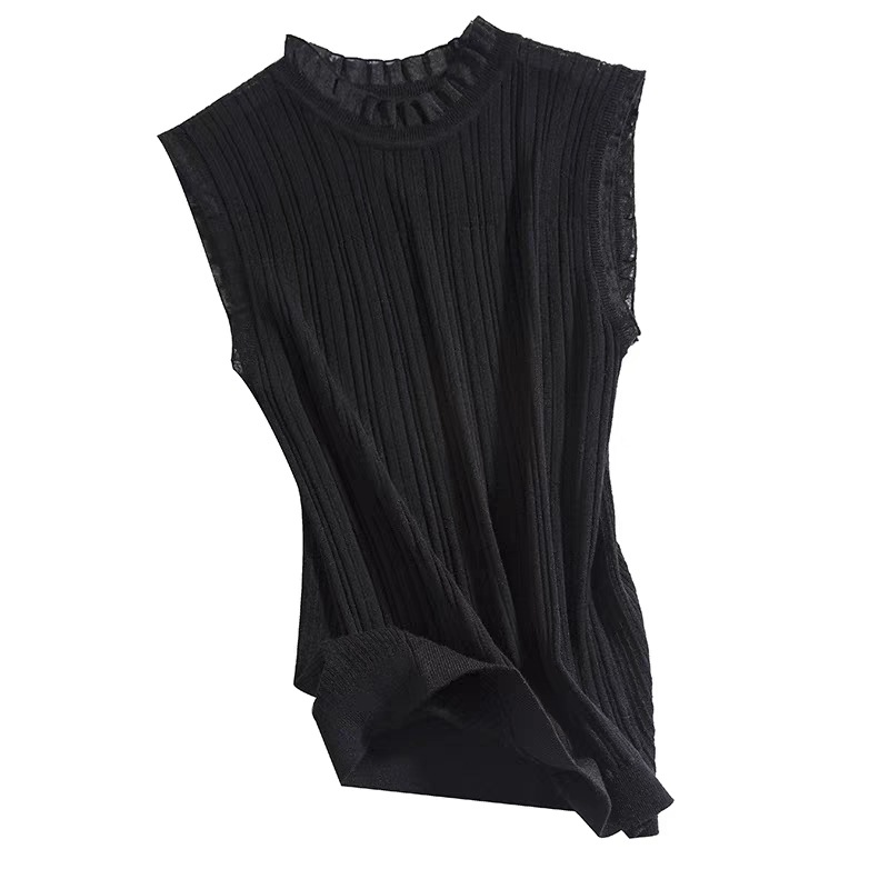 Универсальный вязаный жилет, деревянный кружевной женский жилет с воротником-ушами, нижняя водолазка без рукавов, нижняя рубашка в западном стиле, высокого класса