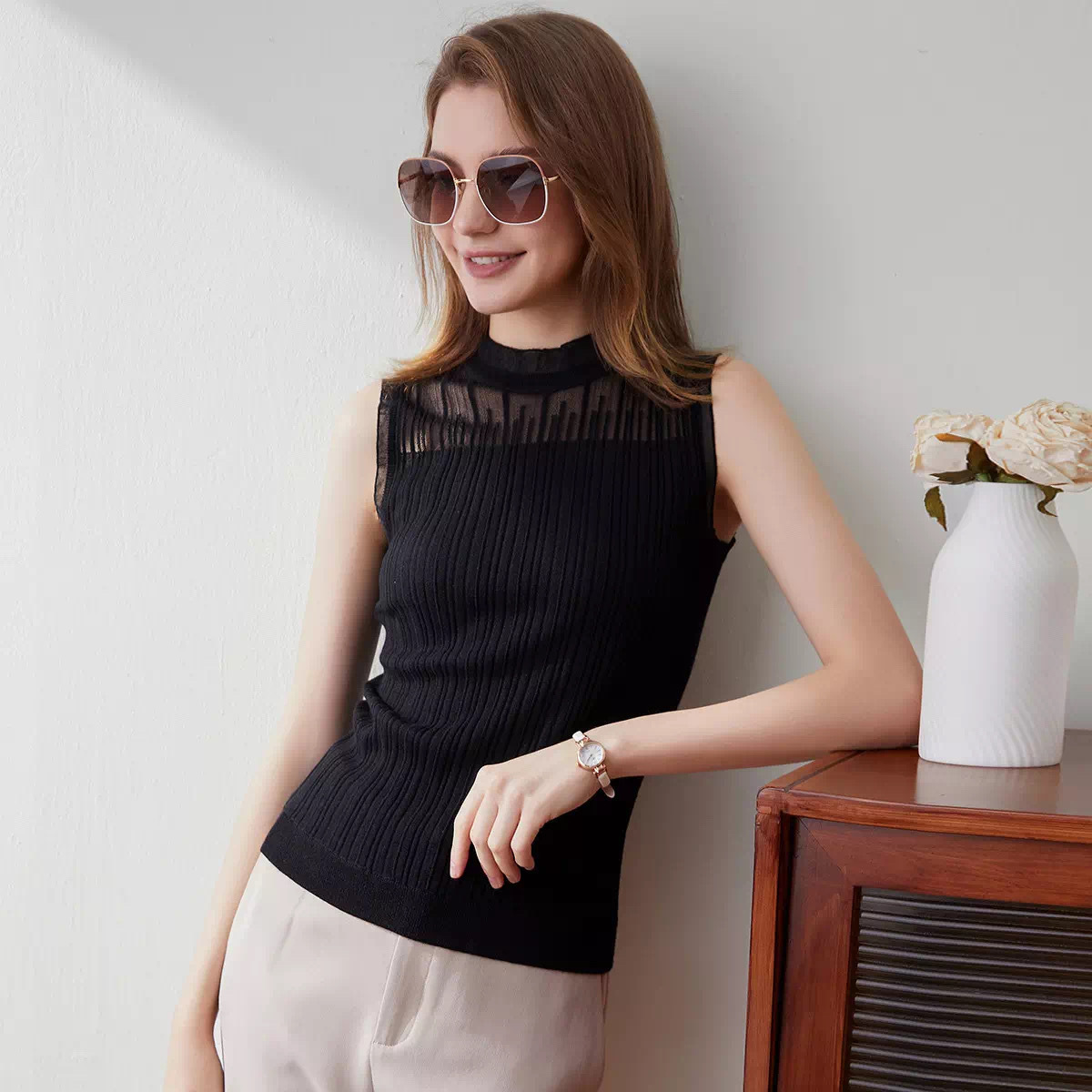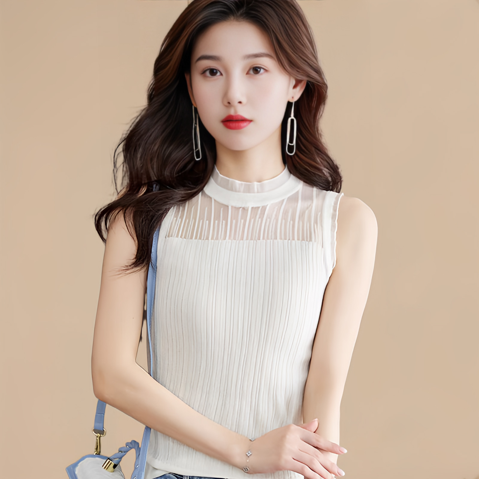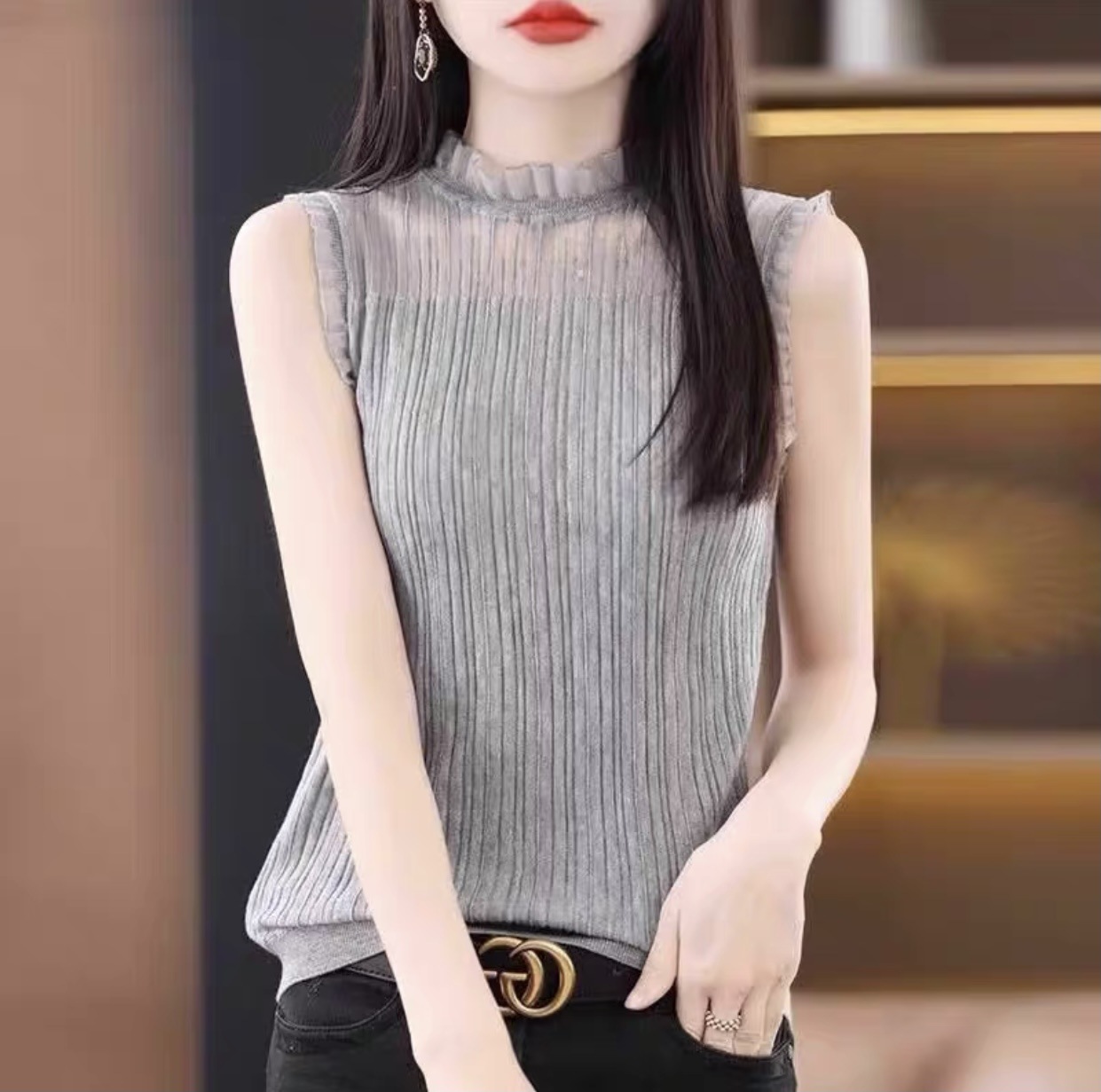 Универсальный вязаный жилет, деревянный кружевной женский жилет с воротником-ушами, нижняя водолазка без рукавов, нижняя рубашка в западном стиле, высокого класса
