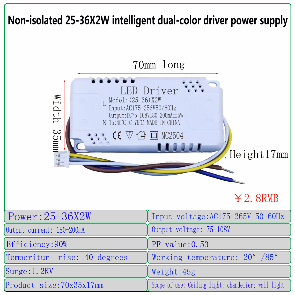 8-25*2 маленький корпус 50 Вт; 25-36*2 маленький корпус 72 Вт; 36-50*2 маленький корпус 100 Вт; 40-60*2 маленький корпус 120 Вт; 8-24*2, 48 Вт, большой корпус; 25-40*2, 80 Вт, большой корпус; 40-60*2, 120 Вт, большой корпус; 50-75*2, 150 Вт, большой корпус; 36-50*4 200W; 40-60*4 240W; Компенсируйте разницу 40-60*2 Вт