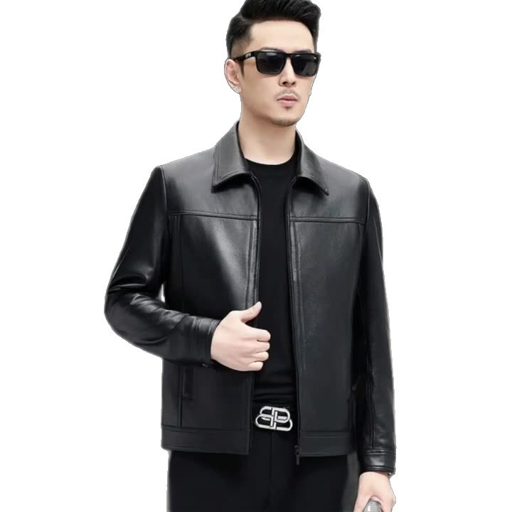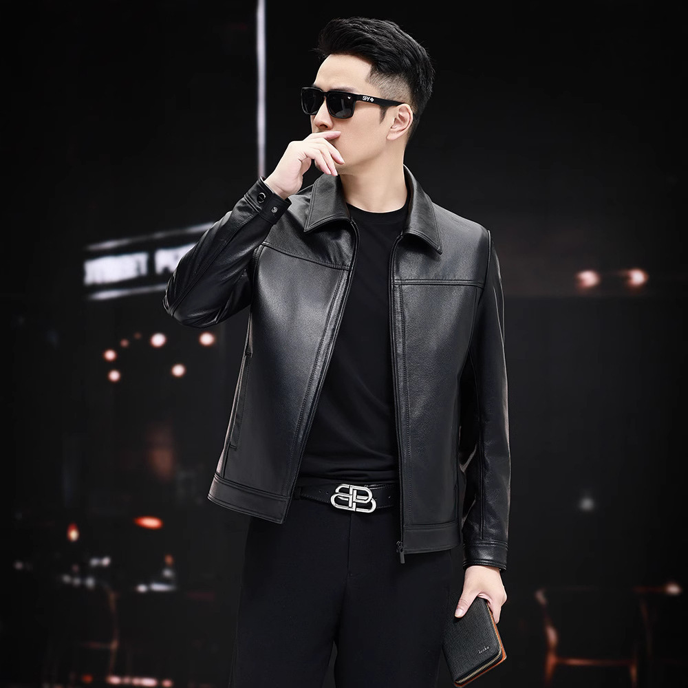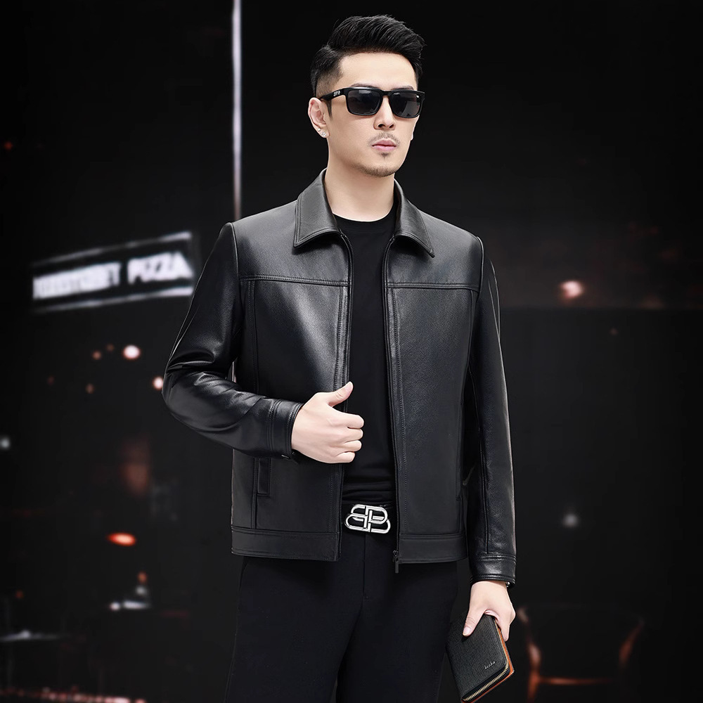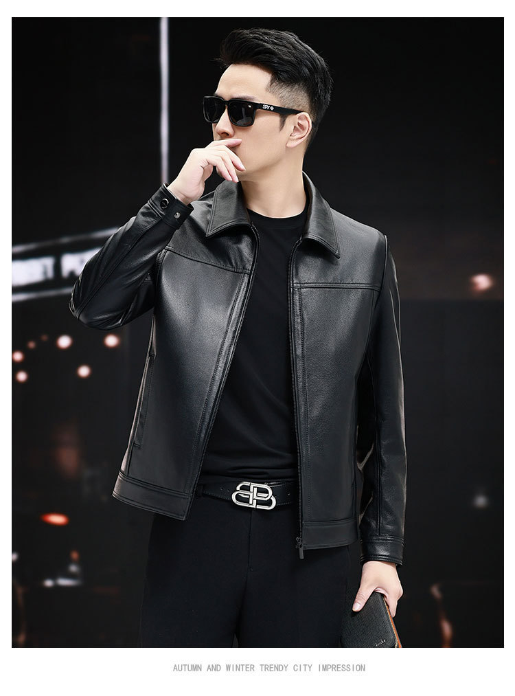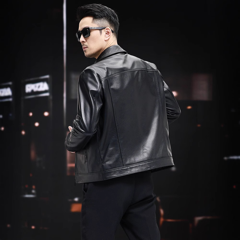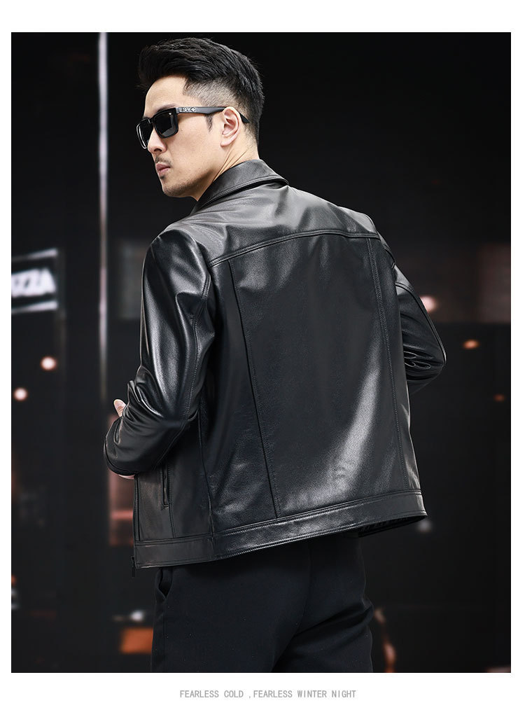 Новая мужская куртка из первосортной воловьей кожи, осенне-зимняя высококачественная короткая куртка из натуральной кожи с лацканами, кожаная куртка Haining.