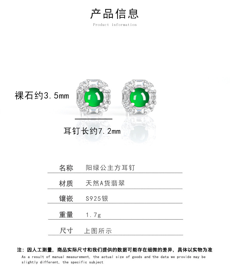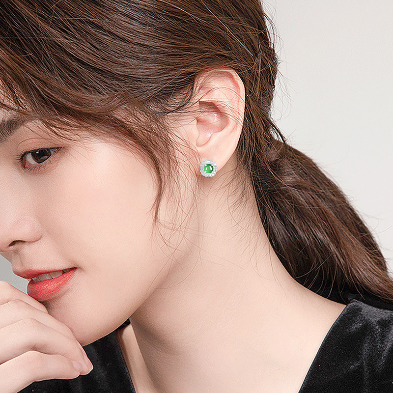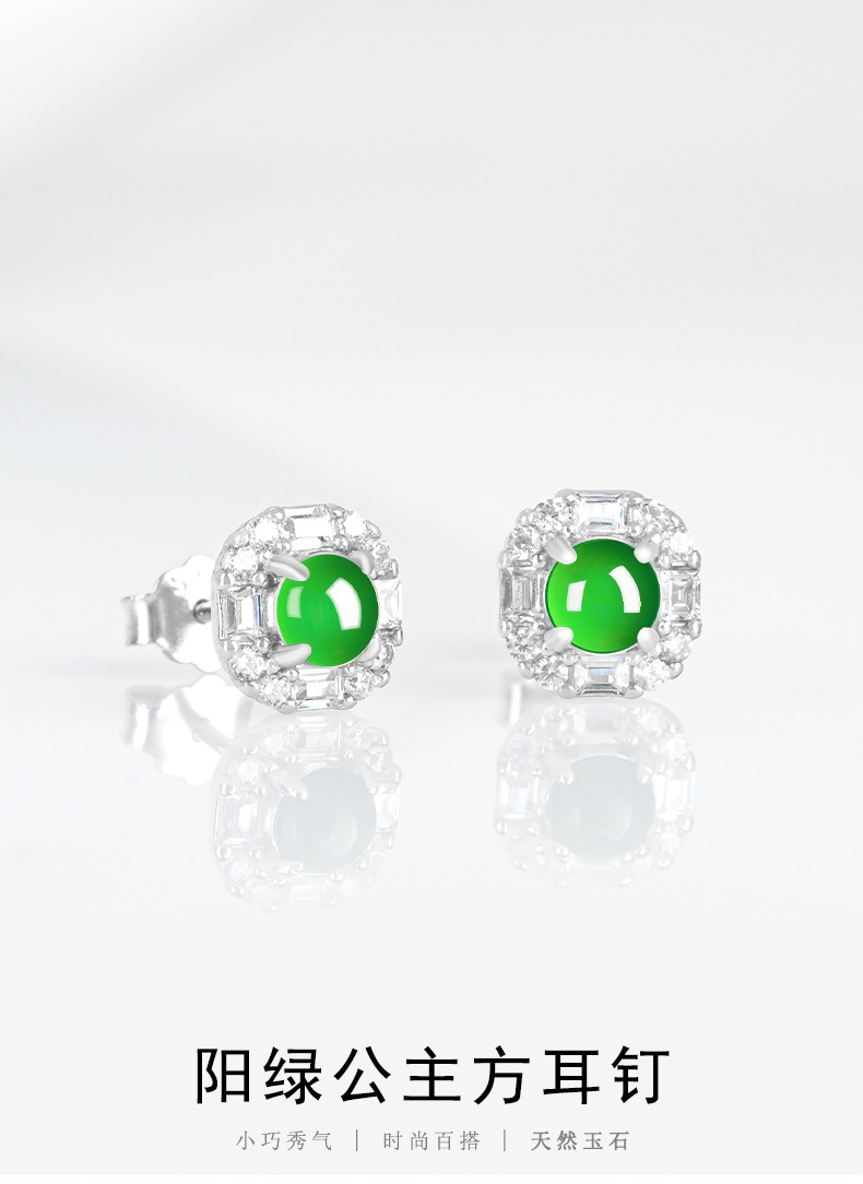 Квадратные серьги-гвоздики принцессы Yang Green D707