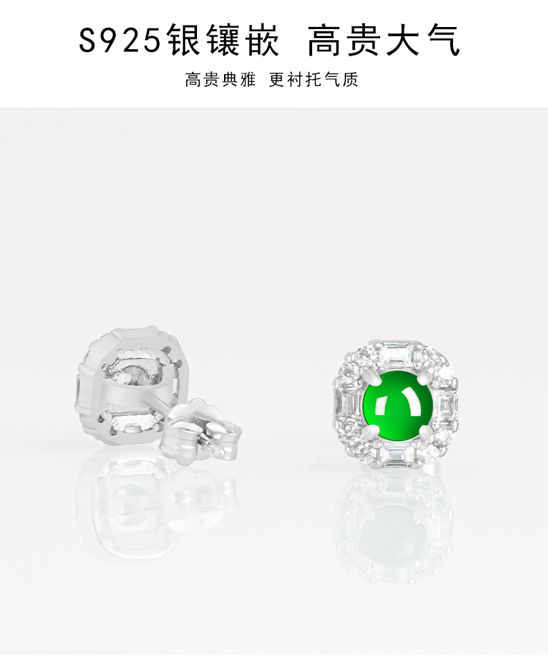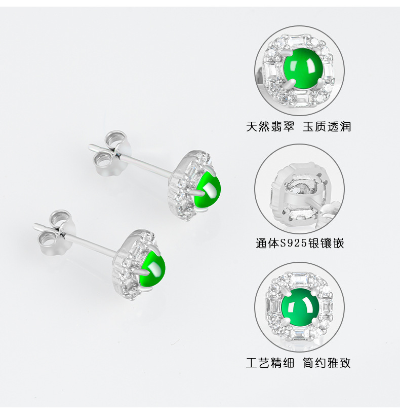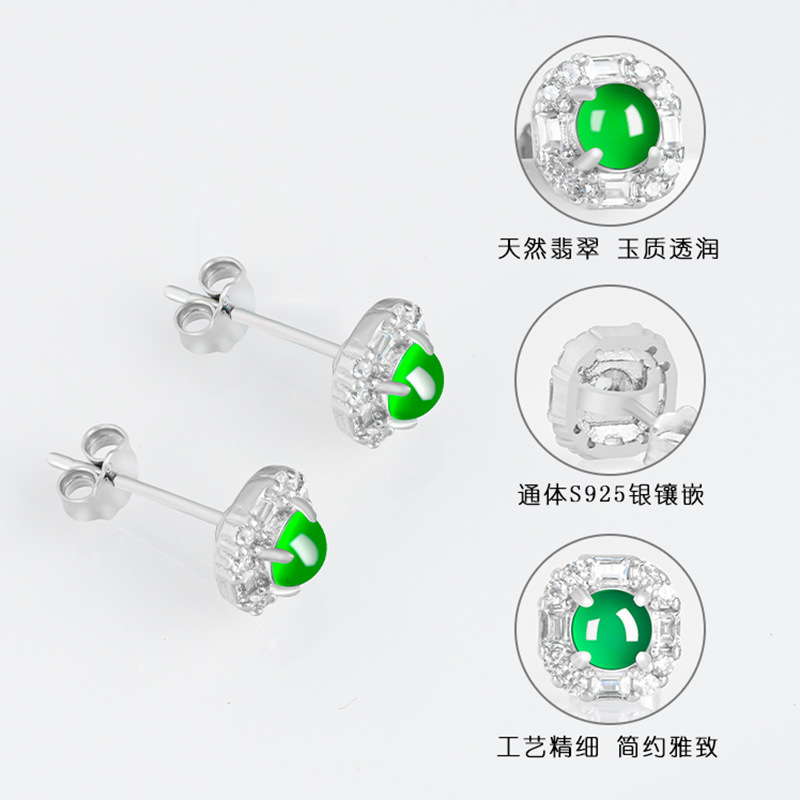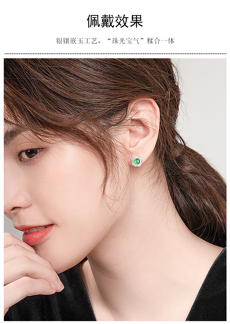 Высококачественные натуральные товары Изумрудный зеленый квадратный нефритовый серьги S925 Серебряные инкрустированные модные женские серьги оптом