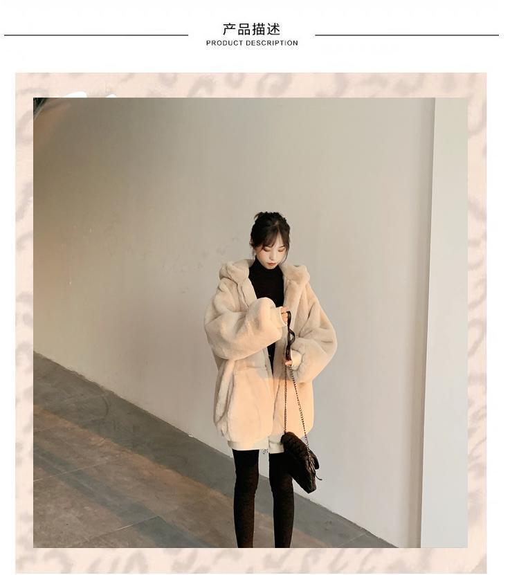 Корейское свободное плюшевое пальто для женщин, зимнее пальто средней длины из искусственного кроличьего меха, новинка 2025 года, утолщенное, с капюшоном