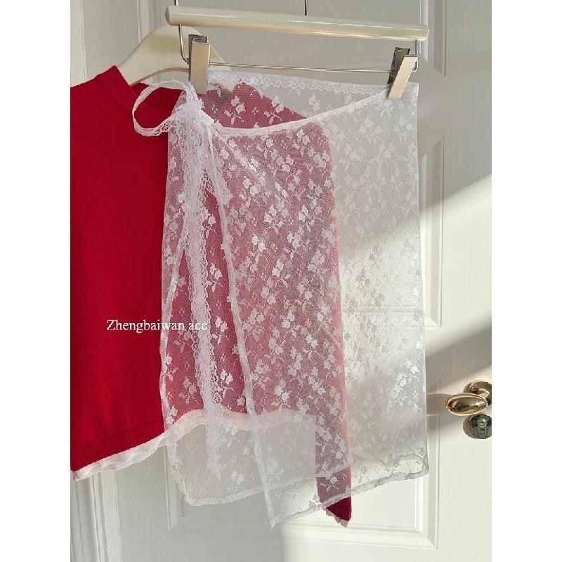 Нишевые дизайн корейский ретро кружевной фартук женский пол юбка с ремешком дикий квадратный шарф шелковый шарф пряная девушка