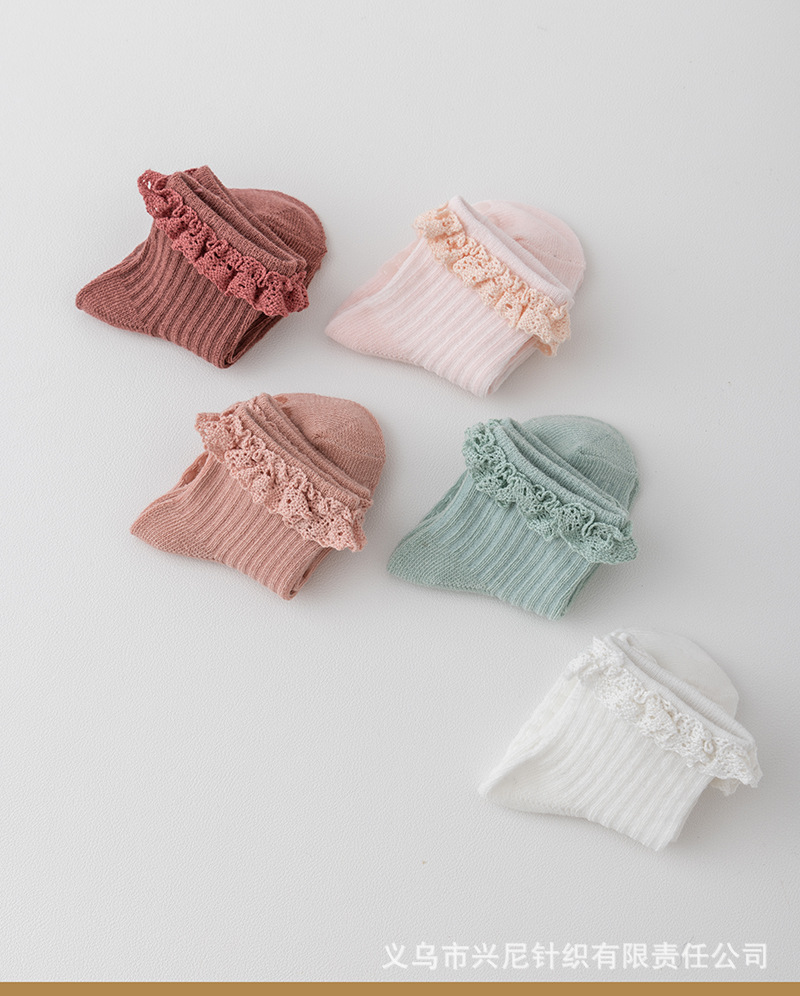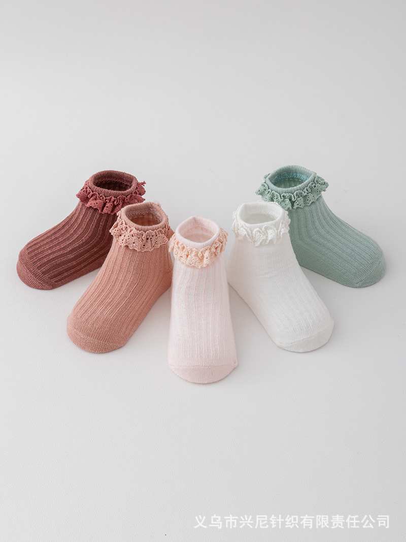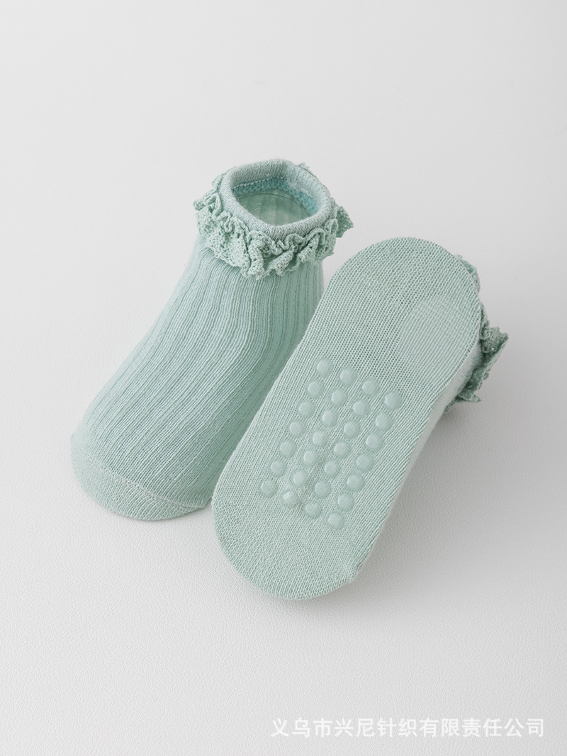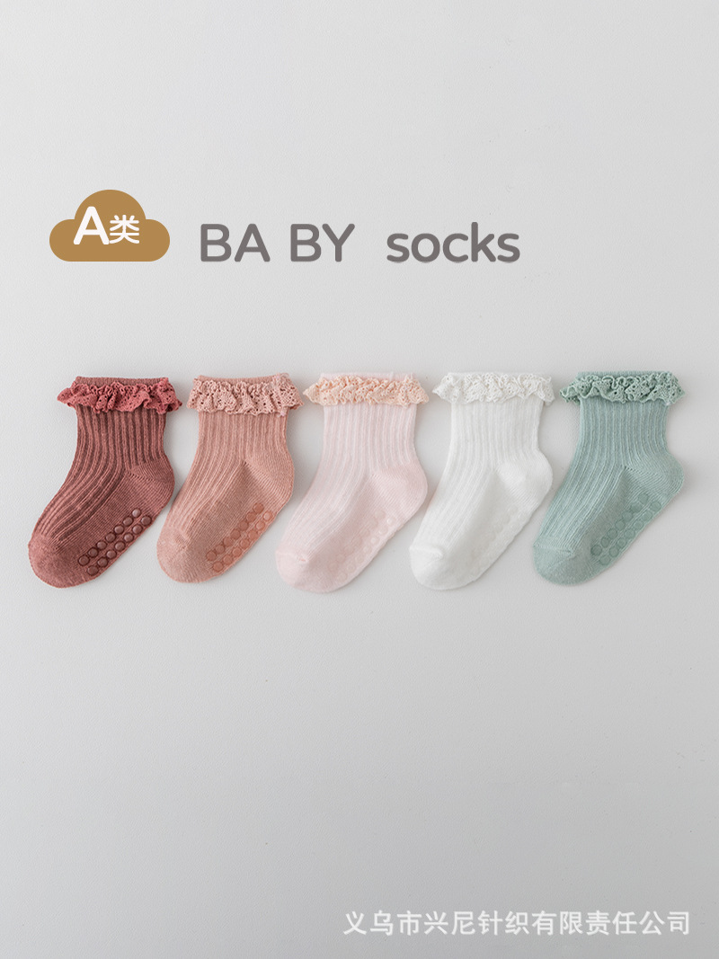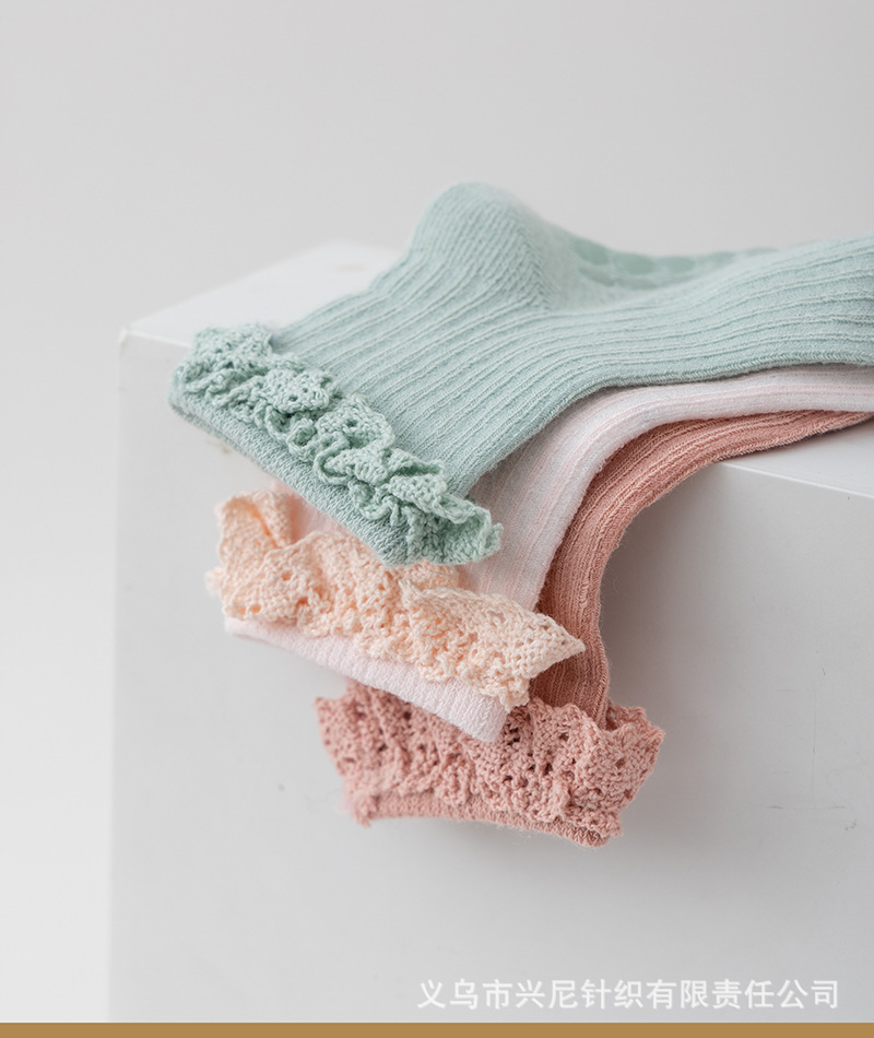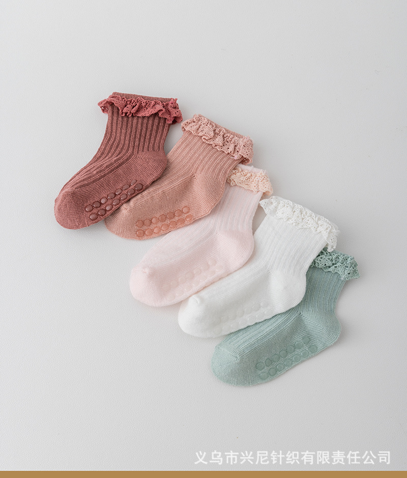 Нескользящие весенне-осенние хлопковые носки для новорожденных 0-6 месяцев, кружевные носки принцессы для девочек, детские носки в пол