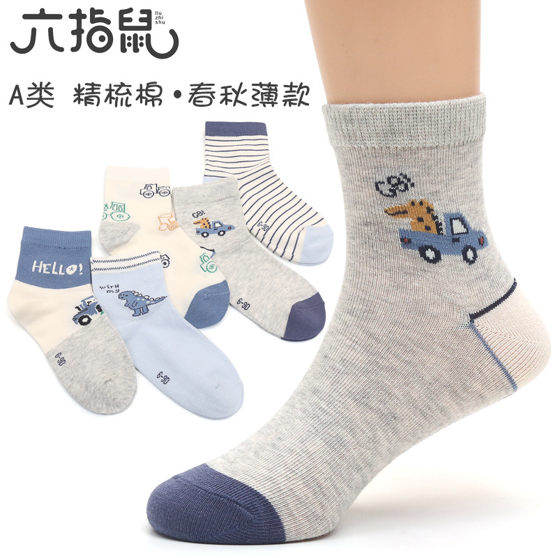 Детские носки из тонкого хлопка с шестью пальцами, весенне-осенние, с динозаврами, средней длины, в японском стиле, полностью из тонкого хлопка, влагопоглощающие, в корейском стиле, новые хлопковые носки для мальчиков