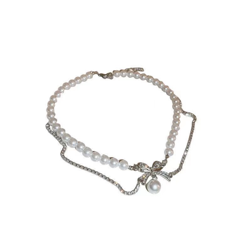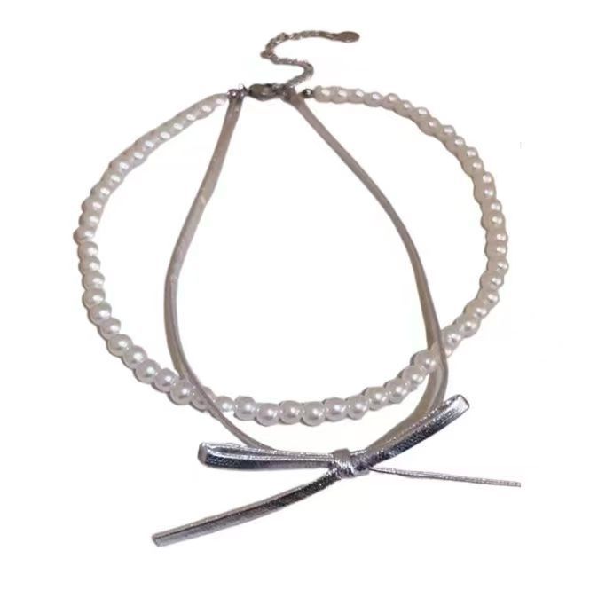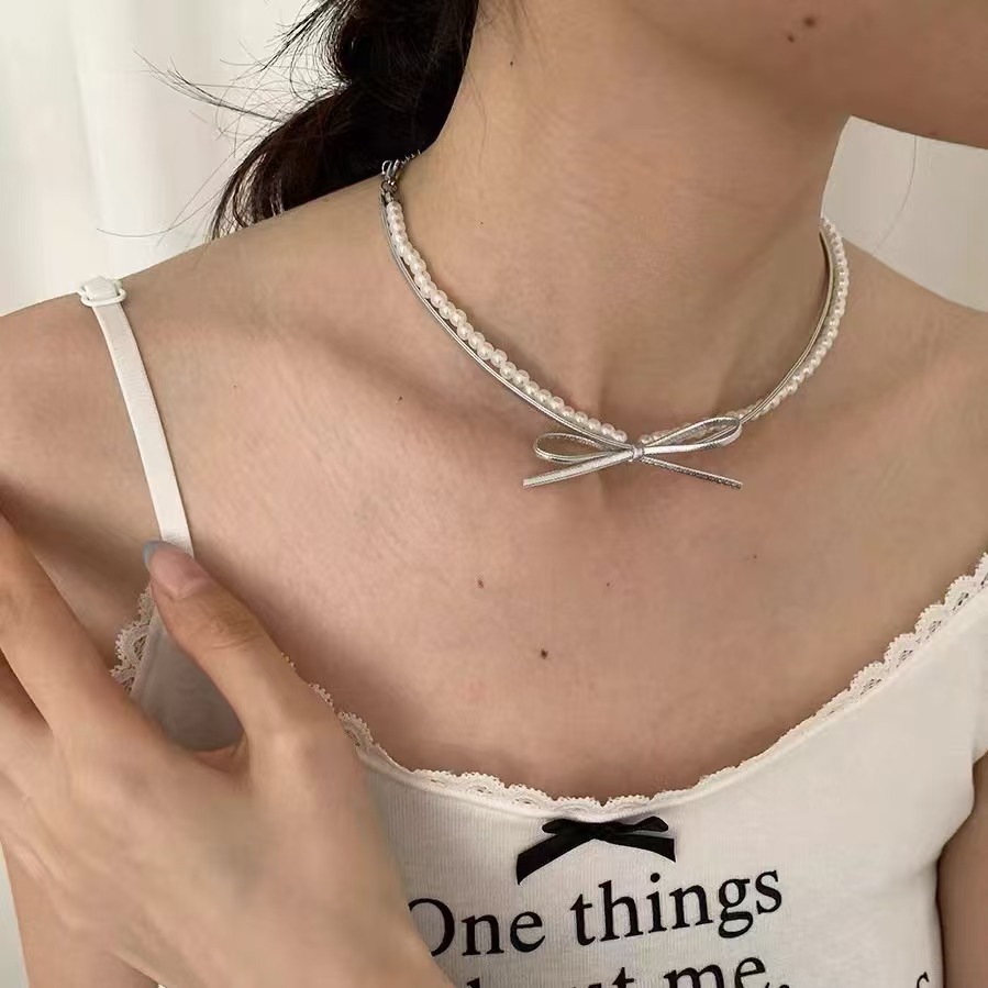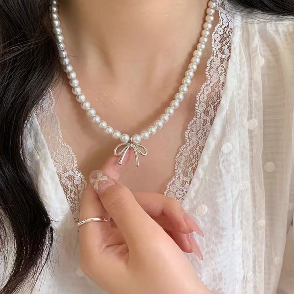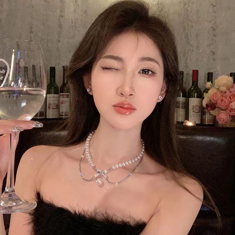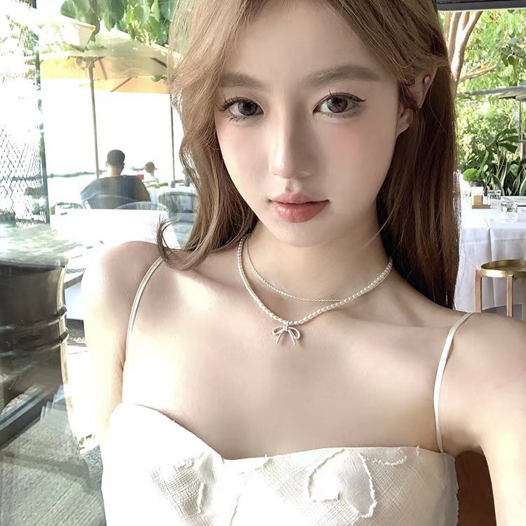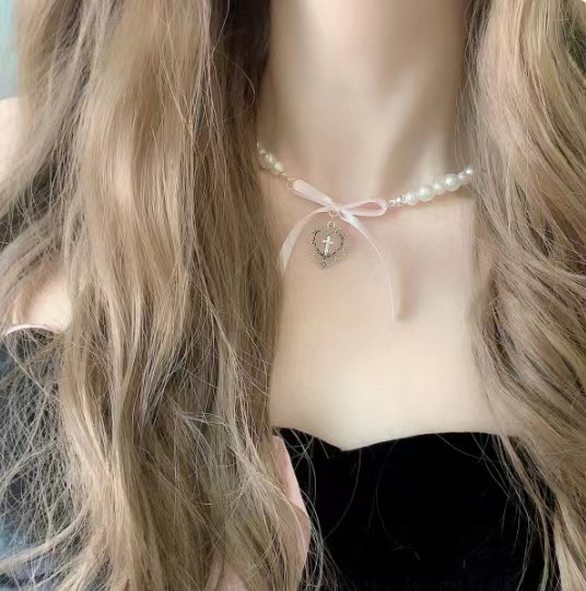Французский Стиль Розовое сердце лук универсальные жемчужное ожерелье женский нишевый дизайн сладкий чистый желание ожерелье ключицы цепь