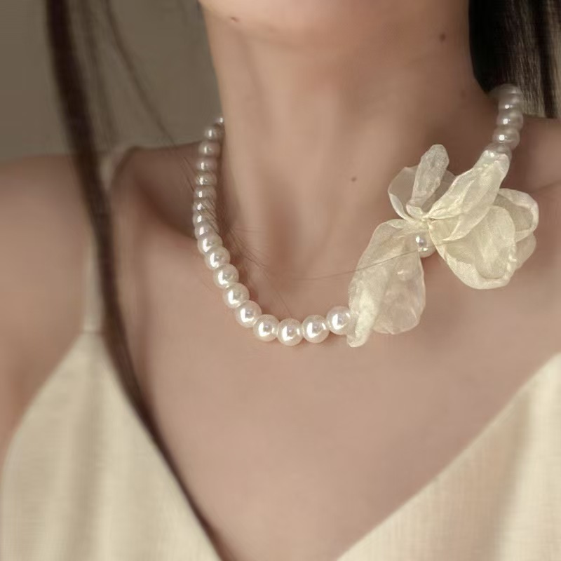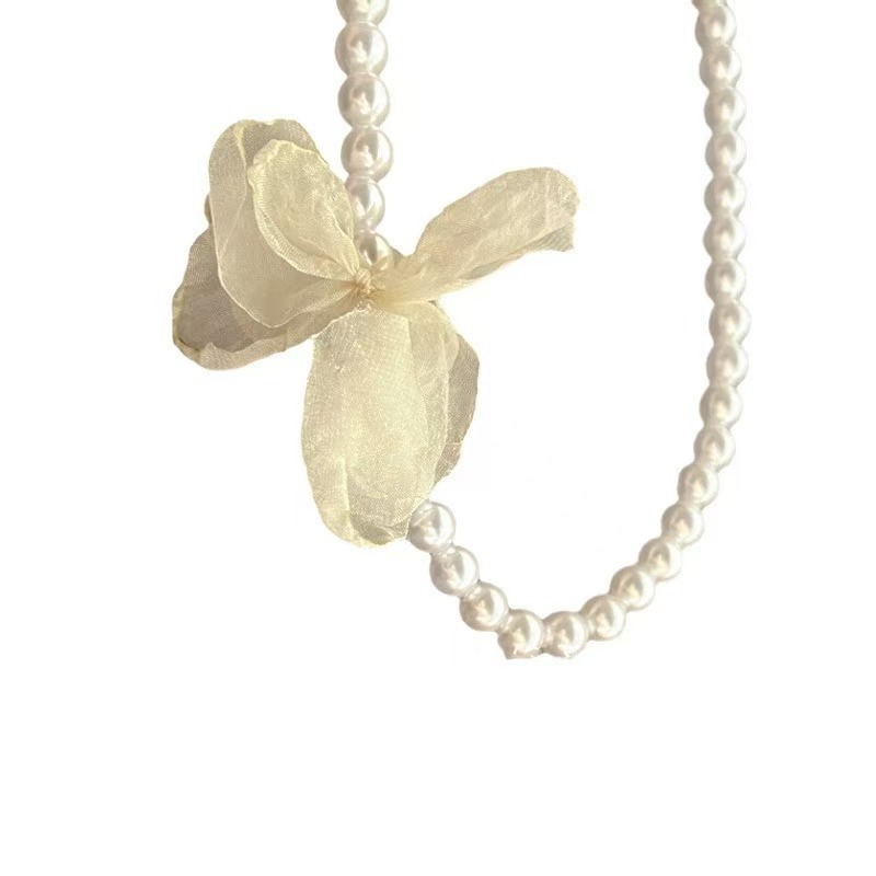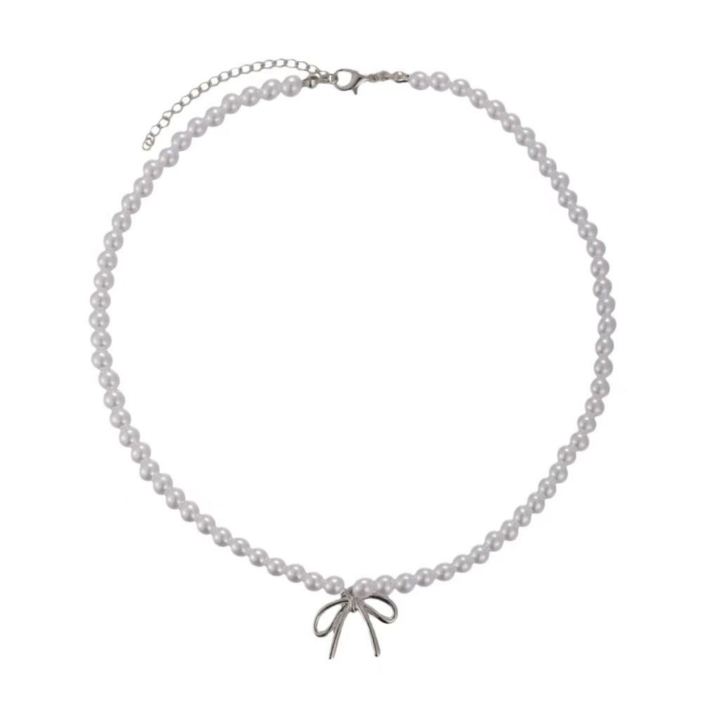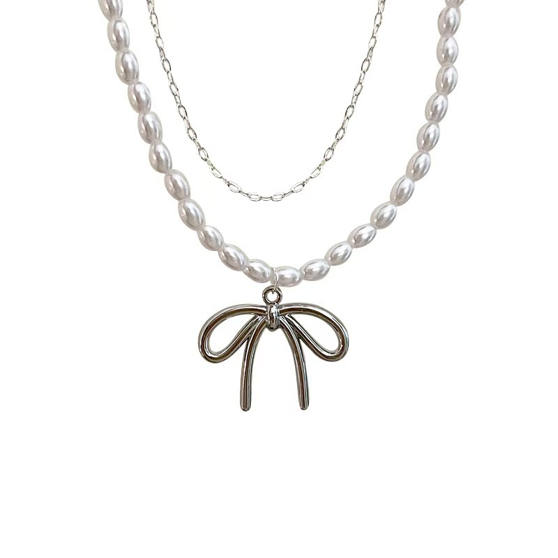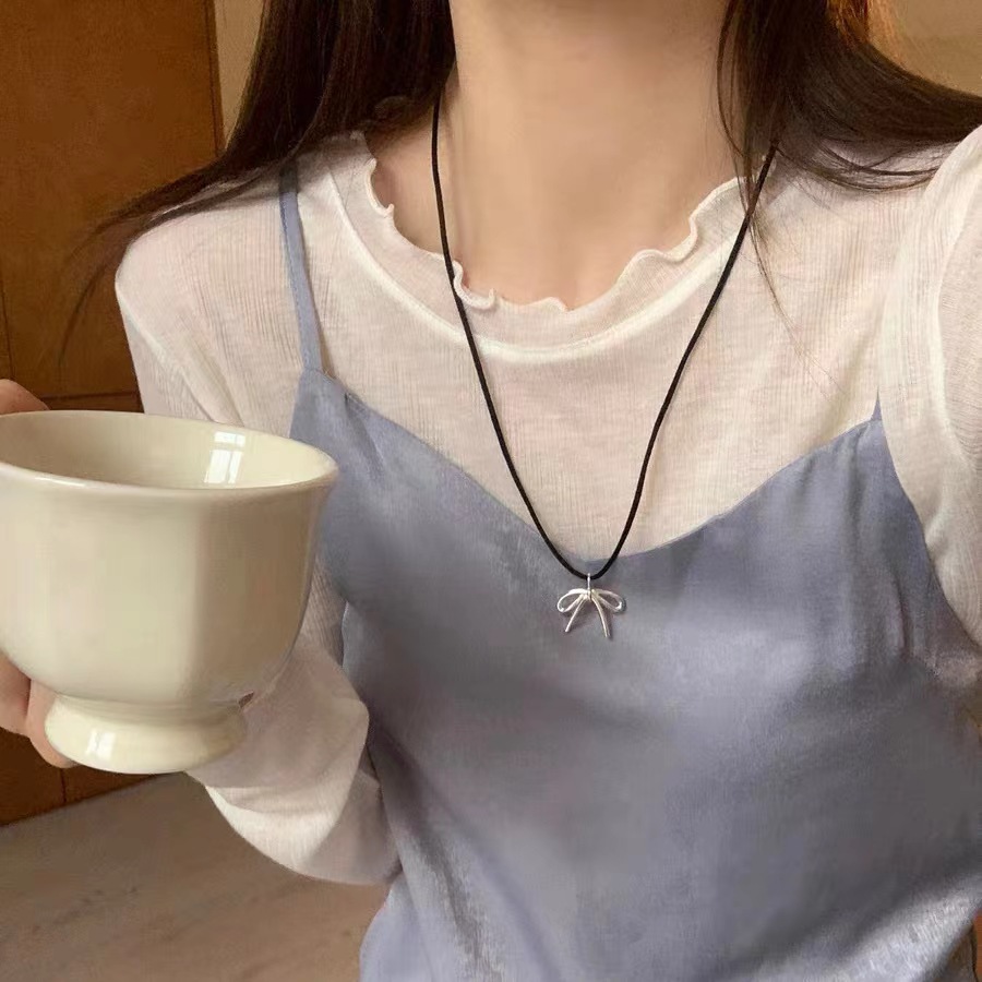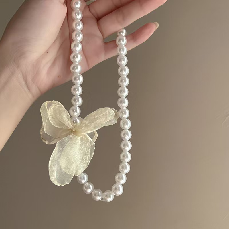 Французский Стиль Розовое сердце лук универсальные жемчужное ожерелье женский нишевый дизайн сладкий чистый желание ожерелье ключицы цепь