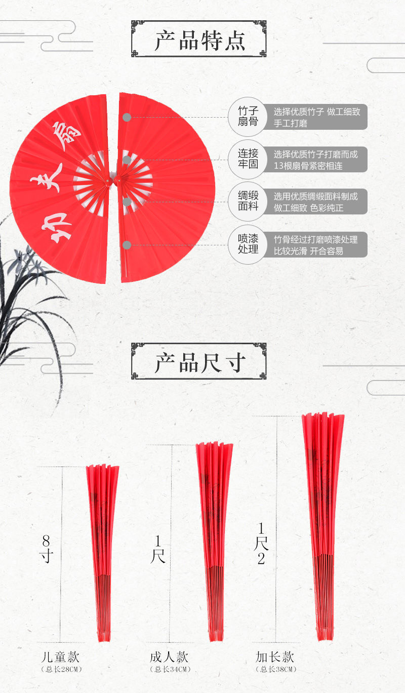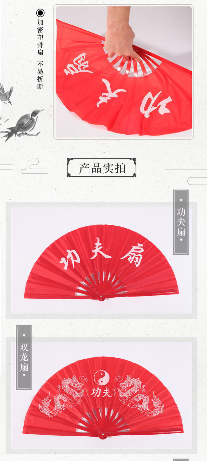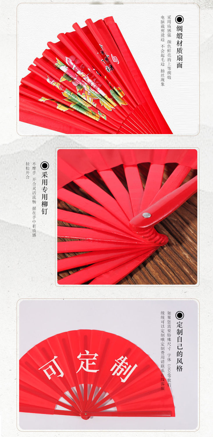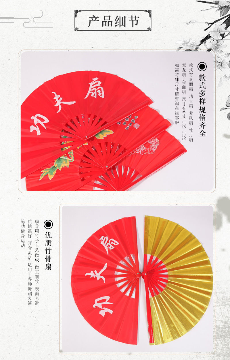 Веер для тай-чи, кунг-фу, красный, аутентичный, двусторонний, высококачественный веер для боевых искусств, веер для взрослых и детей, танцевальный веер, веер для тай-чи