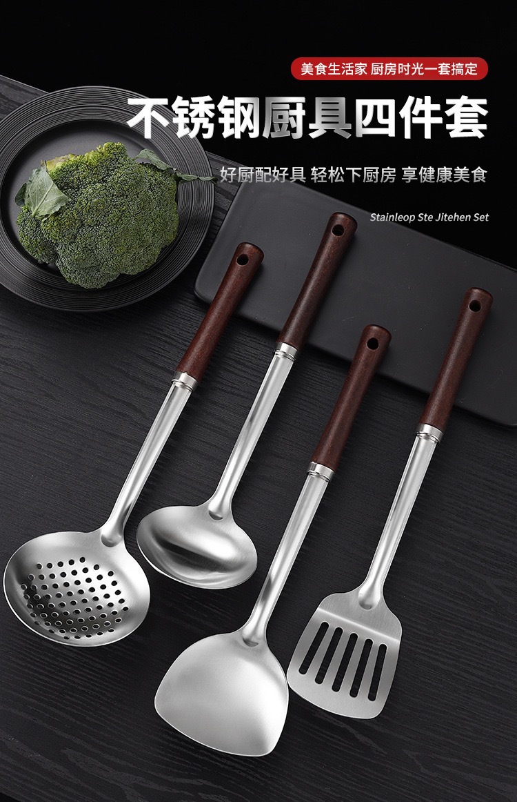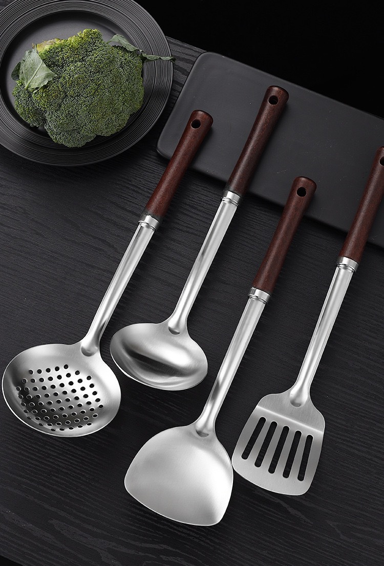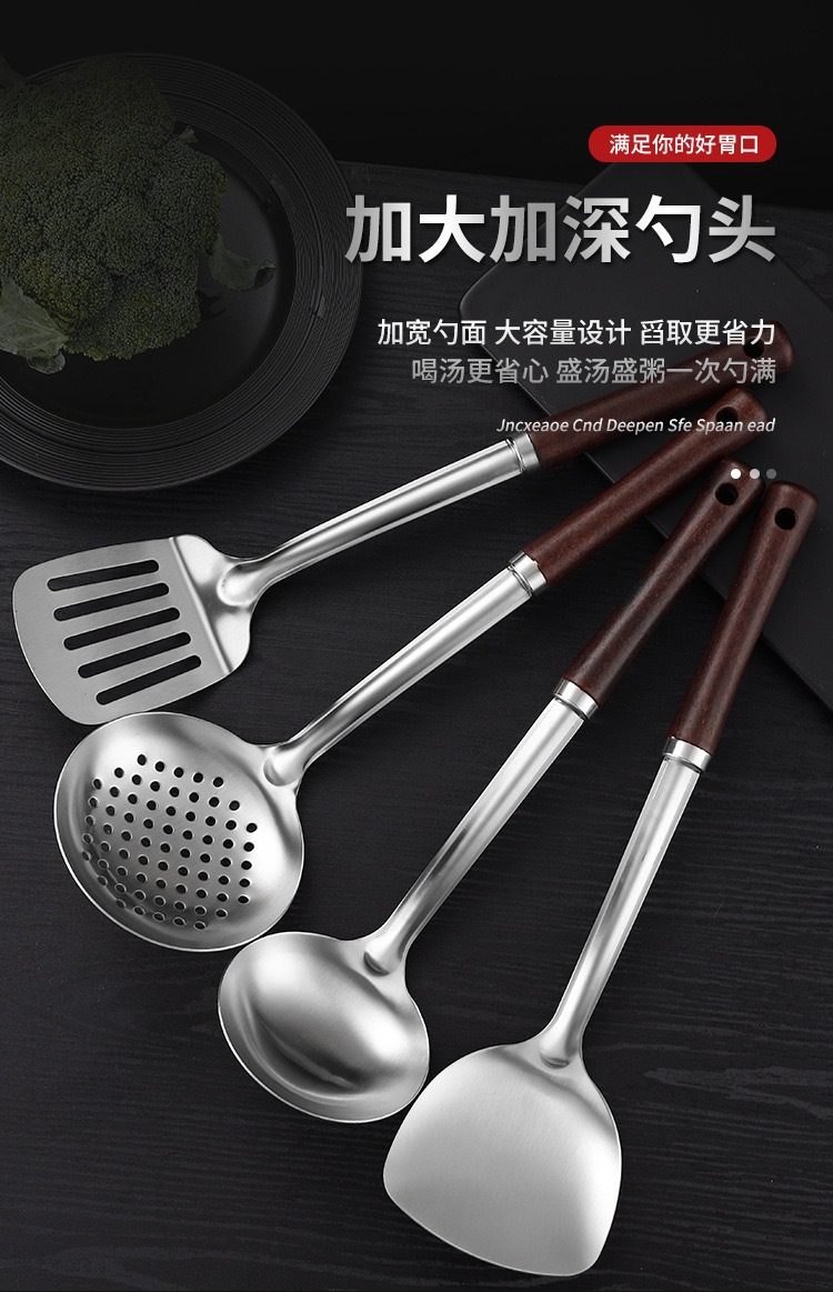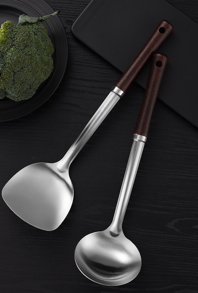 Шпатель из нержавеющей стали кухонная Лопата удлиненная деревянная ручка маленькая Талия шпатель ложка Бытовая суповая ложка кухонная утварь костюм оптом