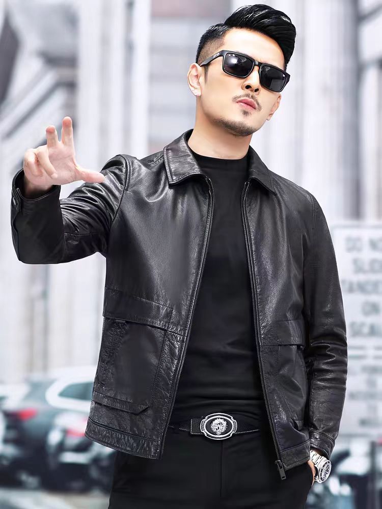 Прямая поставка с фабрики, весенне-осеннее Мужское пальто из воловьей кожи первого слоя, лацкан, масляная восковая Тонкая Повседневная кожаная куртка, куртка