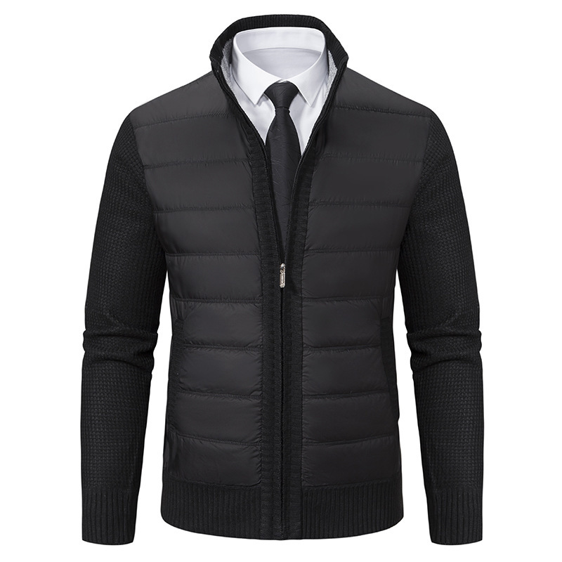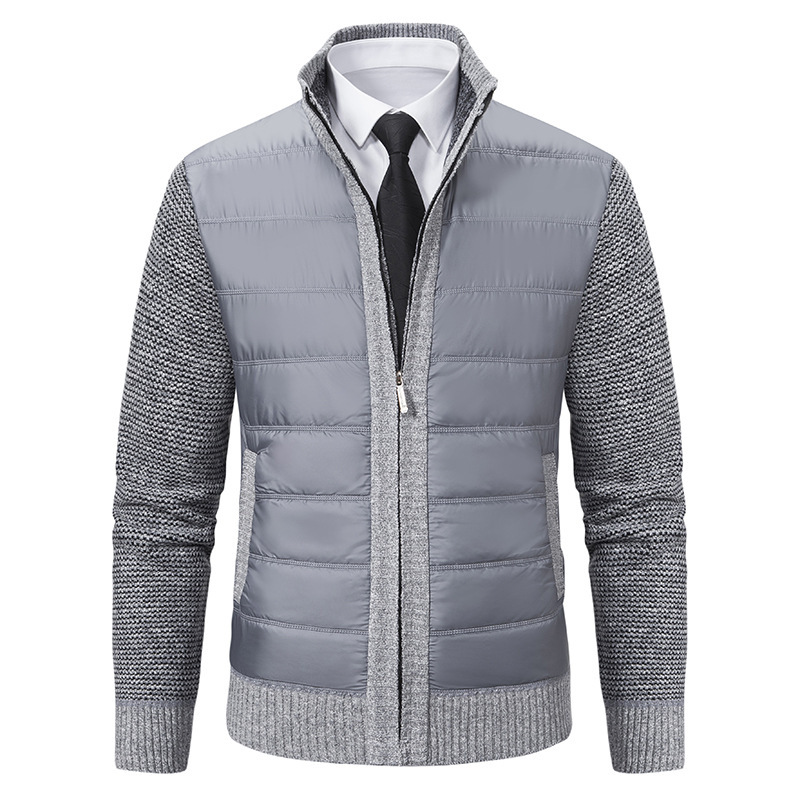 Мужской кардиган-свитер 2025 года, новинка, с молнией, воротником-стойкой, на флисовой подкладке, утолщенный, для осени и зимы, оптом.