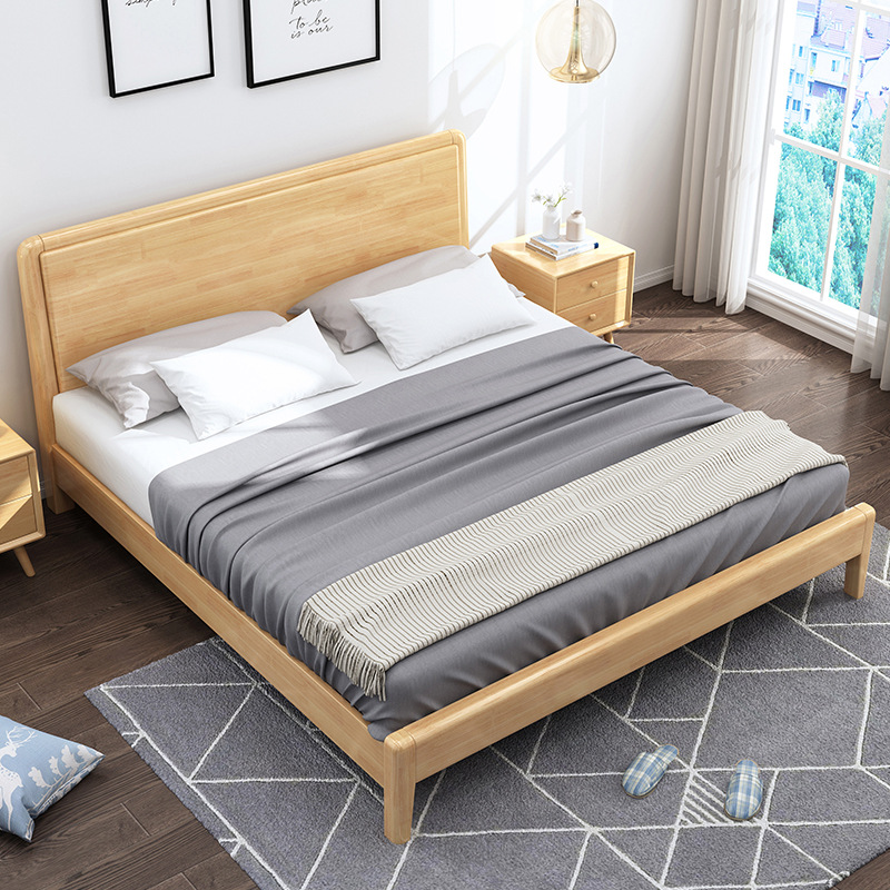 Скандинавская кровать из массива дерева 1.8 м главная спальня двуспальная кровать 1.5m высокая кровать Коробка квартира 1.2 односпальная кровать небольшая мебель
