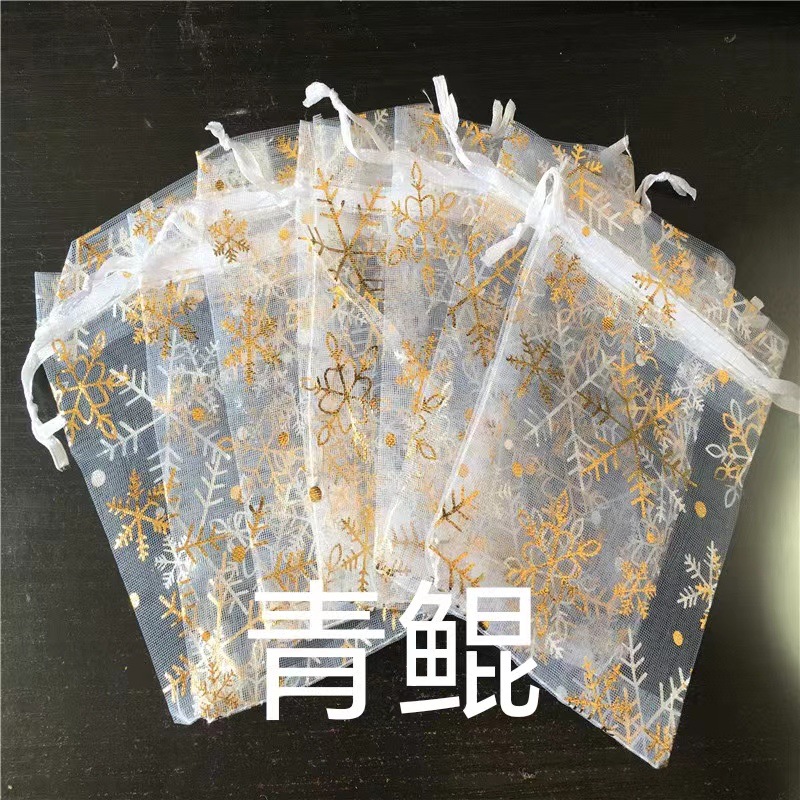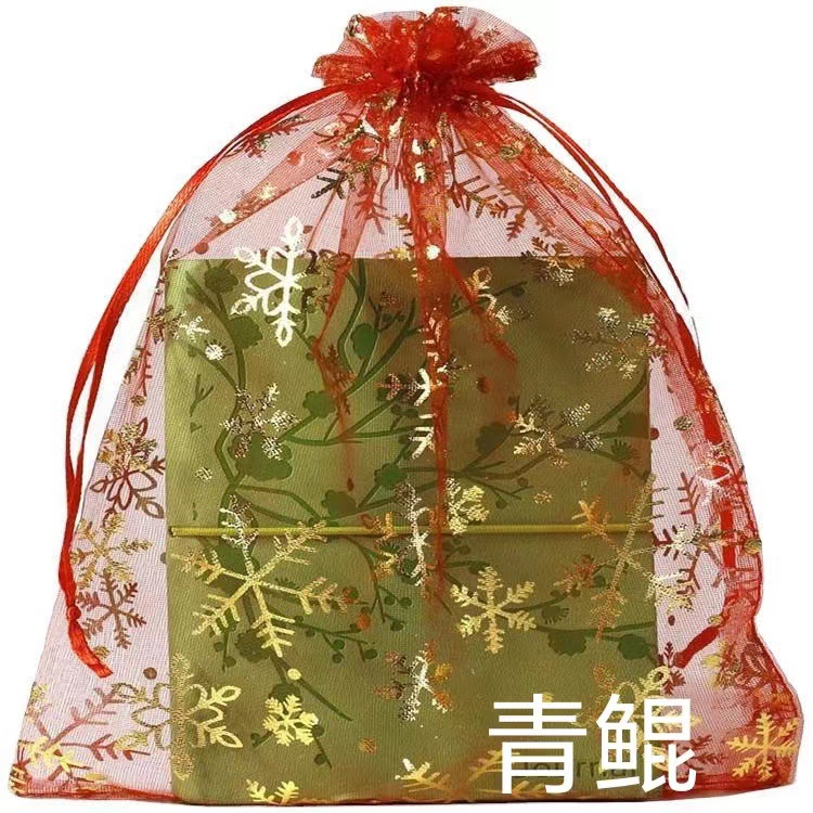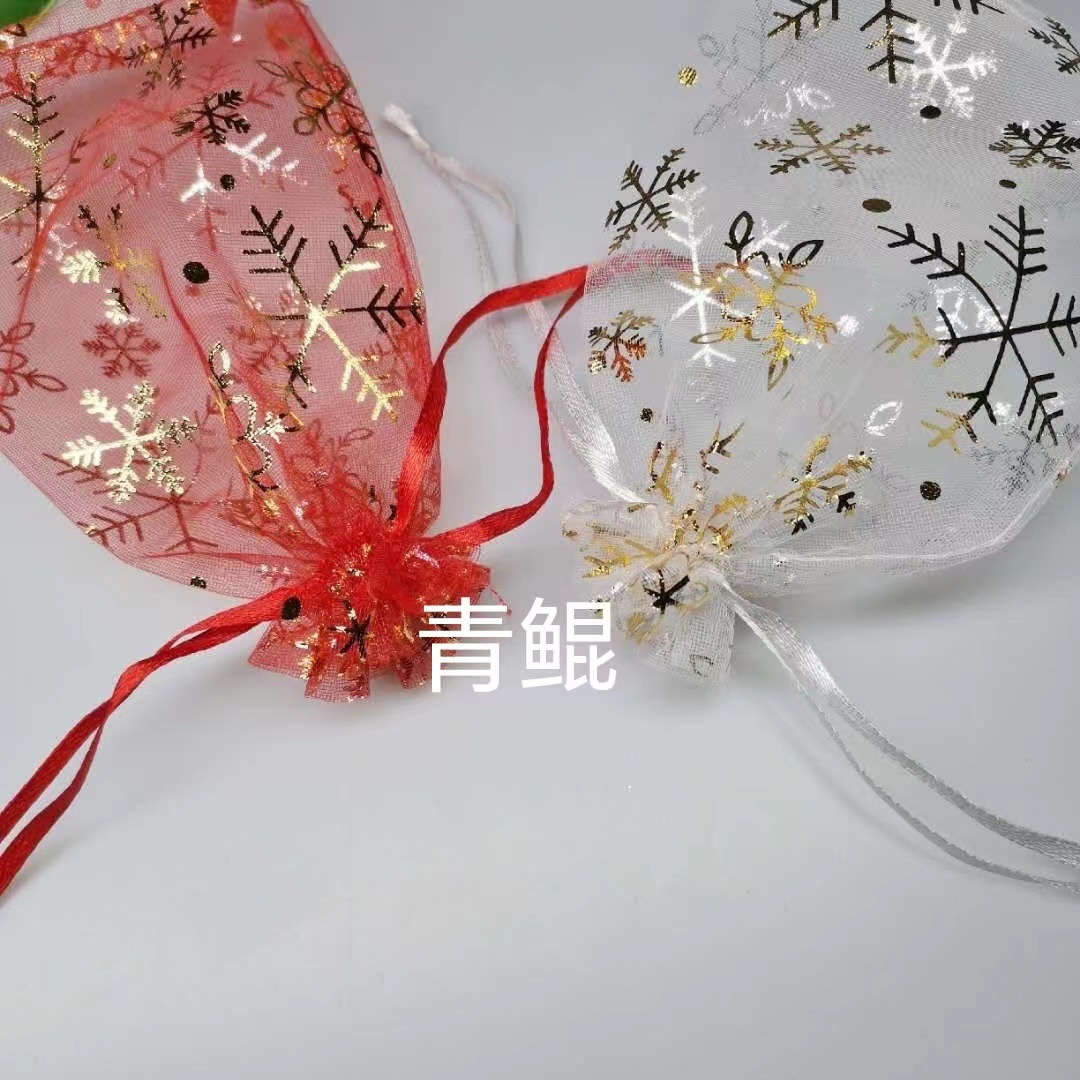 В наличии горячее тиснение Серебряная Снежинка мешок Рождественский мешок шнурок мешок сетки мешок подарка упаковывая мешок органзы мешок