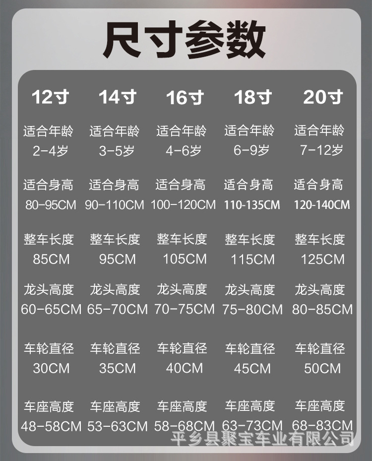 12 дюймов подходит для роста [80-90 см]; 14 дюймов подходит для роста [90-105 см]; 16-дюймовый подходит для роста [100-115 см]; 18 дюймов подходит для роста [110-130 см]; 20 дюймов подходит для роста [120-140 см]
