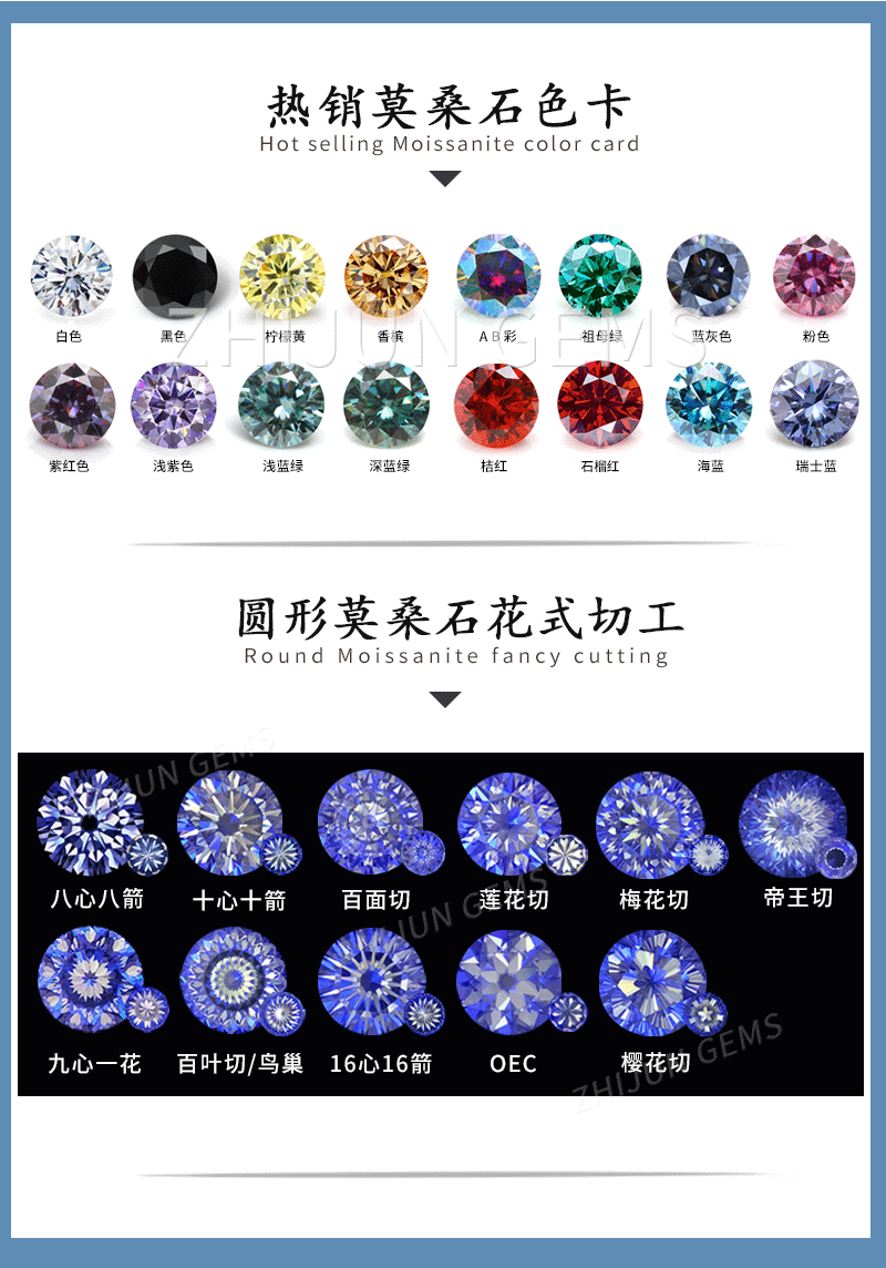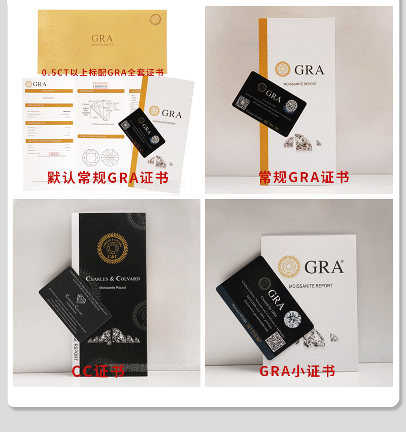 3.0mm 0.1ct; 4.0mm 0.3ct; 5 мм, 0,5 карата + GRA, размер талии; 6,0 мм, 0,8 карата + размер талии GRA; 6,5 мм, 1 карат + GRA, размер талии; 7 мм, 1,2 карата + размер талии GRA; 7,5 мм, 1,5 карата + размер талии GRA; 8 мм, 2 карата+, размер талии GRA; 9 мм, 3 карата+, размер талии GRA; 9 мм, 3,5 карата + GRA, размер талии; 10 мм, 4 карата+, размер талии GRA; 11 мм, 5 карат+, размер талии GRA