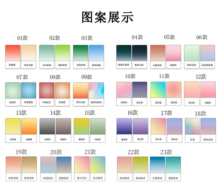Туманность Фиолетовый/Сакура Падающий Красный [Передняя и Задняя стороны]; Радуга + Закат [Спереди и сзади]; Оранжевый цвет мякоти + розовый [спереди и сзади]; Розовый синий + желто-зеленый [спереди и сзади]; Национальный стиль: зеленый + фруктово-зеленый [спереди и сзади]; Красный + Желтый Центр [Двусторонний]; Оранжево-красный белый + желто-белый [спереди и сзади]; Синий и белый + темно-зеленый и белый [спереди и сзади]; Синий + Зеленый Центр [Передняя и Задняя Часть]; Темно-серый + малахитово-зеленый [спереди и сзади]; Блакитный оттенок + оранжевый «чистое небо» [спереди и сзади]; Мечтательный розовый + сияющий фиолетовый [двусторонний]; Порошок «Снежная гора» + Порошок «Бегония» [Лицевая и обратная стороны]; Осенний абрикосовый желтый + утренний оранжевый [спереди и сзади]; Жемчужно-серый + Туманно-серый [Спереди и сзади]; Оливково-зеленый + фантомно-зеленый [спереди и сзади]; Сумеречный фиолетовый + Серебристый фантазийный фиолетовый [Спереди и сзади]; [Стиль 02] Весна немного милая/Зелень полна твоих рук; [Модель 03] Царство зеленого леса/Фэнтези зеленого леса; [Модель 04] Долина Юцюань/Бигу Люцюань; [Модель 06] Тень бамбукового сна/Царство тихого мха; [Модель 07] Царство чая Юнман/Куитао Циньян; [Модель 08] Куисяо Янься/Берри Дикий Зеленый Ци; Градиент радуги + градиент фиолетового; Розовый градиент + градиент цвета кожи; Розовый синий градиент + синий желтый градиент; Бегите + Панпан Цинчжоу; Розовый оранжевый + фруктово-зеленый градиент; Градиент небесно-голубого цвета + градиент голубого цвета озера
