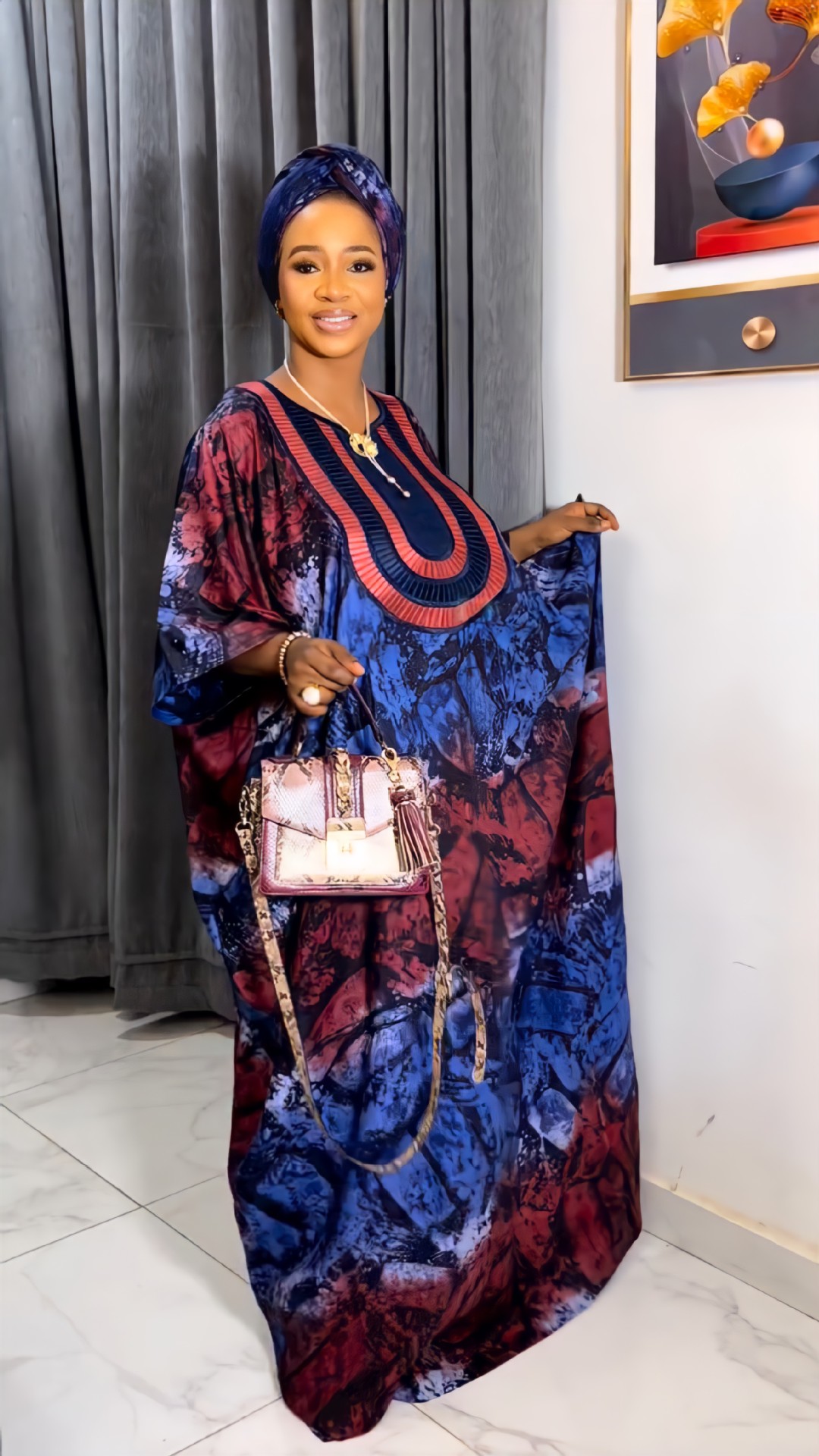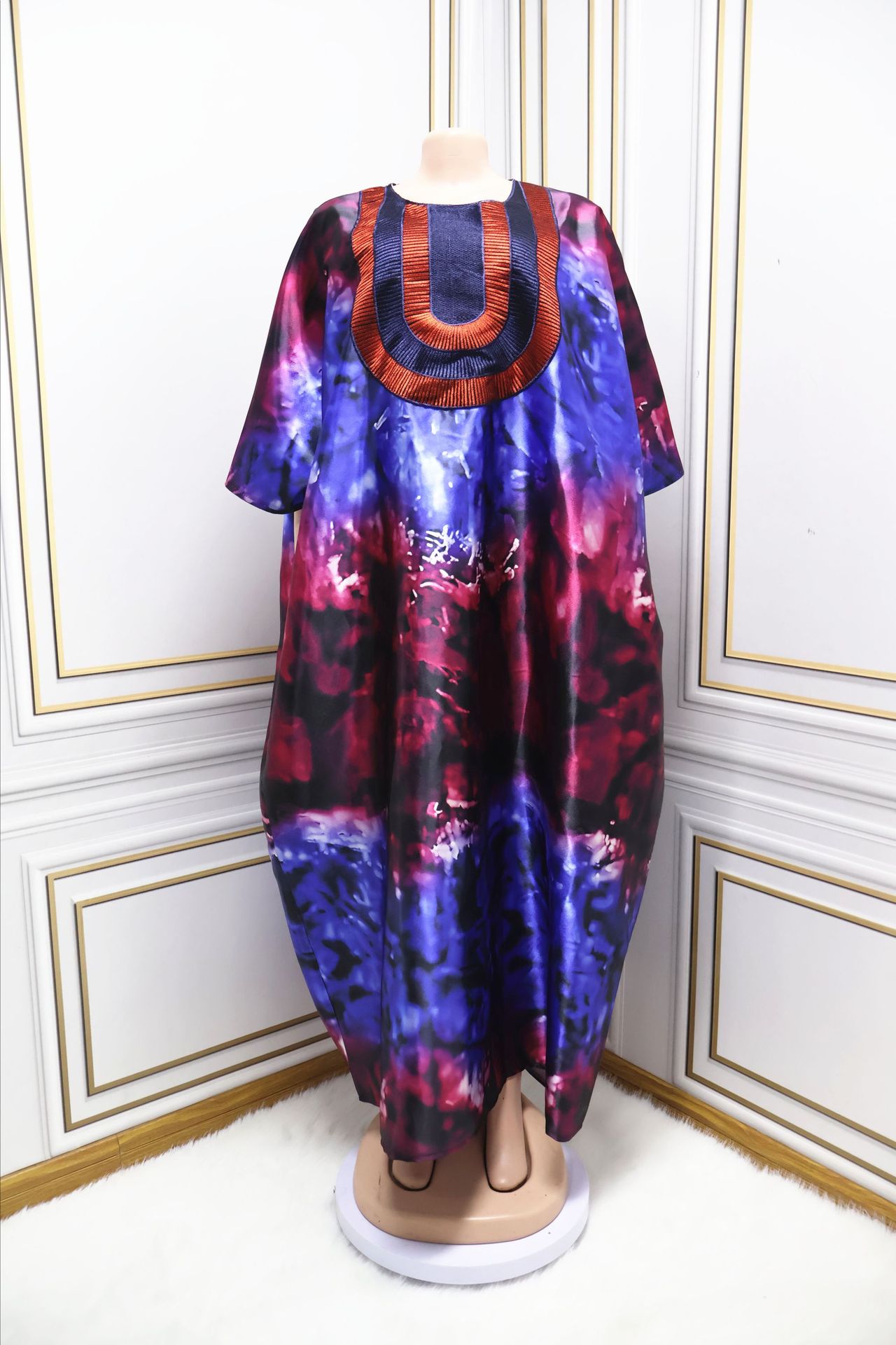 Tiktok2024 Европейский и американский свободный халат с вышивкой в африканском стиле и платком, платье больших размеров для женщин