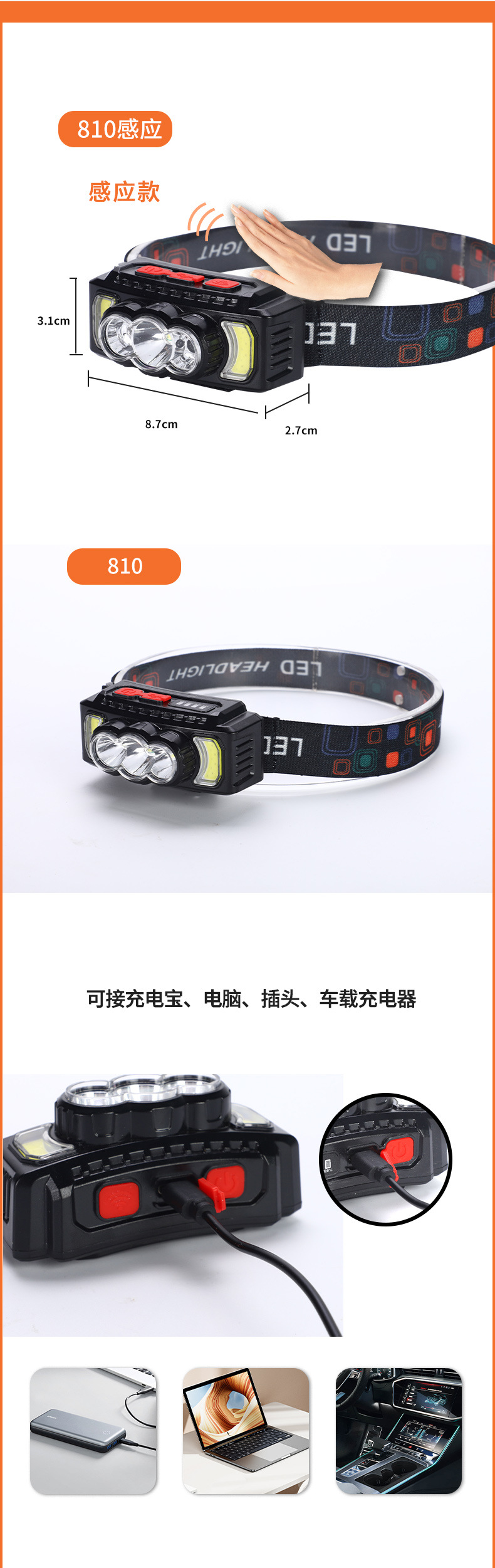 810 (USB-кабель + ремень фары + фара); 810 (USB-кабель + ремень фары + фара) индукционный
