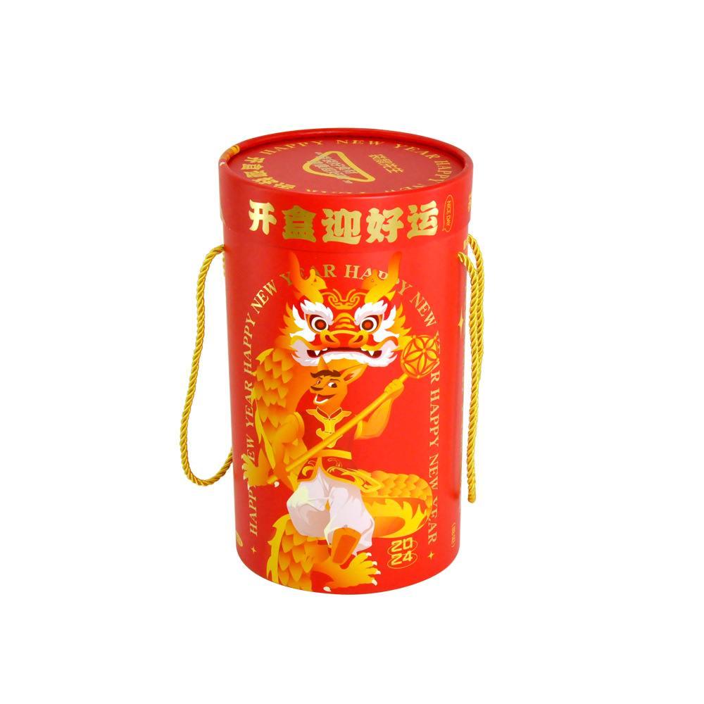 Красная праздничная подарочная коробка, круглая упаковка в виде ведерка, бумажная упаковка в форме ведерка, настраиваемый размер, с ручкой-ремнем для удобной переноски.