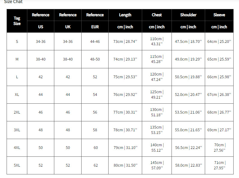 S; M; L; XL; 2XL; 3XL; 4XL; 5XL