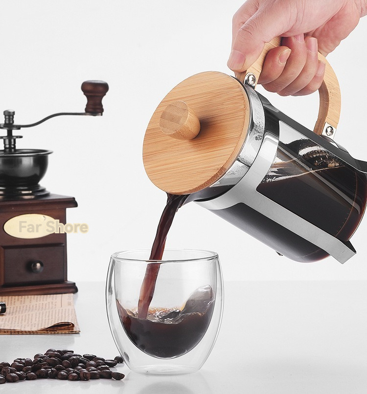 Деревянная ручка чайник стеклянный горшок давления пресс-фильтр кофейный прибор 350/600/800 мл кофейник оптом