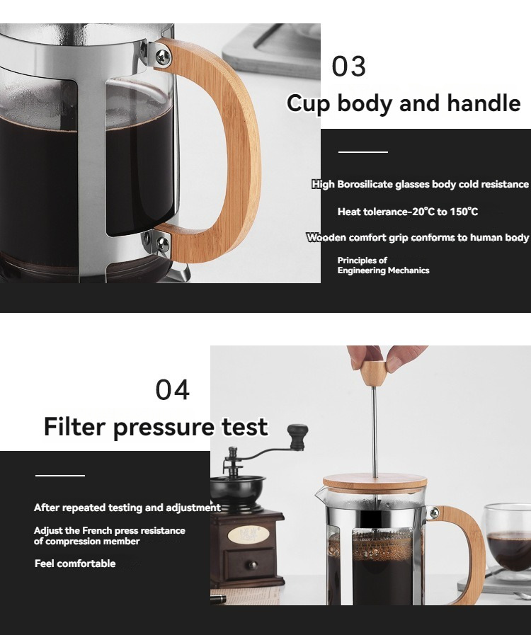Френч-пресс с деревянной ручкой, 350 мл.; Френч-пресс с деревянной ручкой, 600 мл.; Френч-пресс с деревянной ручкой, 800 мл.