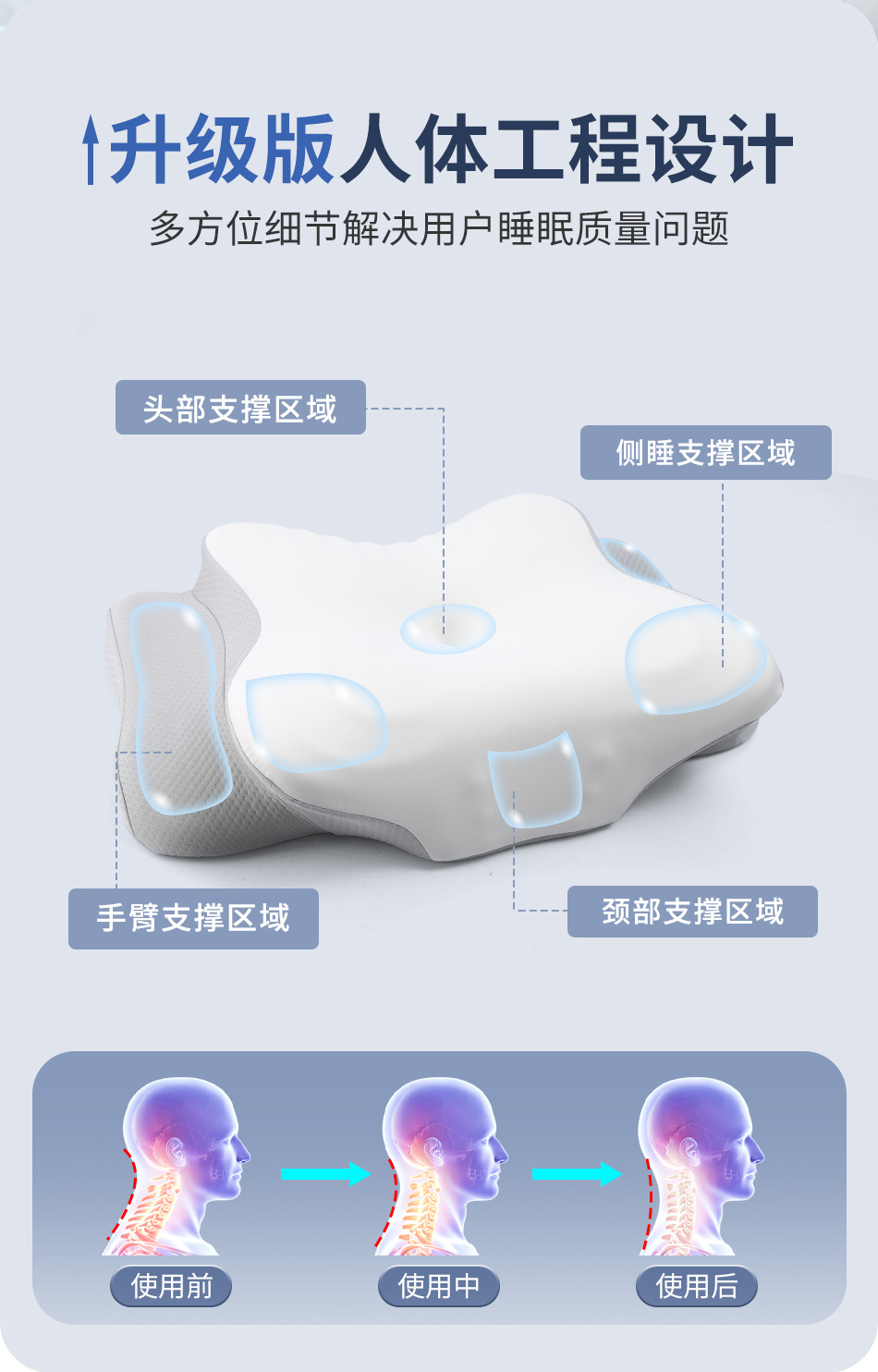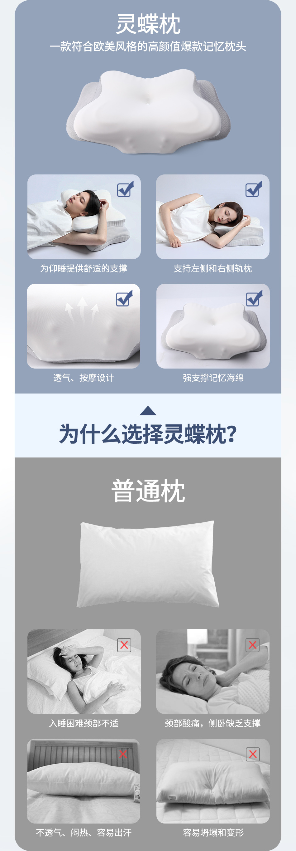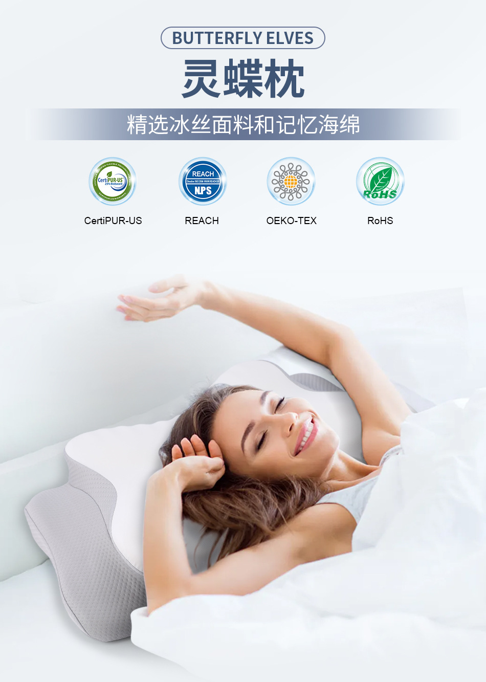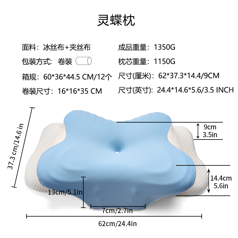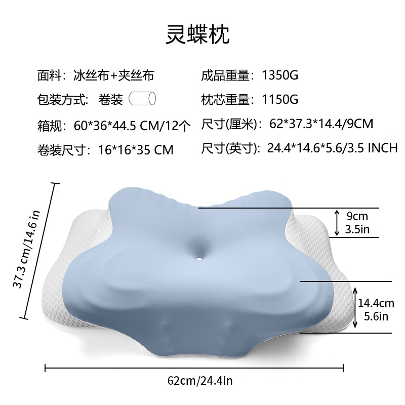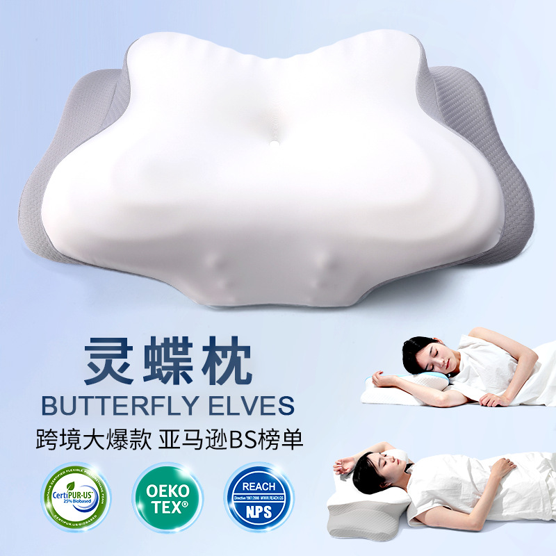 Ортопедическая подушка из пены с эффектом памяти «Бабочка», нулевая давление на шею, медленно восстанавливающая форму, с охлаждающим эффектом, для сна на боку
