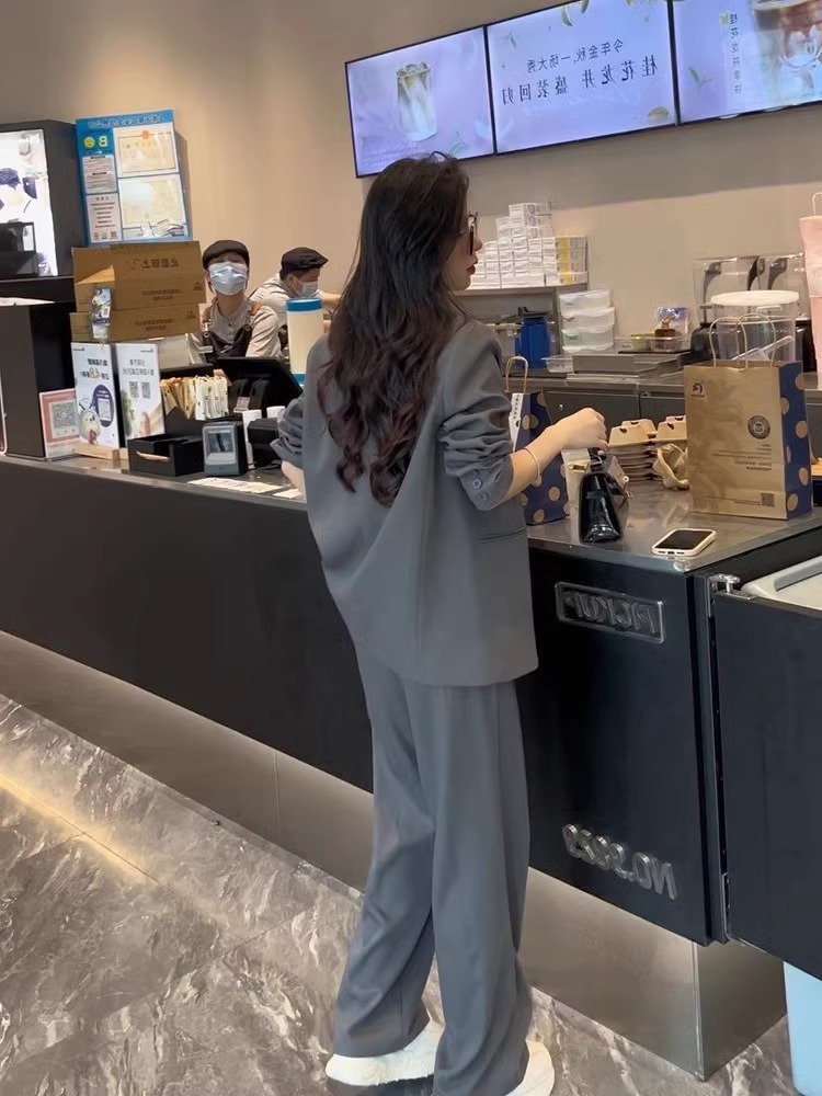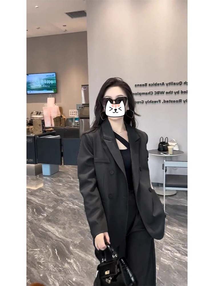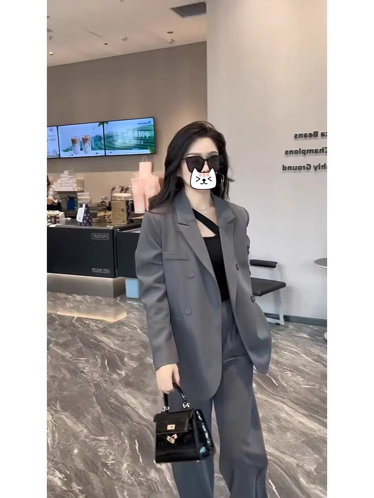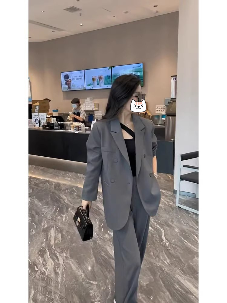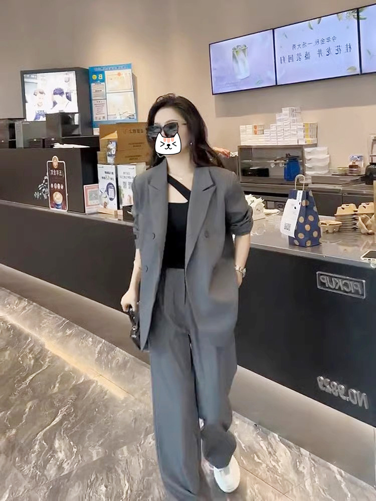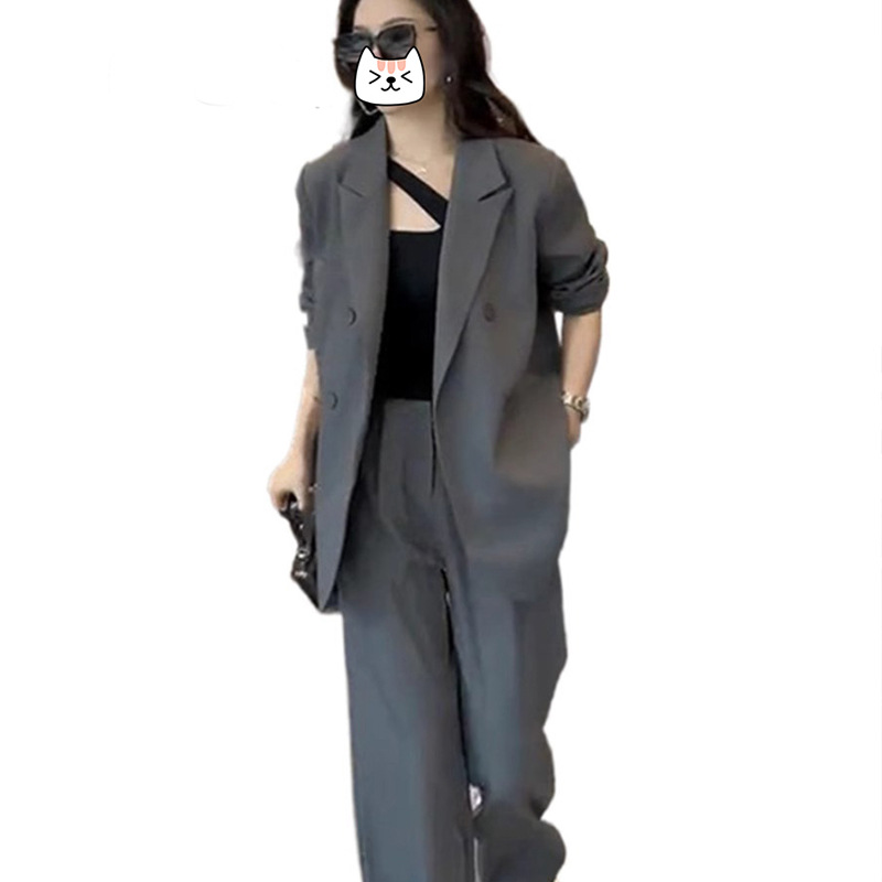 Женский Повседневный свободный костюм больших размеров, облегающий костюм с широкими штанинами для полных девушек, костюм из двух частей [6613]