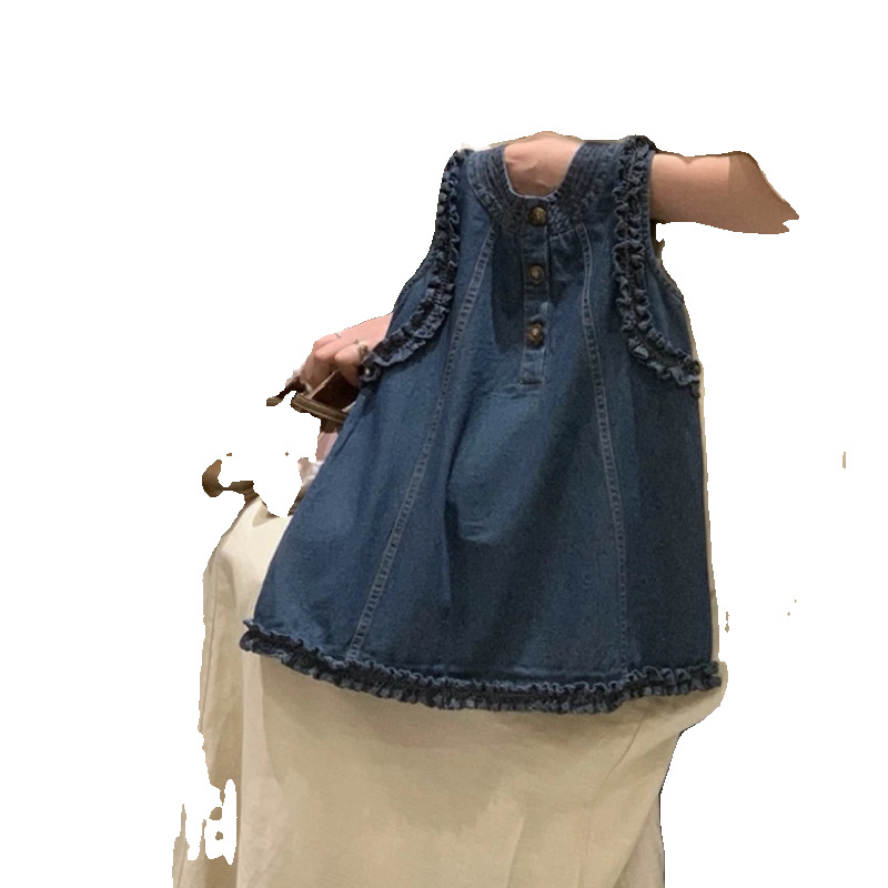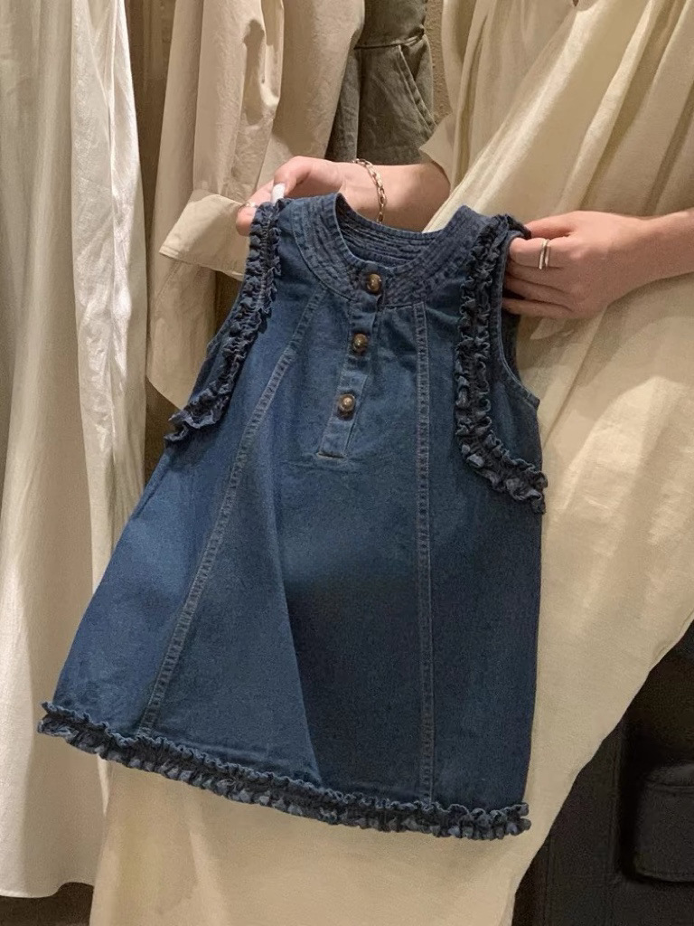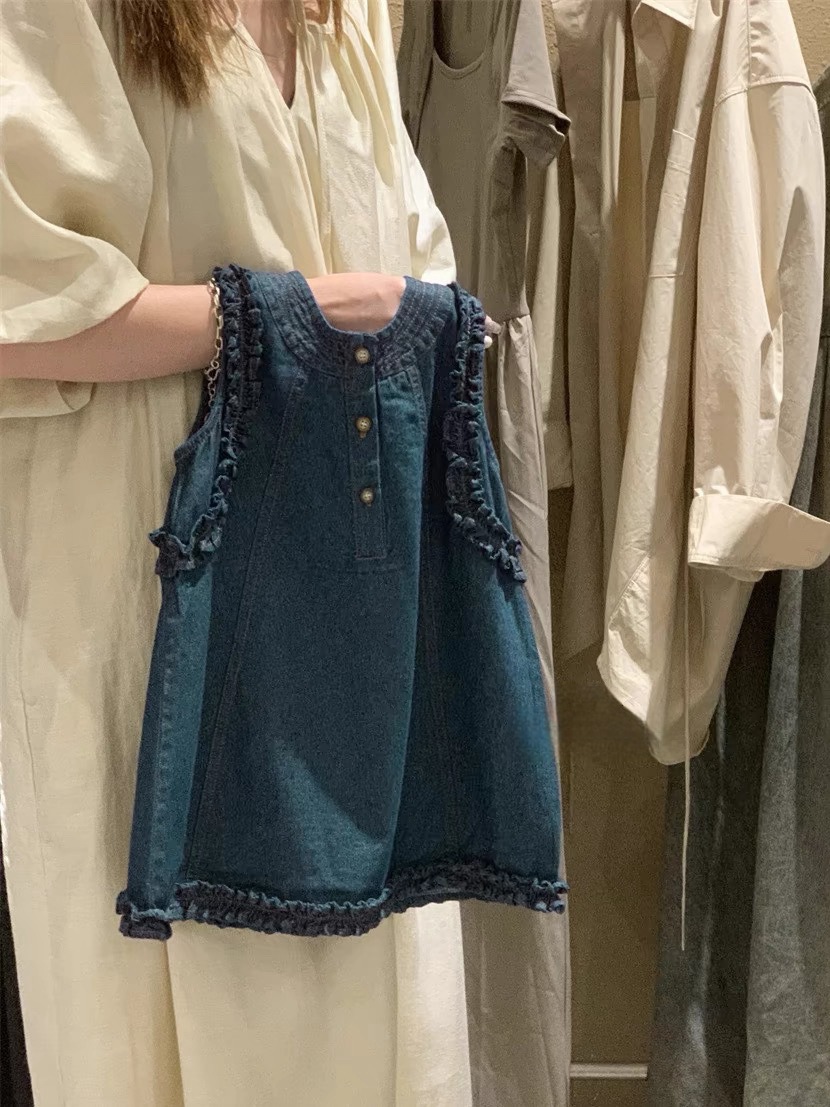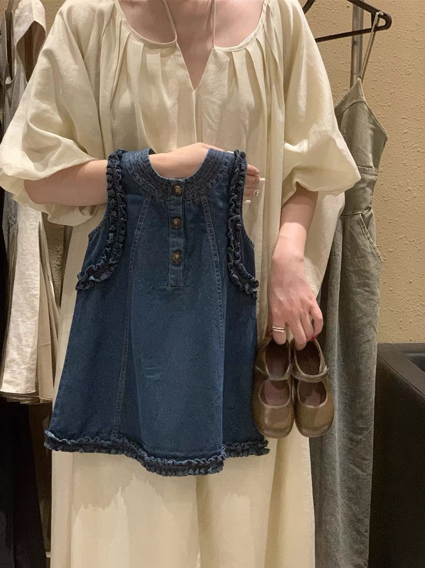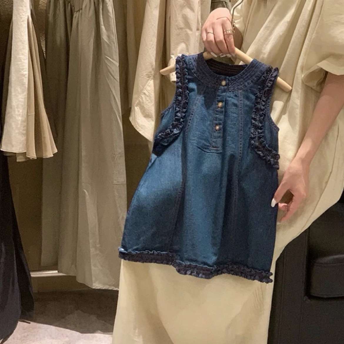 Новое летнее платье в корейском стиле для девочек 2025 года, с оборками, однотонное, из выстиранного денима, модное классическое платье-майка.