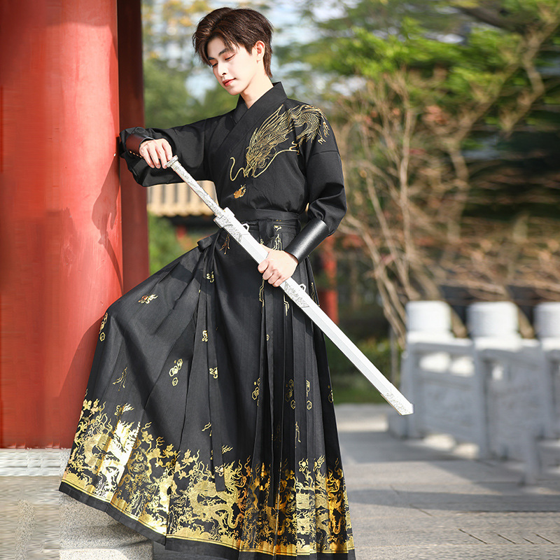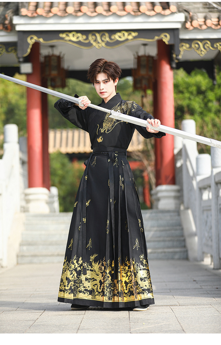 2024, новый настоящий снимок, оригинальный мужской костюм в китайском стиле с вышивкой крестообразным воротником и длинными рукавами, юбка с конским лицом династии Хань, костюм в стиле боевых искусств cp