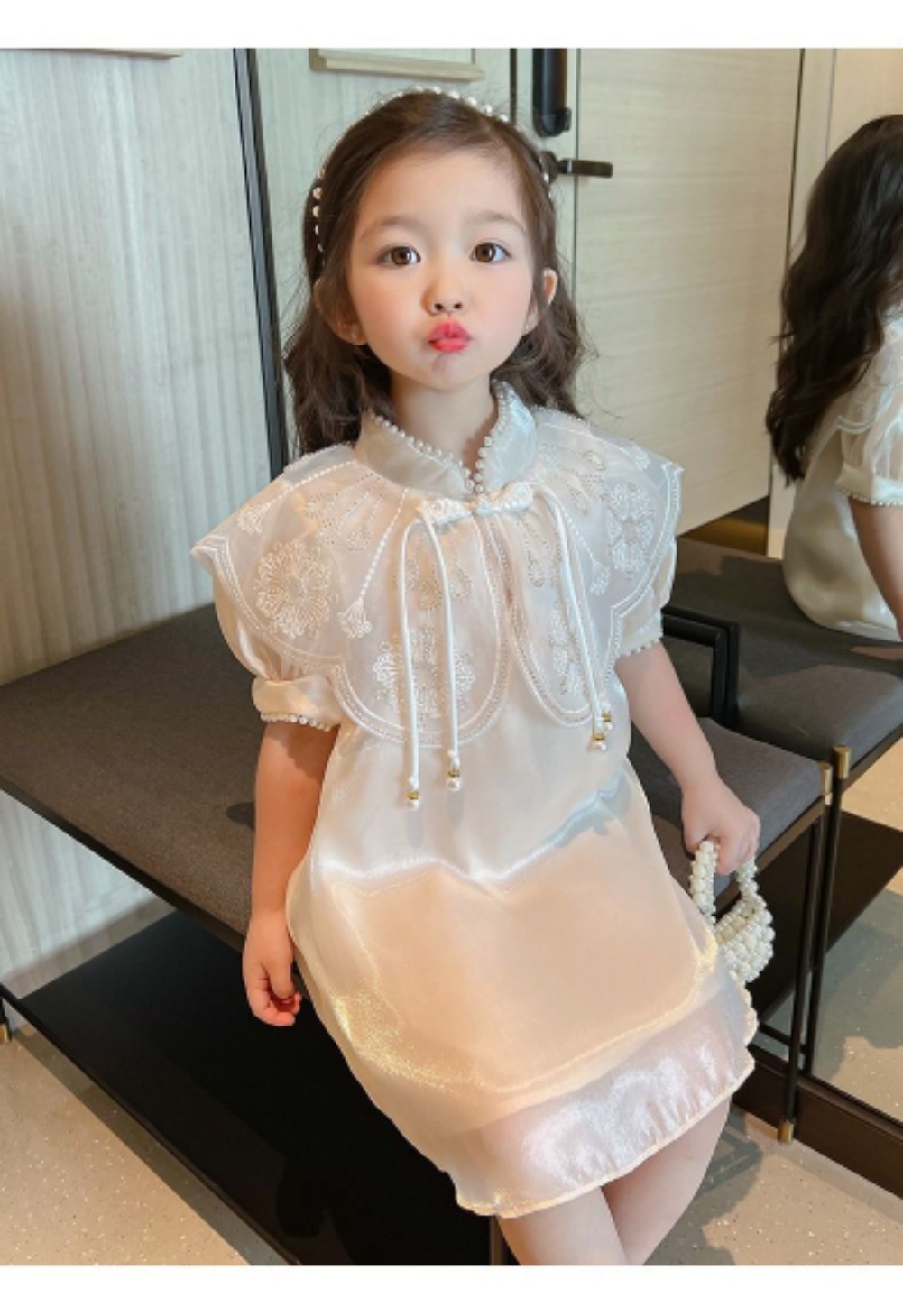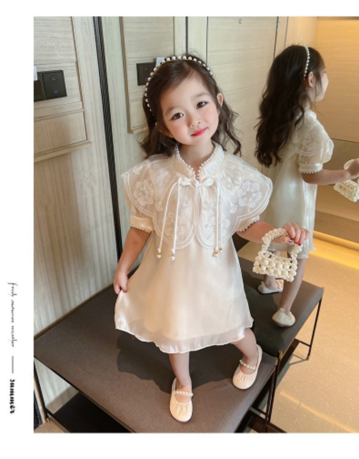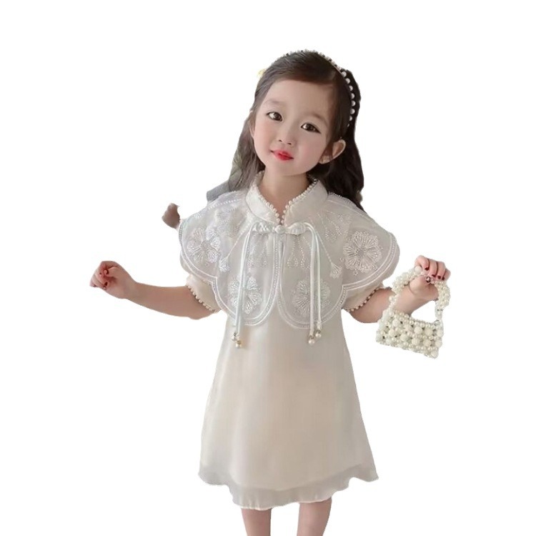 Летнее платье для девочек 2024 новый китайский стиль костюм с короткими рукавами юбка детское ретро сплошной цвет юбка