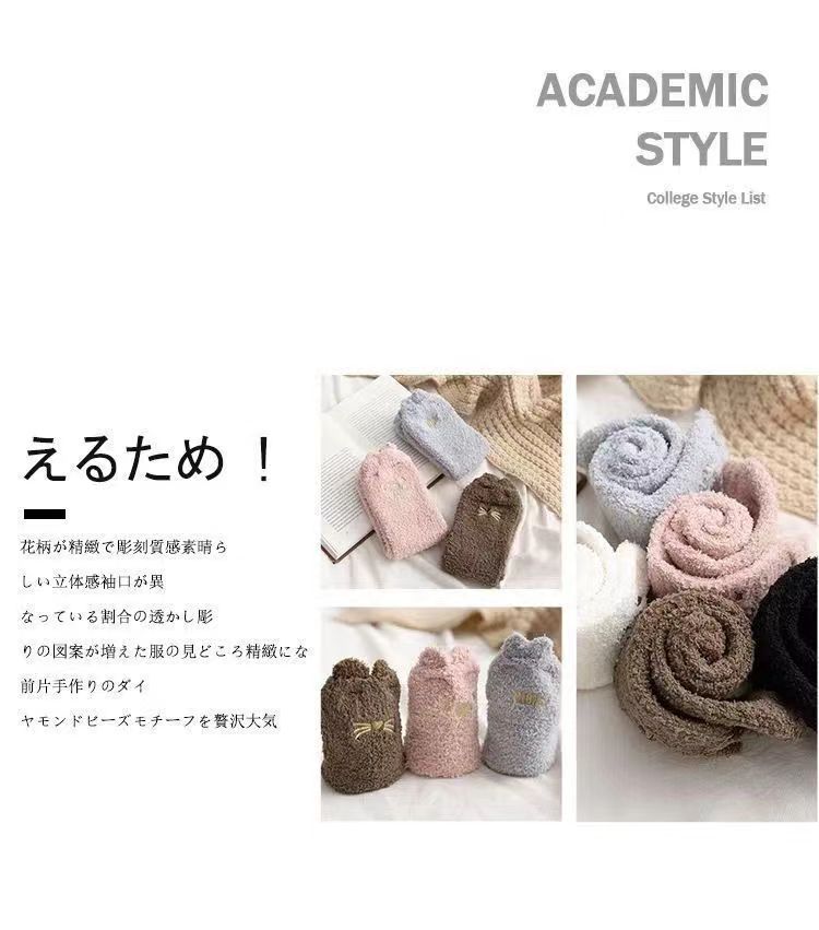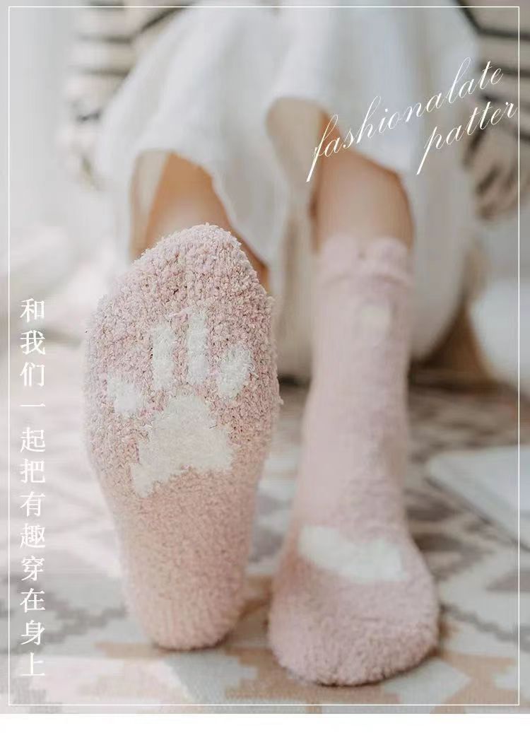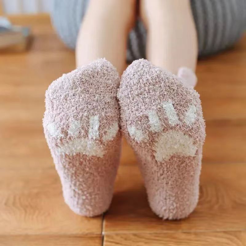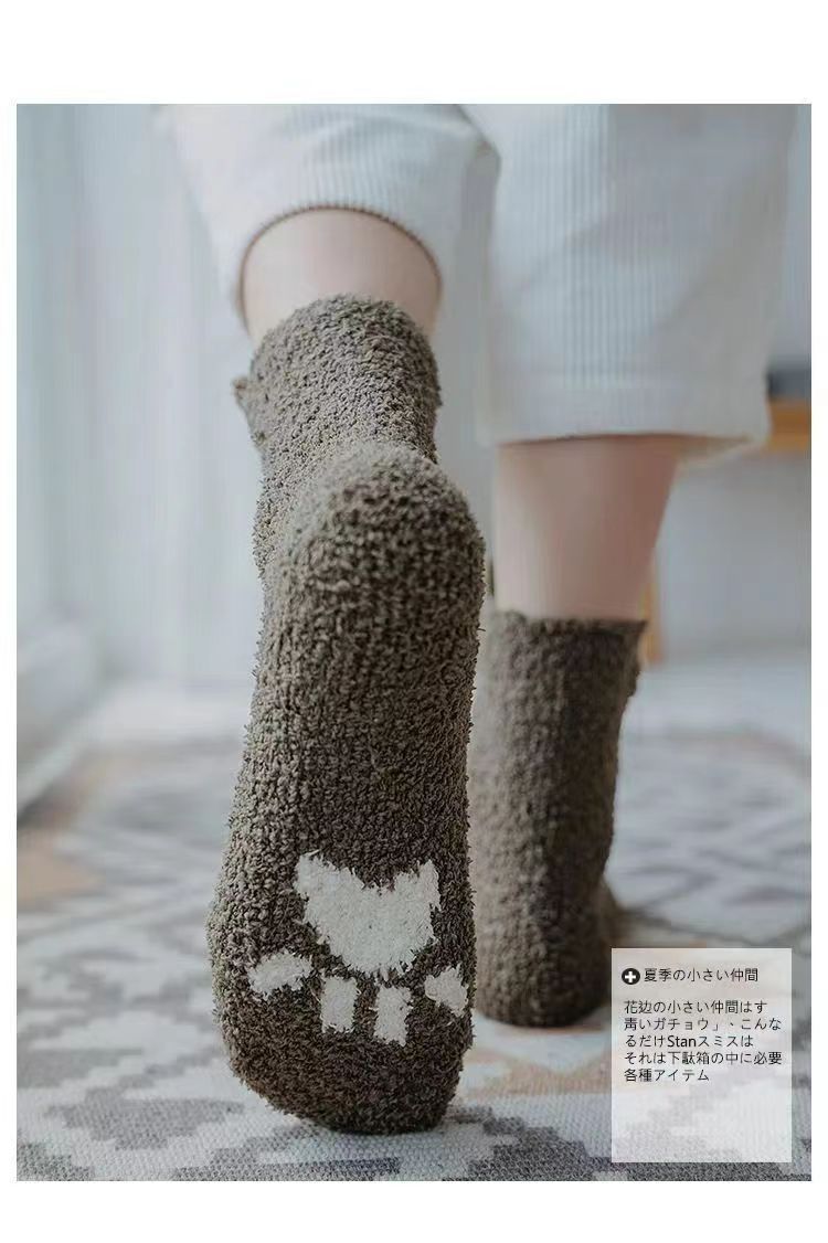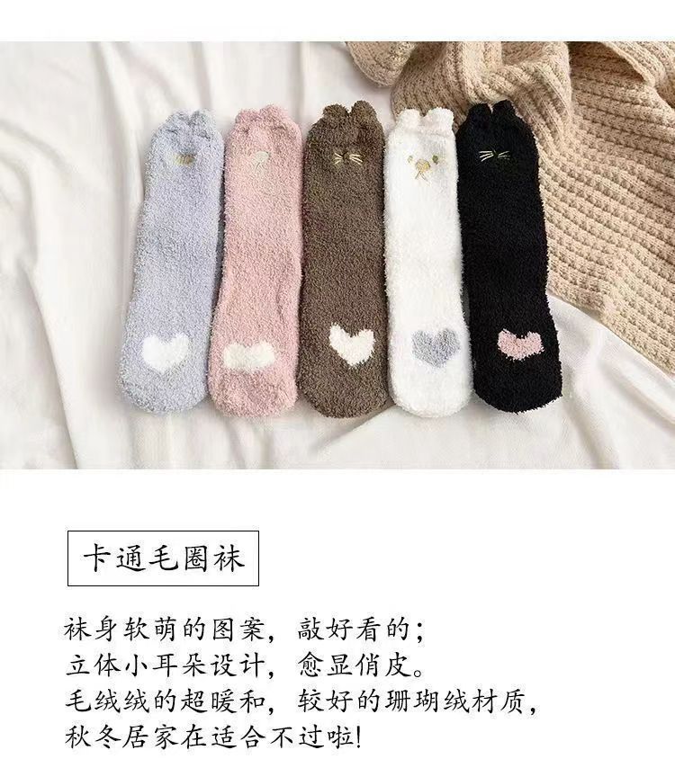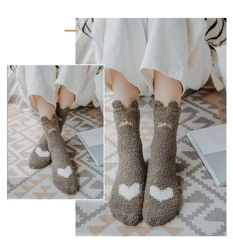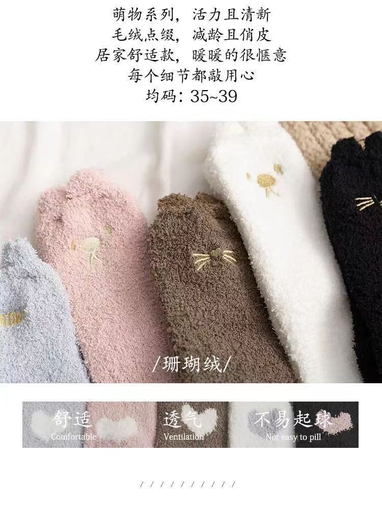 Осенне-Зимние коралловые бархатные носки, женские носки с мультяшными ушками, утолщенные теплые носки для сна в полу, чулки до середины икры на флисовой подкладке