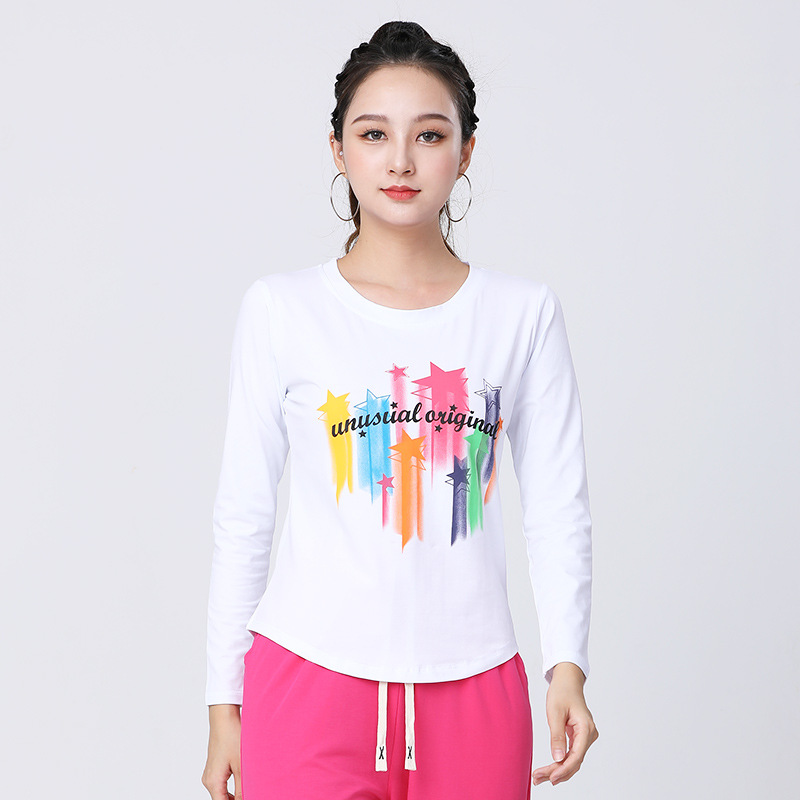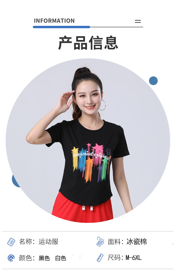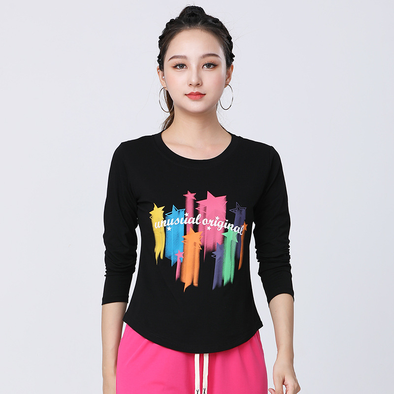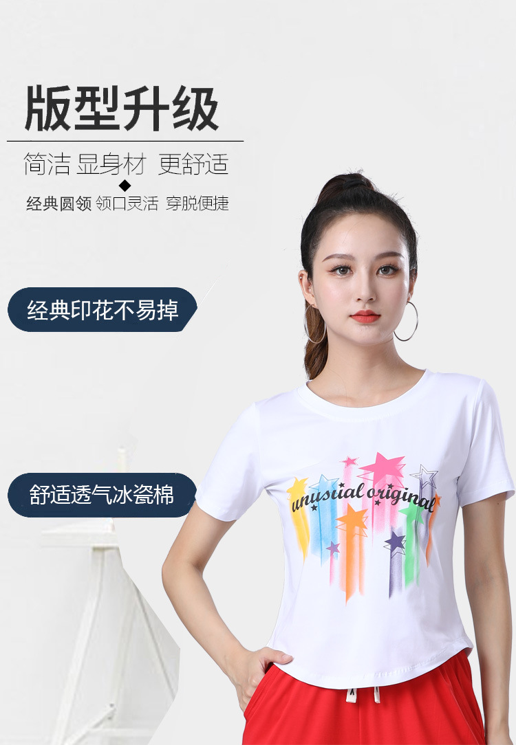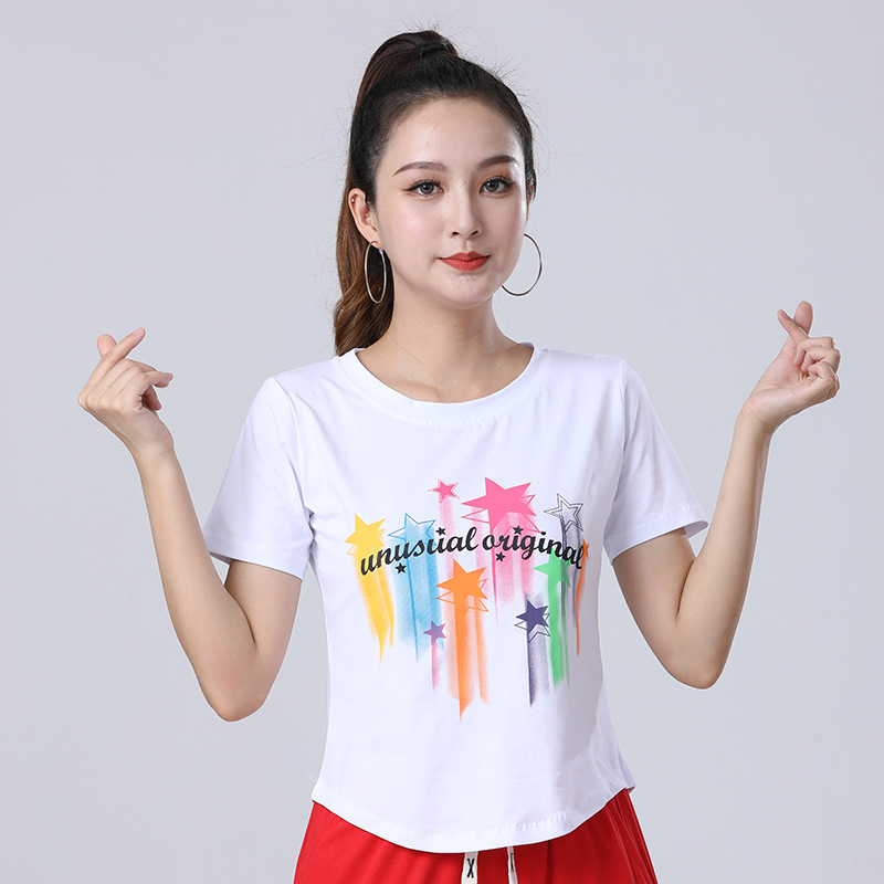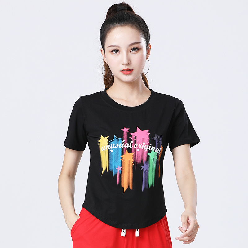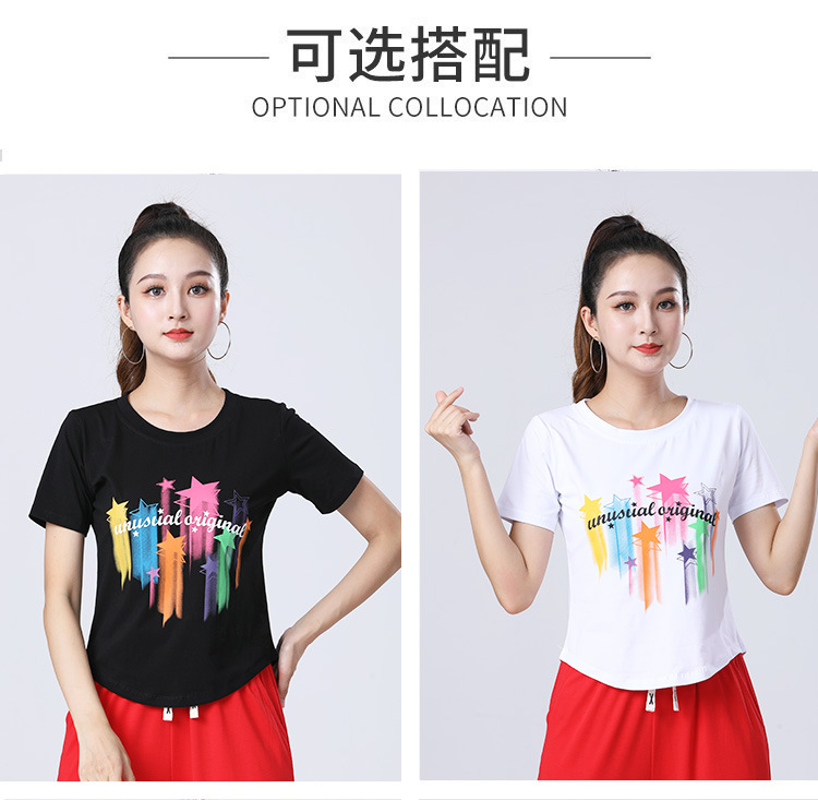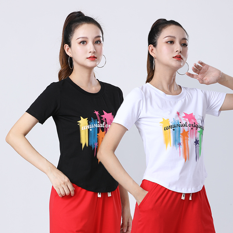 Новая Женская Красочная Одежда с принтом, одежда для квадратных танцев, весенняя и летняя футболка, танцевальная одежда, аэробика, фитнес, спортивная одежда