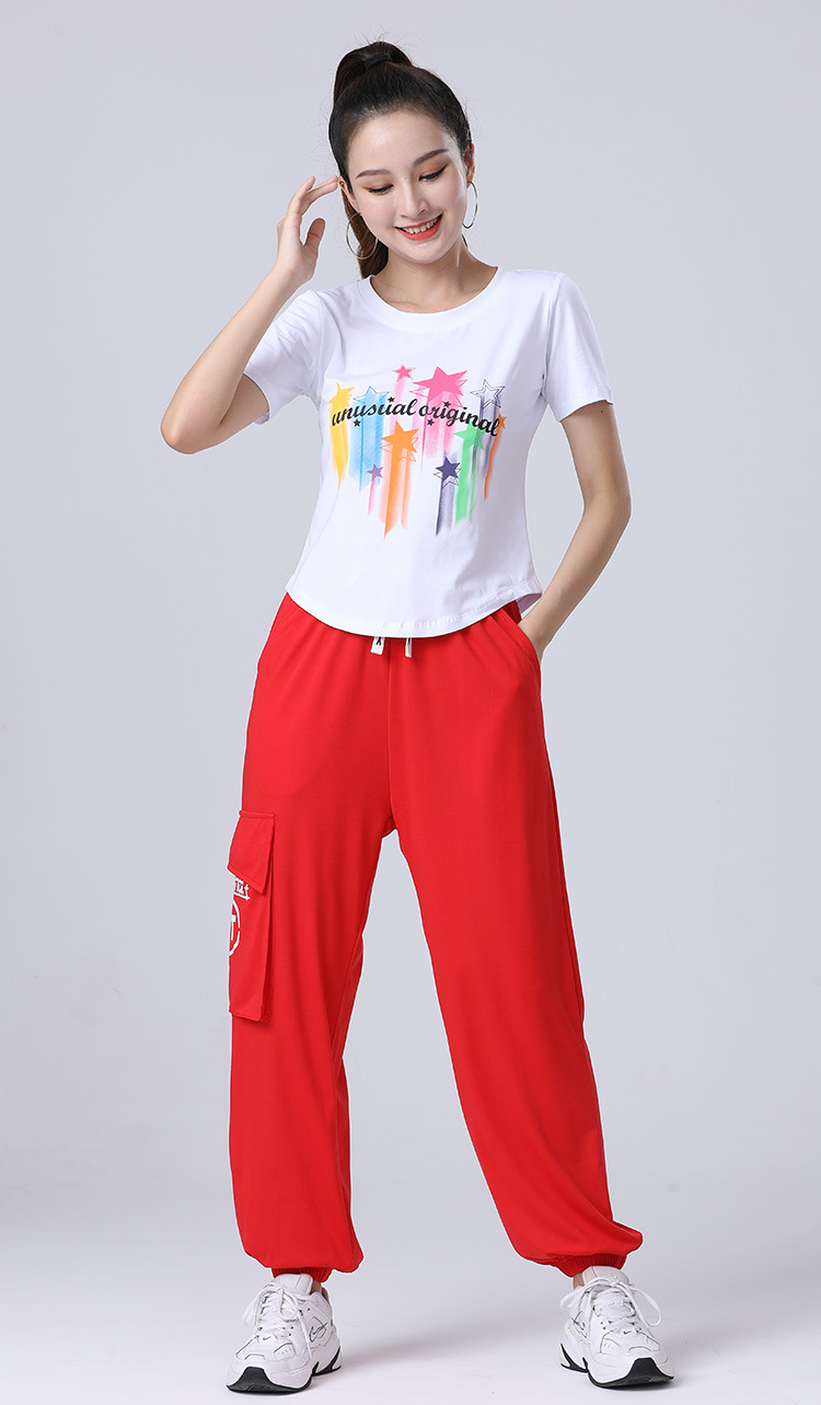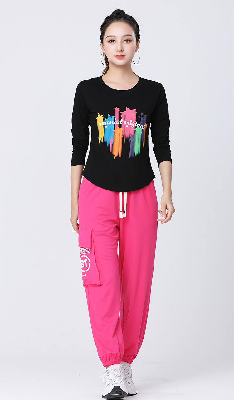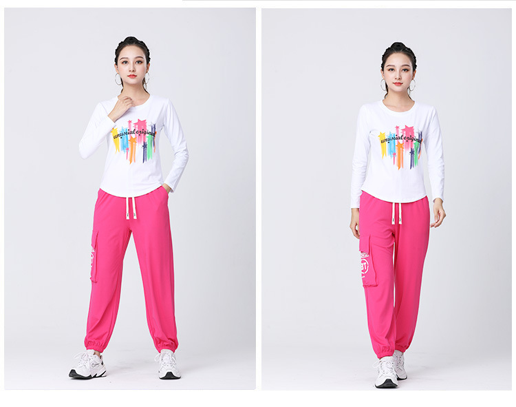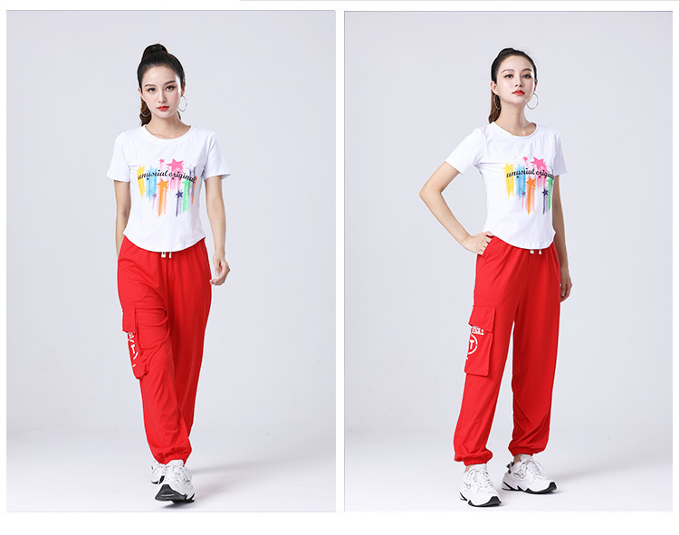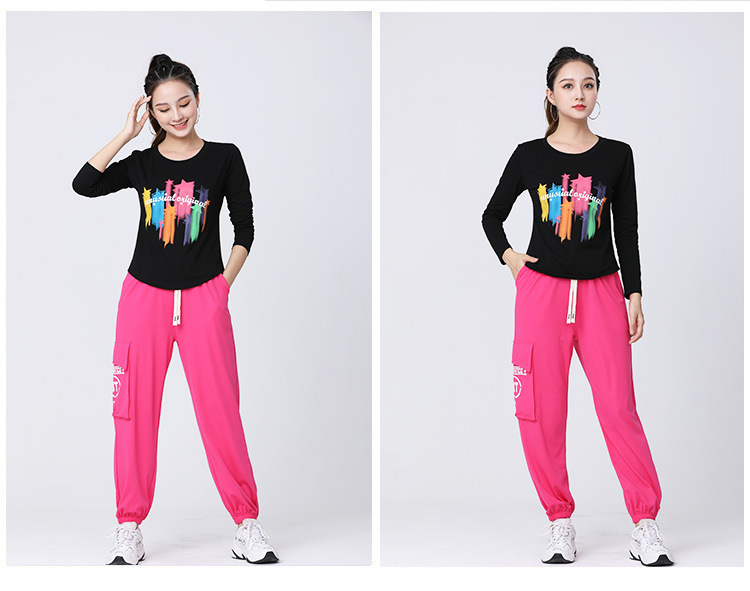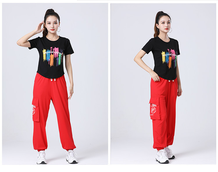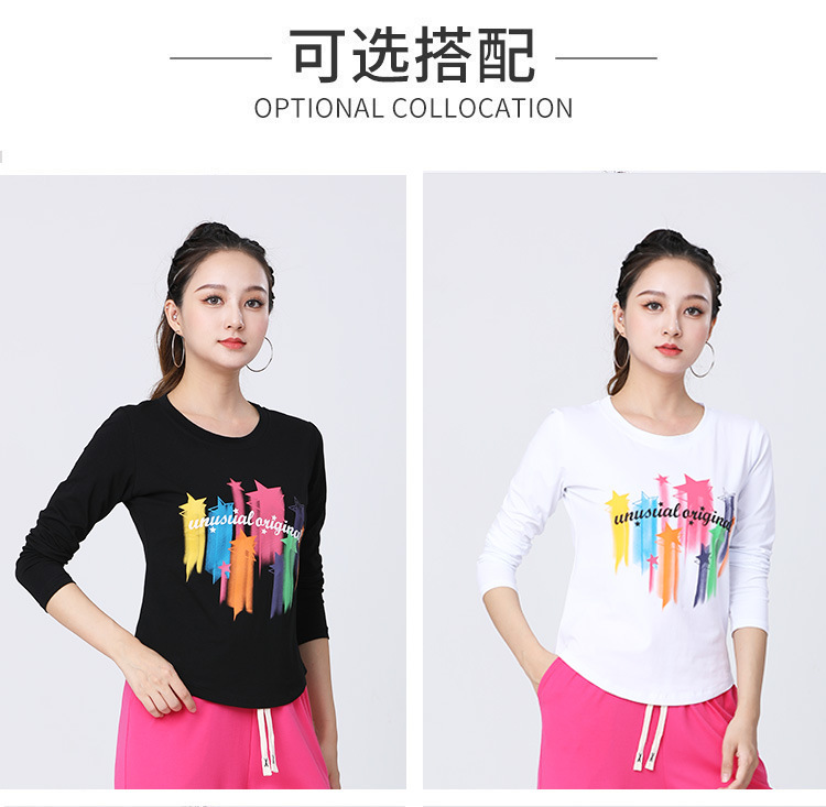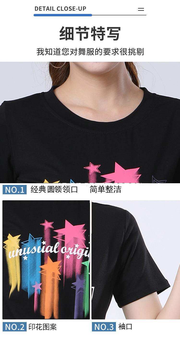 Новая Женская Красочная Одежда с принтом, одежда для квадратных танцев, весенняя и летняя футболка, танцевальная одежда, аэробика, фитнес, спортивная одежда
