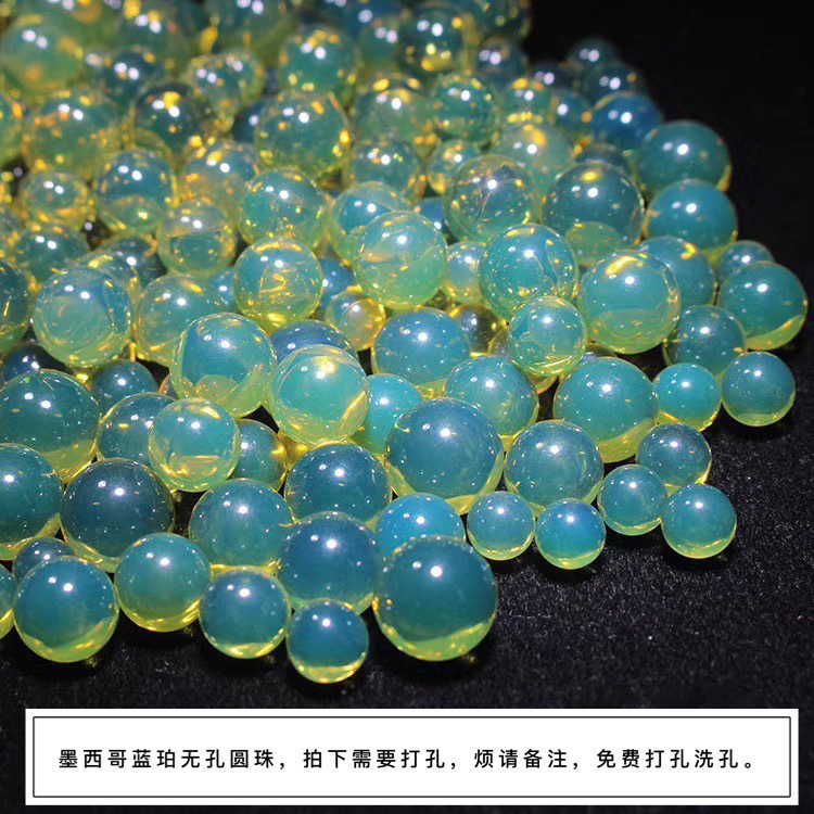 天然墨西哥蓝珀3A净水高品质散珠,适合DIY手工制作,有打孔和不打孔现货,拍下打孔请备注,工作主要生产加工墨西哥蓝珀和多米尼加蓝珀,都是天然的,支付全球权威机构复检。