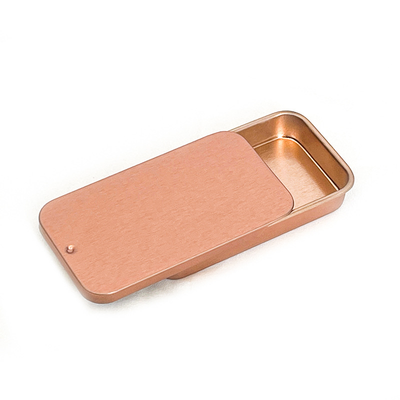 Маленькая жестяная коробочка цвета розовое золото с выдвижной крышкой, розовая, для косметики, с наклейками для самостоятельного оформления, для теней, румян, бальзама, значков, карточек.
