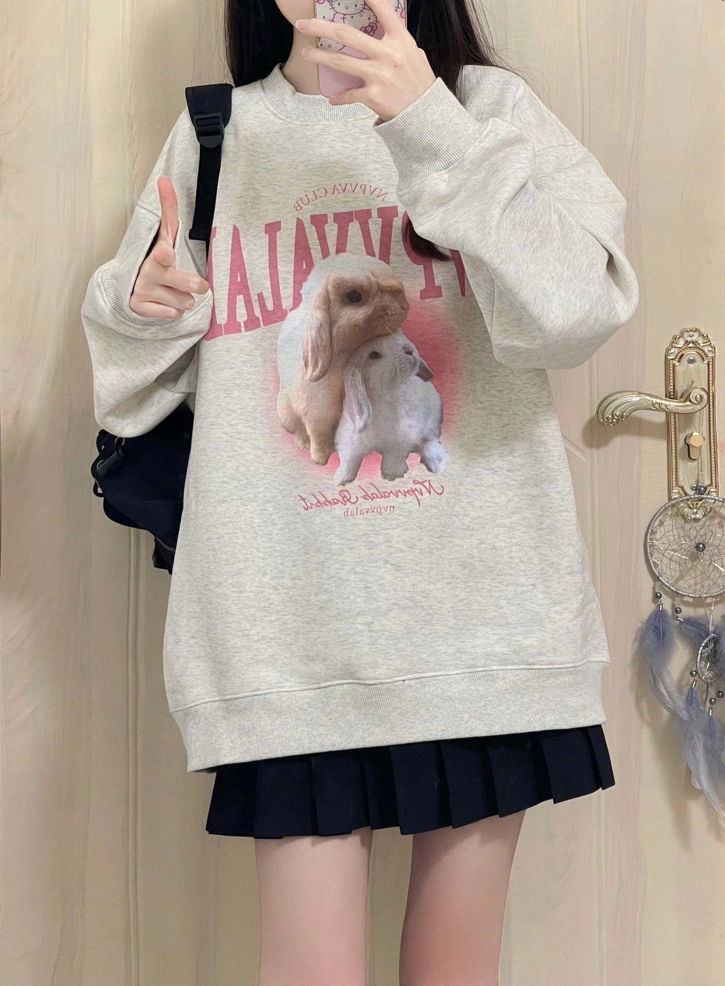 Американский ретро оверсайз свитшот для собак, женский осенне-зимний толстый свитшот 2025 года, новый свободный и универсальный топ в ленивом стиле
