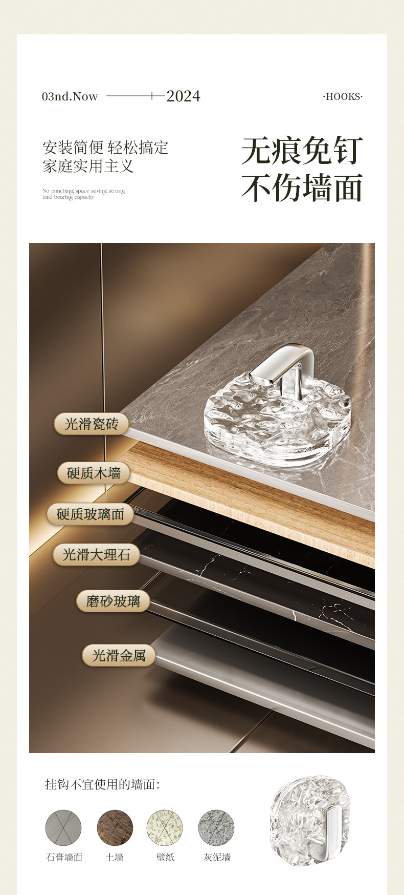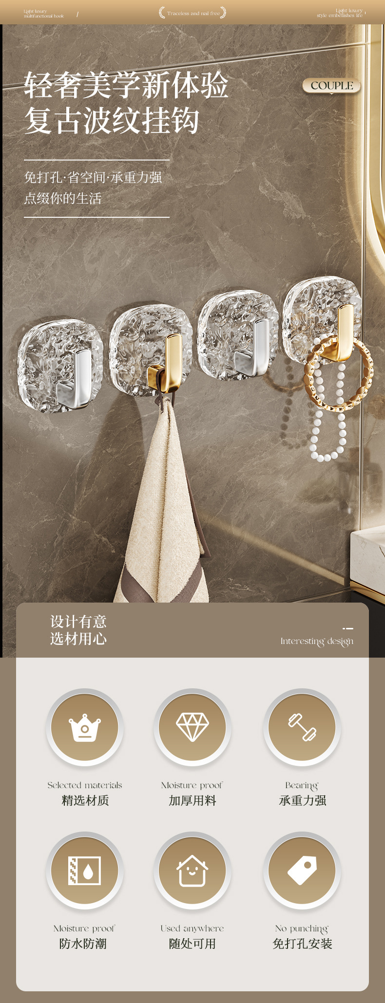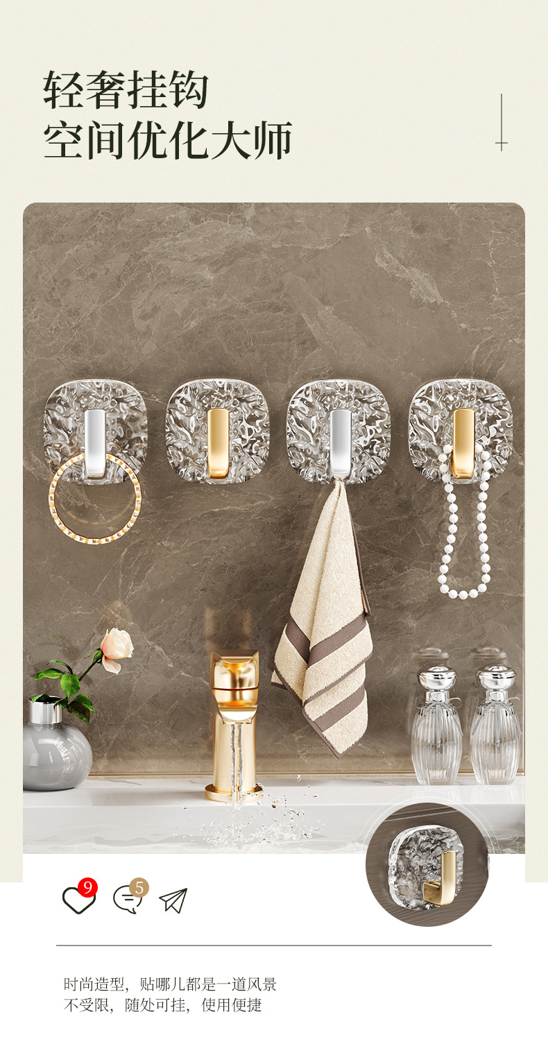 Прочный клейкий крючок для пальто с рисунком ледника, без дырокола, для ванной комнаты, туалета, настенный крючок для хранения одежды, липкий крючок
